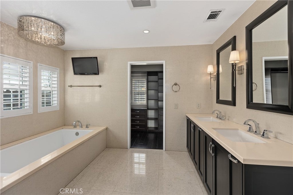 On the hunt for a peaceful retreat where you can enjoy idyllic indoor-outdoor living? Look no further than this spectacular Irvine rental set on a 5,400-sq cul-de-sac lot! This delightful abode features 4 bedrooms, 3.5 baths, and multiple gathering areas. Inside, you’ll find a freshly painted 2,427-sq ft interior accentuated by detailed molding, chic lighting, and a fusion of luxury vinyl plank and dark hardwood flooring. Plantation-shuttered windows and a 5-panel glass slider usher in natural light while connecting seamlessly to the sun-kissed outdoors. Towering palms add seclusion as you relax in the PebbleTec pool and spa. Treat yourself to the kitchen’s stainless steel appliances, double ovens, and exquisite quartz countertops. All bedrooms are on the upper level, including the primary and secondary suites. Additionally, there’s an attached 2-car garage with an EV charging station, built in cabinets, and epoxy flooring. It's fantastic location is in the highly acclaimed Irvine School District near Northwood High School. Plus, shopping, parks, and freeways are easily accessible. Come take a tour while it’s still available!