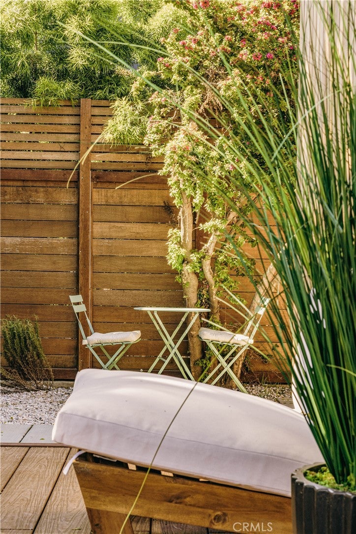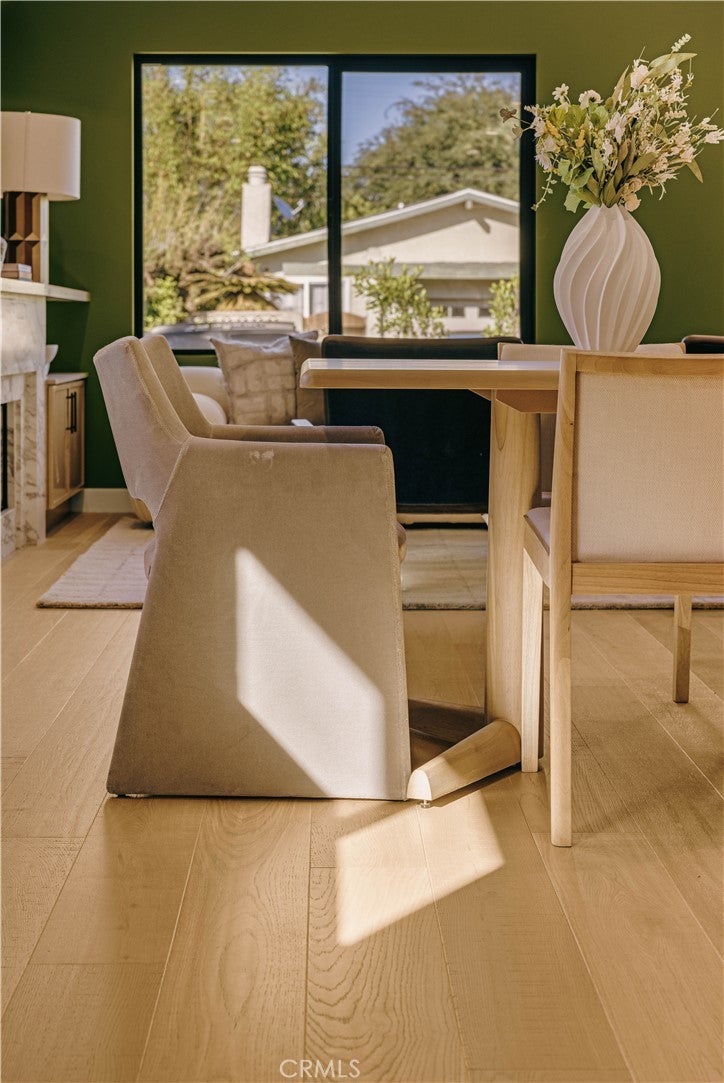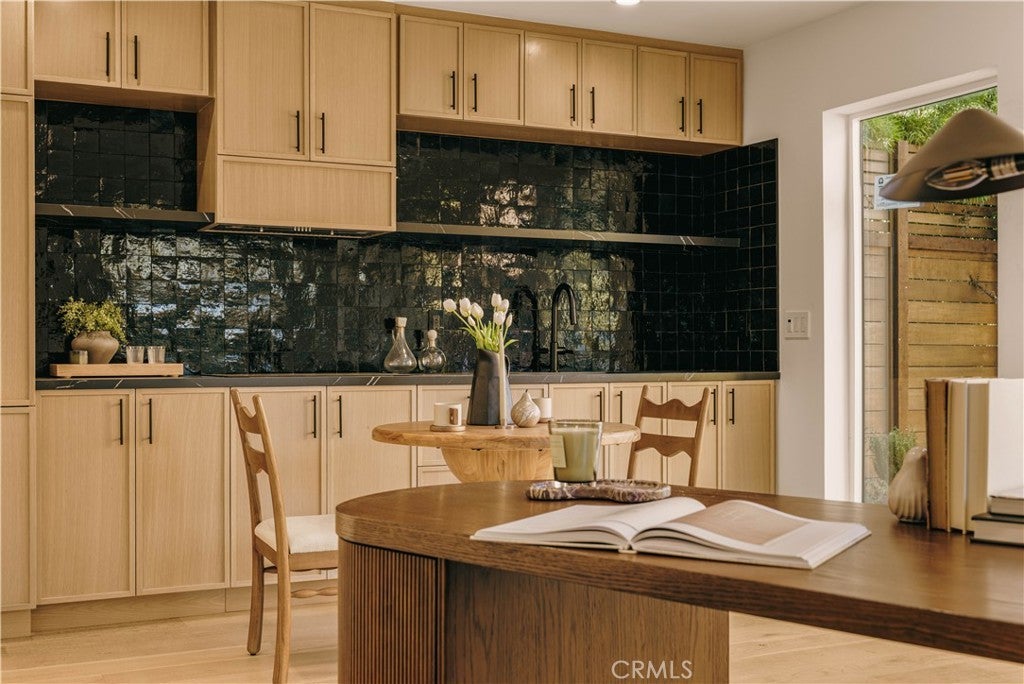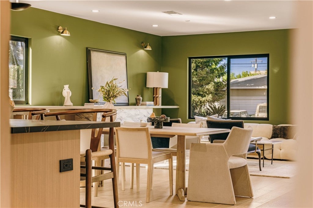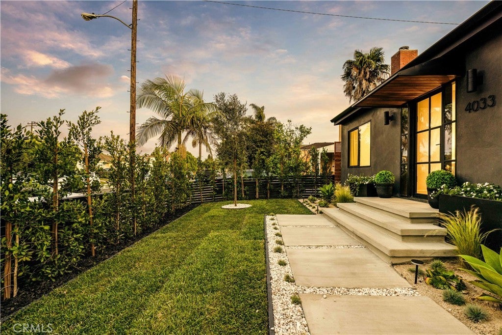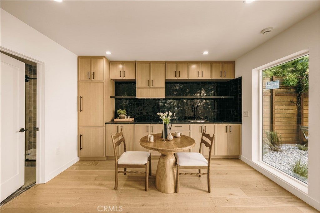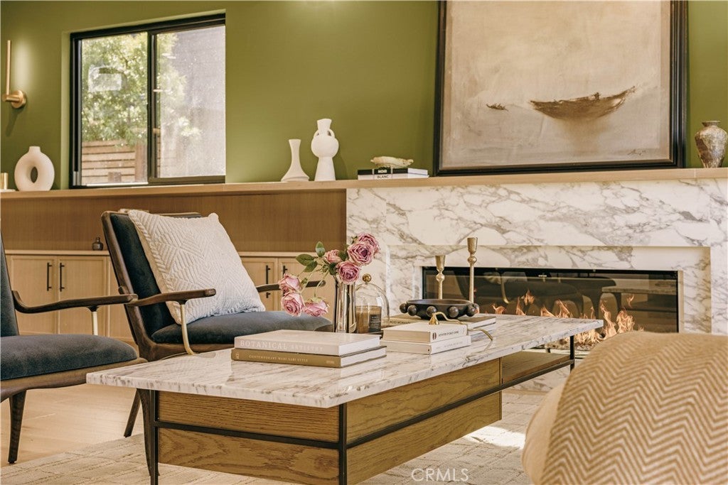 Privately tucked behind a fully fenced and hedged perimeter on a quiet, tree-lined street, this single-level Scandinavian-inspired residence is a masterclass in modern organic design. Thoughtfully reimagined with elevated finishes throughout, the open-concept floor plan is grounded by wide-plank white oak floors, soft neutral tones, and curated industrial lighting that create a warm yet sophisticated atmosphere. At the heart of the home, the chef’s kitchen is a true textural showpiece, featuring rift-sawn white oak cabinetry, honed dark countertops, sleek black appliances, and a striking black Zellige tile backsplash. The living and dining spaces flow effortlessly, anchored by an earthy olive-green accent wall, custom built-ins, and a dramatic Calacatta fireplace that serves as the focal point of the space. Two well-appointed guest bedrooms share a beautifully designed bathroom finished with white Zellige tile, chic textured wallpaper, and elegant gold fixtures. Privately positioned at the rear of the home, the primary suite offers a tranquil retreat complete with a walk-in closet and a spa-inspired bath featuring warm natural finishes and an oversized walk-in shower. The main residence offers 3 bedrooms and 2 bathrooms. Step outside to an expansive wood deck and a lushly landscaped backyard designed for effortless indoor-outdoor living. Two majestic mature trees provide abundant shade, natural cooling breezes, and an exceptional sense of privacy, creating the perfect setting for al fresco dining, entertaining, or peaceful relaxation. Beyond the backyard sits a beautifully finished 355 SF detached ADU, thoughtfully designed to mirror the main residence’s elevated aesthetic, complete with a matching kitchenette, full bath, and private laundry. With a total of 1,837 SF of living space, this versatile property is ideal for guests, a private office, creative studio, or additional rental income. Perfectly located just moments from Bluey’s, Rockenwagner, and Pitfire Pizza, with convenient access to the beach and the Westside’s best dining and lifestyle amenities, this is a rare opportunity to own a design-forward, low-maintenance home that is truly move-in ready.
