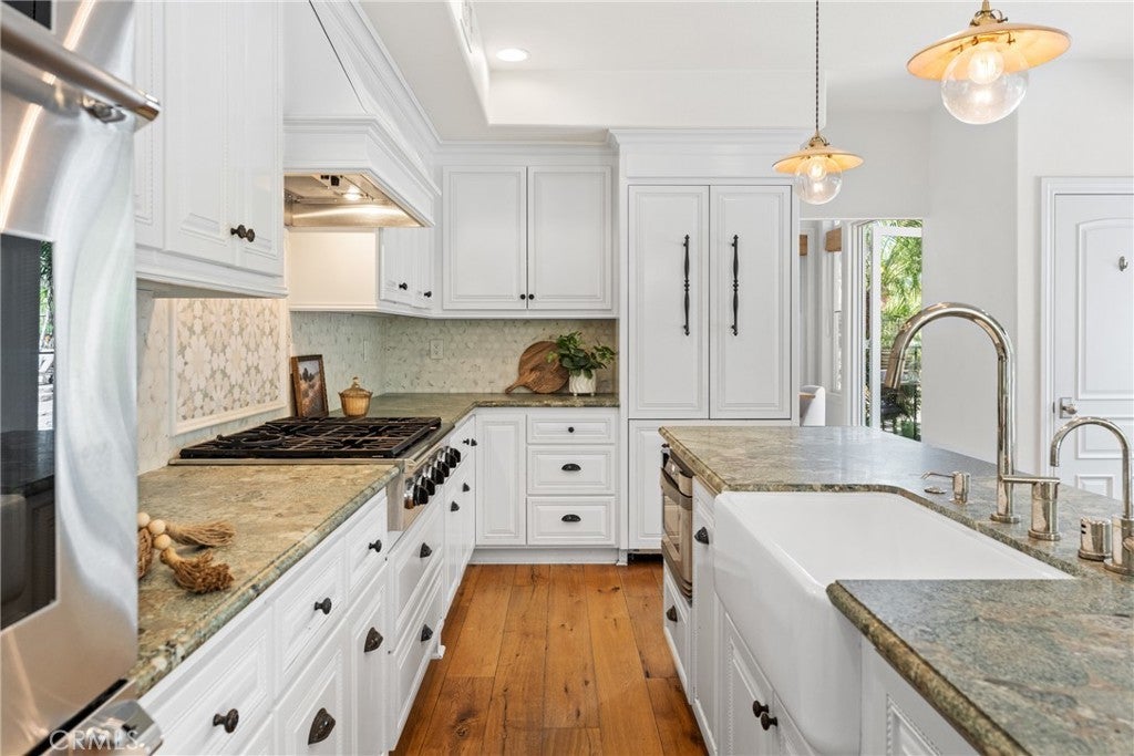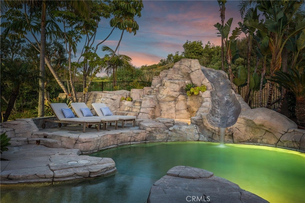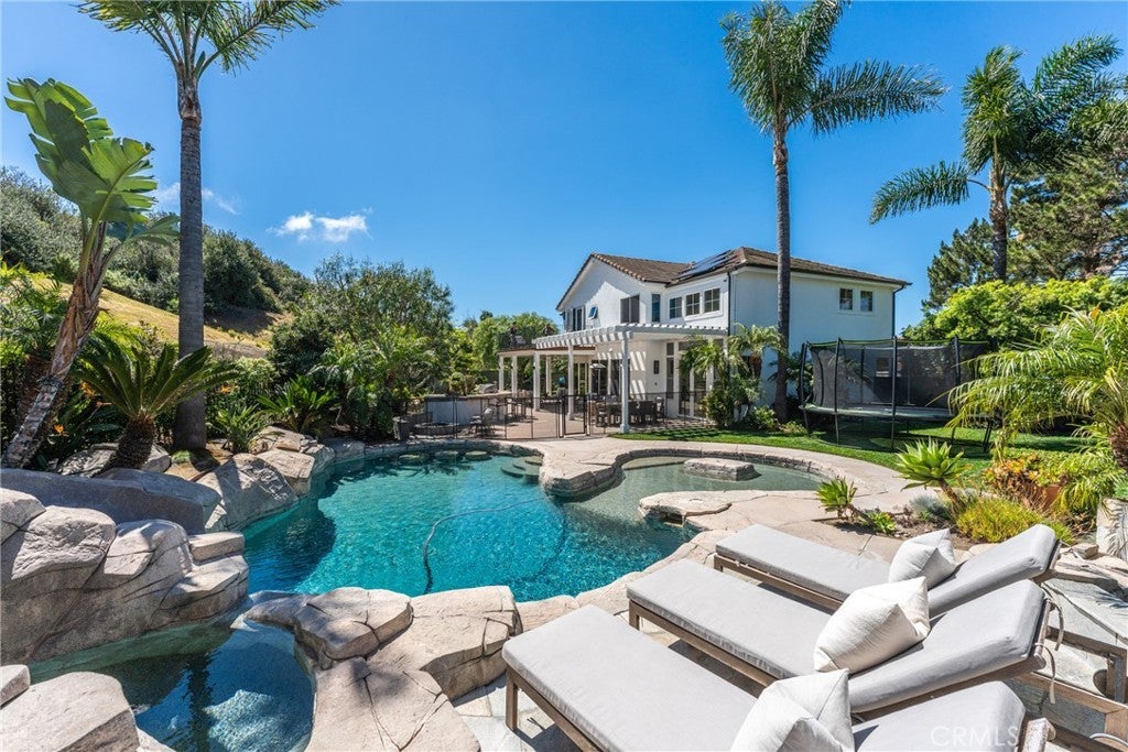 From the moment you arrive, there’s a sense that this is something truly special. Ideally positioned at the end of a quiet cul-de-sac in Rancho San Clemente, this exceptional residence sits on a rare, oversized lot, offering privacy, space, and an extraordinary resort-style setting. The backyard is designed for both relaxation and connection, featuring a custom saltwater pool with slide, sunning shelf, and waterfall, spa, built-in BBQ island, firepit, half basketball court, sprawling lawns and multiple gathering areas. Expansive bifold doors create a seamless indoor-outdoor experience, opening to a covered, heated patio with ceiling fans and ambient lighting, perfect for year-round enjoyment. Inside, the five-bedroom, three-bath home blends refined design with everyday comfort. A dramatic two-story entry is complemented by a striking double staircase with solid oak treads and iron railings. The gourmet kitchen is appointed with custom cabinetry, Dacor appliances, Brazilian granite countertops, farmhouse sink, and a generous center island, flowing effortlessly into the inviting family room. A main-level bedroom and beautifully updated bath offer flexibility, while upstairs includes three secondary bedrooms and a spacious primary suite with a private balcony and sitting area. Thoughtful upgrades include paid solar, dual AC, QuietCool whole house fan, new Anderson windows and doors upstairs, updated flooring, Ethernet wiring, integrated audio with exterior speakers, and whole-home water filtration with softener and reverse osmosis. Located near the Ridgeline Trail and just minutes to charming downtown San Clemente, featuring boutique shopping, locally acclaimed restaurants, and world-class surf breaks and beaches. This home offers an exceptional blend of comfort, style, and coastal lifestyle.