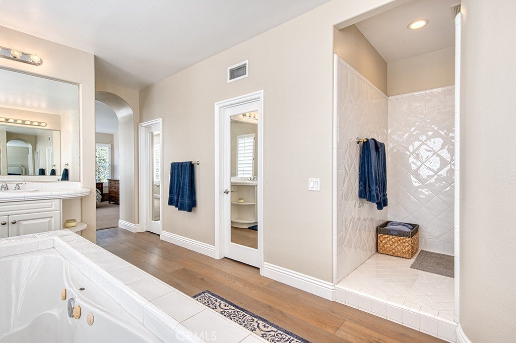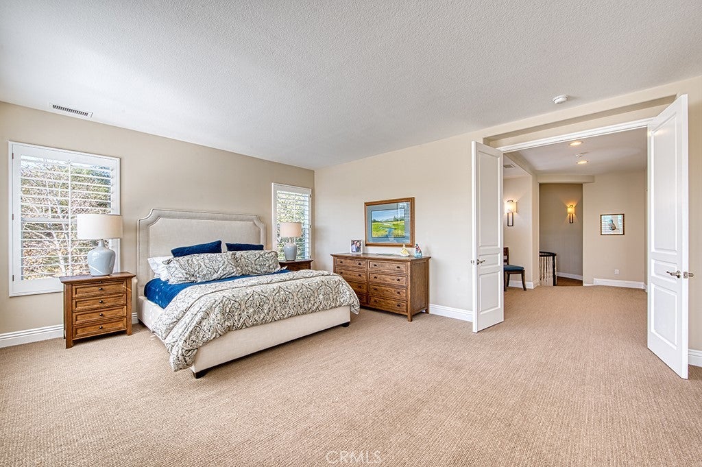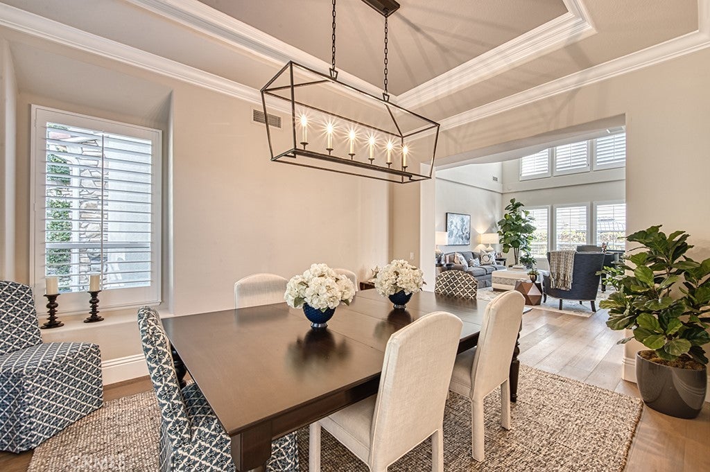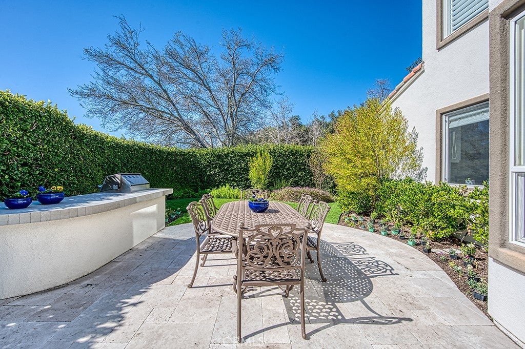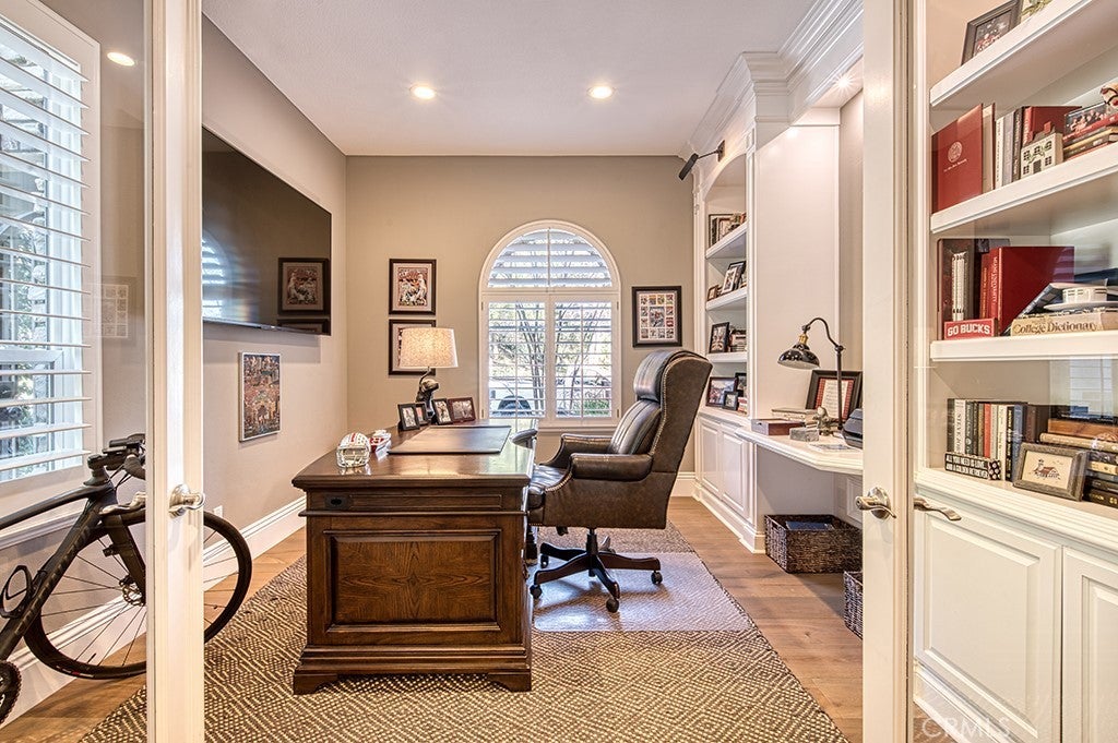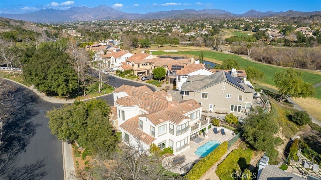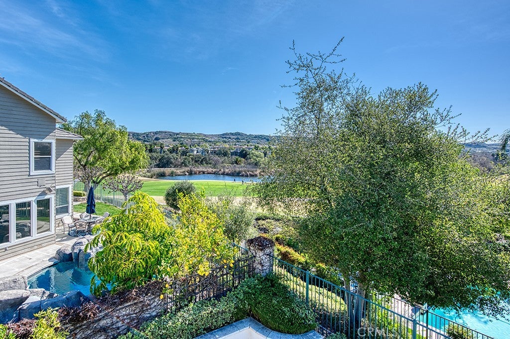 Nestled just beyond the gates of Coto de Caza, this updated corner lot golf course view residence is designed for both functionality and comfort. The grand entryway makes a lasting impression with its soaring two-story foyer, spiral staircase, leaded glass door, and wood plank flooring that extends seamlessly into the kitchen and family room. The formal living room with two story ceilings showcases a beautiful space for special occasions. Connected by by a striking double-sided fireplace, the spacious family rooms sits adjacent to the remodeled kitchen, which is equipped with premium stainless steel appliances, a large island, and a breakfast nook. A formal dining room, guest suite and private office framed by glass double doors and custom-built bookshelves, complete the main level. Upstairs, the luxurious primary suite offers a serene retreat with dual vanities, a spacious walk-in closet, a walk-in shower, a jet-spa tub, a cozy sitting area, and a private balcony showcasing breathtaking views of Coto's south golf course, complete with a picturesque pond. Down the hall are two additional en-suite bedrooms connected by a shared study space with built-in desks. The backyard is great for entertaining and showcases a desirable southeast exposure with a sparkling swimming pool, a sun deck and a built-in BBQ island. Situated on a coveted corner lot along a single-loaded street, this home benefits from an adjacent recreational park and an open greenbelt across the way, creating an extended outdoor space perfect for relaxation and play. Experience the best of Coto de Caza, where premier living meets award-winning schools, a world-class Golf & Racquet Club, scenic sports parks, and easy access to hiking, biking, and equestrian trails. No Mello roos=low tax rate.