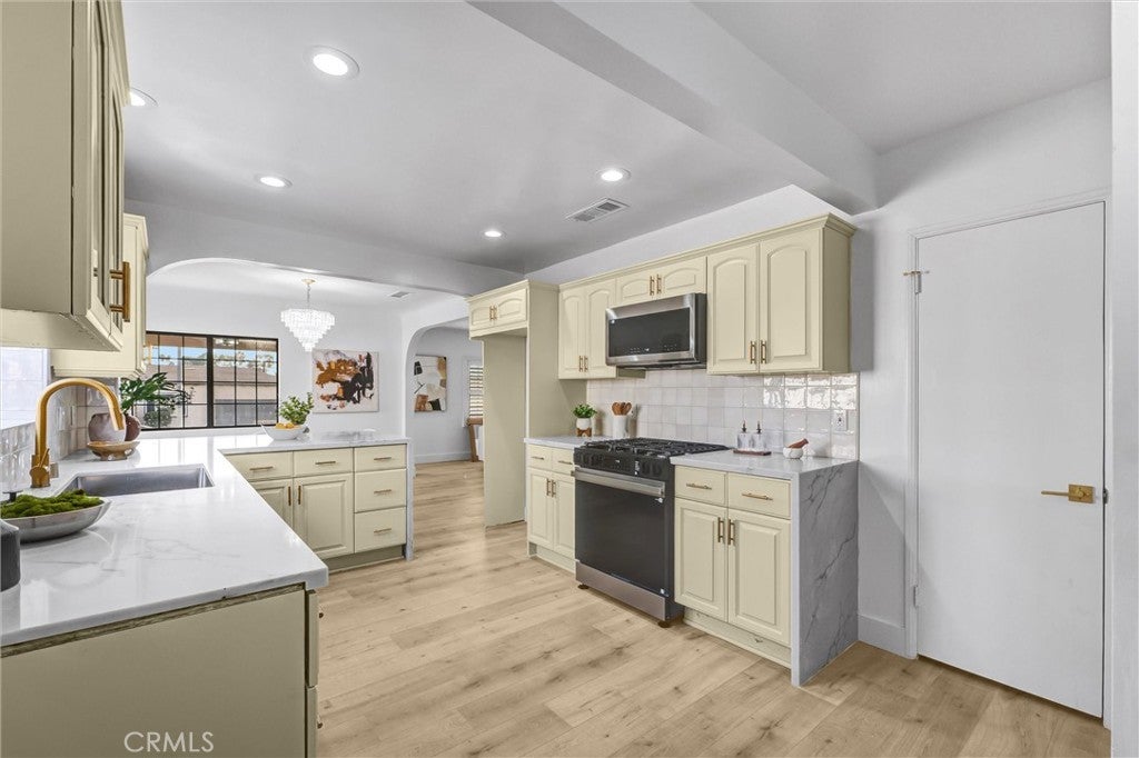 Remodeled 5 bed, 4 bath home in a prime LA location near Pasadena and Alhambra. Flexible floor plan with upstairs primary suite and 3 bedrooms on the main level, including one ideal for an office and one with en-suite bath. Detached converted garage serves as a private guest unit with full kitchen, bath, and closets—perfect for extended family or rental income. Both units offer washer/dryer hookups. Updated kitchen with new appliances, quartz counters, and bar seating opens to living and dining areas. New vinyl flooring throughout and abundant natural light. Fireplace in living room.