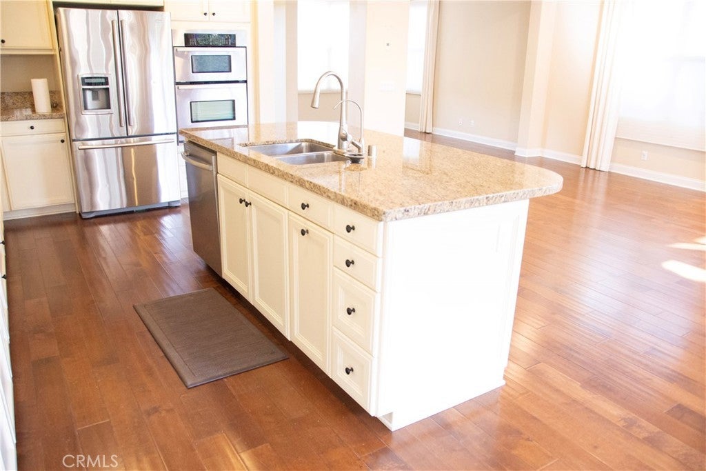 This beautifully upgraded single-family home for lease in the highly sought-after Woodbury community, offering approximately 2,414 square feet of spacious living with 3 bedrooms and 2.5 bathrooms. Ideally situated on a premium corner lot directly across from a community park, this residence features a bright open floor plan with elegant hardwood flooring, a dedicated downstairs office/den, and an inviting great room with a cozy fireplace. The gourmet kitchen is designed for both style and function, complete with a large center island, granite countertops, and stainless steel appliances. Upstairs, the expansive primary suite includes a walk-in closet and a luxurious bath with dual sinks, soaking tub, and separate shower. Enjoy resort-style amenities including pools, parks, and tennis courts, all within close proximity to Woodbury Town Center, top-rated Irvine schools, and convenient everyday shopping and dining—making this home an exceptional leasing opportunity.