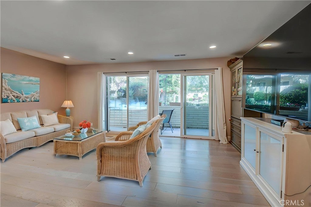 THIS HOME IS PRICED TO SELL!! Gorgeous, fully remodeled CASA LINDA in a desirable Nob Hill location close to Aliso Creek has it all! Move right in to this popular and spacious home! 2BEDROOM 2 BATHS, about 1010 square feet. Single-story unit with beautiful views of a huge green belt with trees and mature landscaping, and plenty of distance between buildings. You've got to see it! There are stairs from the carport to the unit, but there is also convenient street parking with no stairs. All vinyl flooring, all of the counters in the kitchen, and both baths are granite. All major windows are dual-pane vinyl. Custom baseboards, canned lighting throughout, undercounter lighting, and added sconces, central heating and A/C, and more. The kitchen features canned lighting, a top-tier 5-burner self-cleaning range with a custom cooking fan that is vented to the outside for "high heat" cooking. The large stainless steel refrigerator w/ice maker and custom "Keurig-like coffee maker, the washer/dryer, and the patio fountain STAY! Custom cabinets throughout, including "lazy susan" in the kitchen, stainless steel appliances, "country-style deep sink, etc. Note closet in master with custom organizers/shelves, & extra-large shelves in the storage closet. Check out the patio fountain with a timer to start/stop as you wish. The patio is lengthy and can be accessed from either the living area, the second bedroom, or the private gate. Enjoy the bountiful amenities of the adult community of Laguna Woods Village: 7 clubhouses, 5 pools, 2 golf courses, an equestrian center, a theater for stage events, a transportation system, over 200 clubs and activities, and more! The community is just a few miles from the beach with wonderful restaurants and ocean vistas awaiting! Imagine starting your day with a cup of coffee on your patio, surrounded by a peaceful green landscape filled with mature trees and open grass. Watch squirrels playfully chase one another, hummingbirds flutter nearby, and birds sing overhead. In the quiet early mornings, you might even catch a glimpse of soft cottontail bunnies hopping through the grass. This is more than a patio—it’s a daily escape into nature. Check out the sunrise photo! Parking stall 582-2