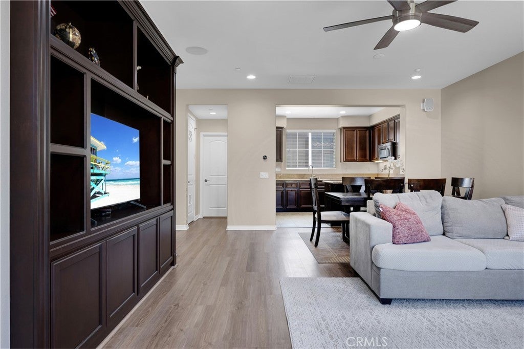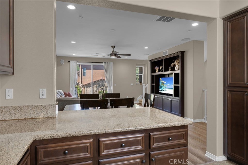 Beautiful 3-story townhome in Harbor Station, part of the desirable Glenwood Master-Planned Community. This light and bright, freshly painted home features new recessed lighting and tasteful upgrades throughout. The remodeled kitchen offers granite countertops, stainless steel appliances, and ample cabinet space, while blinds are installed on all windows for added privacy and style. Bathrooms include updated finishes with a standing shower. This versatile floor plan includes a bedroom and bathroom on the first level, ideal for guests, extended family, or a home office. The middle level features spacious living and dining areas with a private balcony, along with a large kitchen perfect for entertaining. The living room showcases a built-in entertainment center and bookshelves, plus a convenient guest bathroom. The third level includes two bedroom suites, offering comfort and privacy. Additional highlights include a two-car garage with direct access and an enclosed patio for outdoor enjoyment. This home has been well maintained. Residents enjoy the amenities of the Glenwood community, featuring 6.4 acres of public park space, two tot lots, park areas, and scenic trails with fitness stations. Conveniently located near the Aliso Viejo Aquatic Center, with easy access to shopping, dining, and major transportation routes.