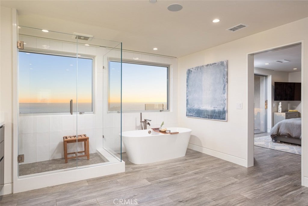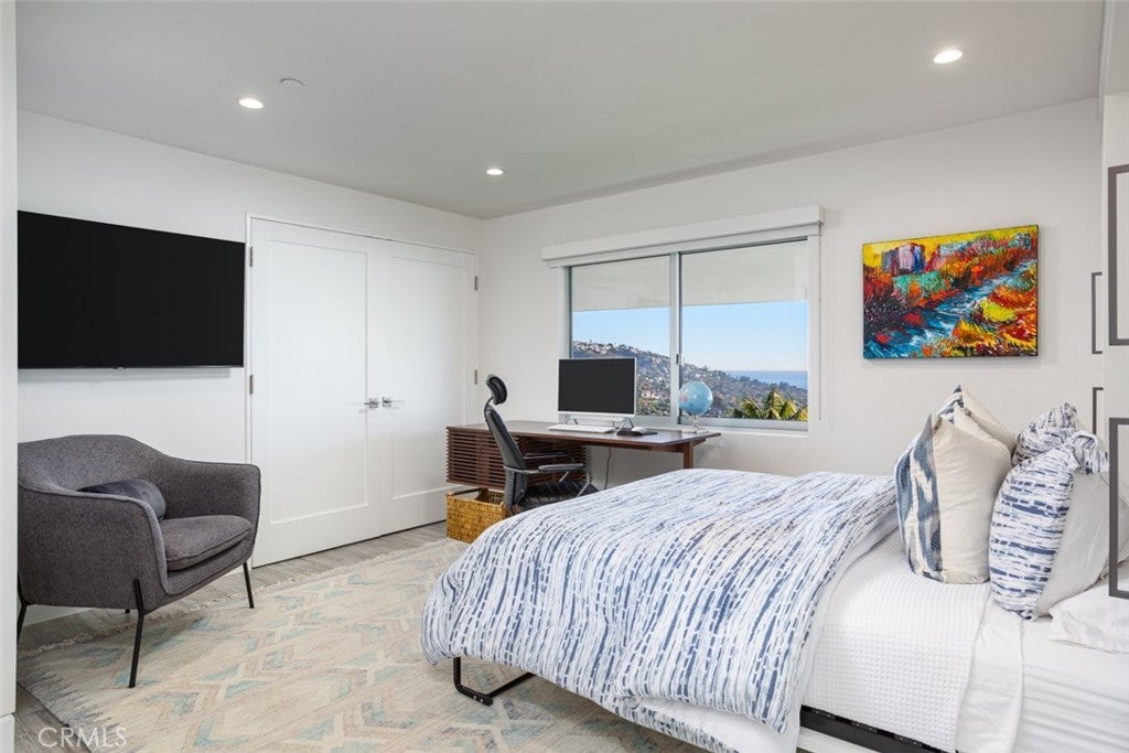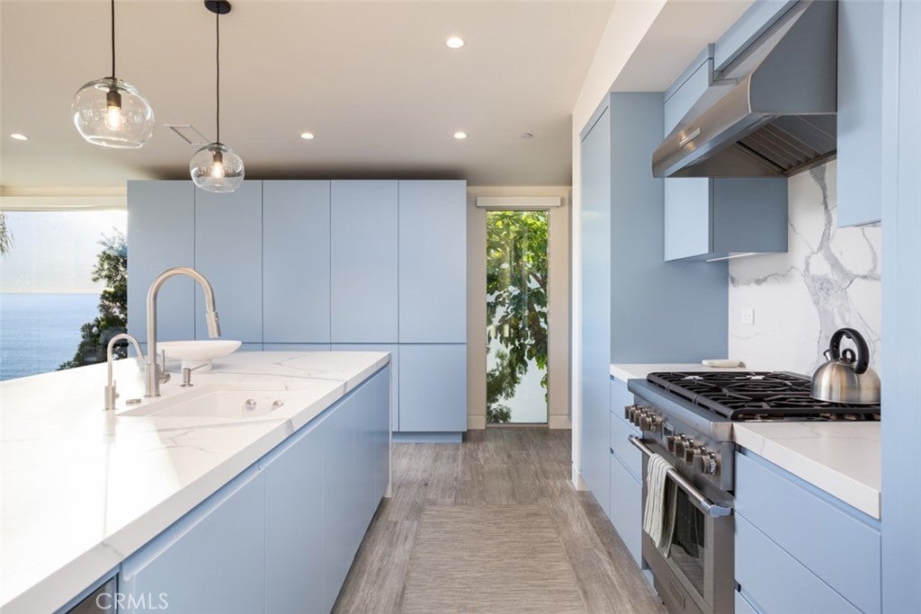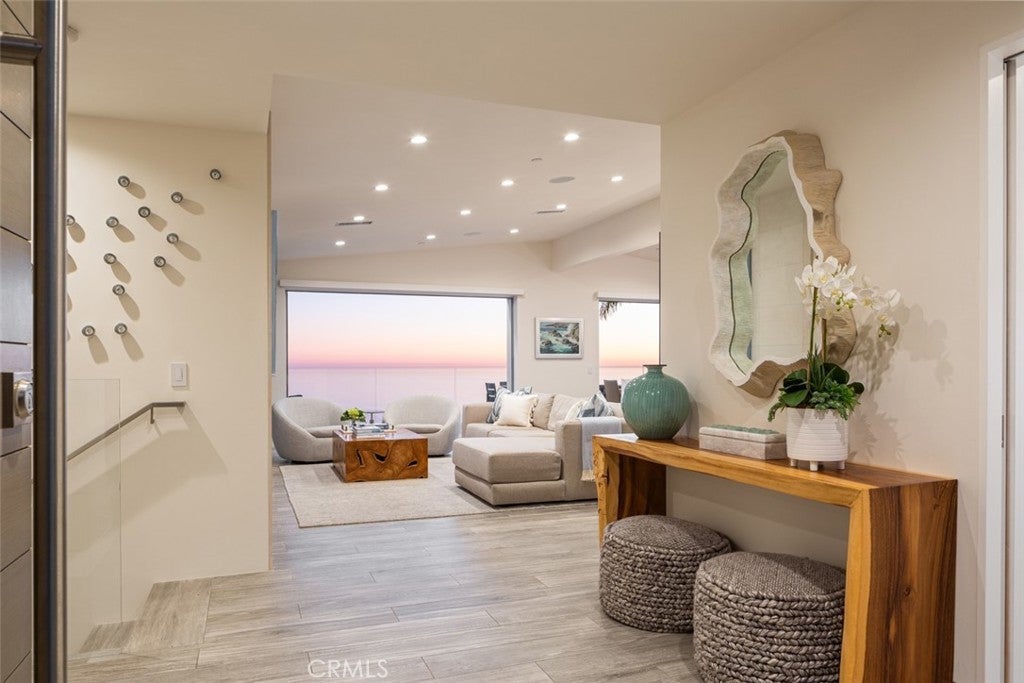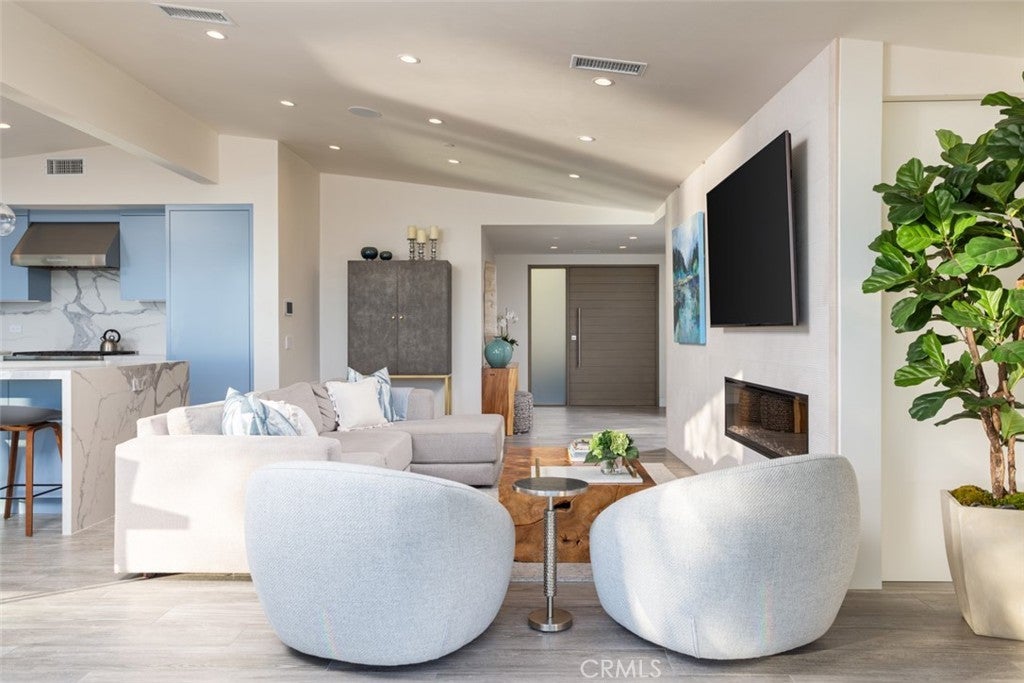 Designed by acclaimed architect Chris Light, and rebuilt from the ground up in 2021, this pristine contemporary home offers some of the most exceptional views that Laguna Beach has to offer. Panoramic coastline, Catalina, sunset and sparkling city light views greet entrants upon opening the front door. The kitchen features custom Italian cabinetry, an oversized island, a professional-grade appliance suite, and is open to the living and dining areas which offer sit-down ocean views. A pair of large pocketing Fleetwood sliders open to the expansive deck to capture multiple breathtaking vantage points. The main-floor primary suite with ocean views features a large soaking tub, separate shower, walk-in closet, and balcony access. Downstairs features an additional living space and full kitchen, making entertaining a breeze and offering flexibility. Three additional generously-sized bedrooms, including one on the main floor, and three bathrooms complete the home. With custom design accents, thoughtful lighting, smooth coat Venetian plaster walls, imported tiles & cabinetry, seamless glass railings, as well as full smart home integration with lighting and music, RO water system, and automatic window shades, this home is not just beautiful; it's perfect. Located on a quiet cul-de-sac, minutes from the world renowned restaurants and beautiful beaches of Laguna Beach, and just a short drive to all Orange County has to offer.