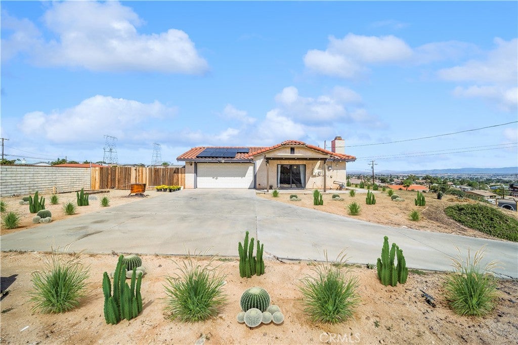 Stunning Single-Level Home on Expansive 20,000+ square foot Lot with Scenic Views. Nestled on an impressive, elevated lot, this charming single-level residence offers breathtaking views of both the sunrise and sunset. Step into the inviting living room, where natural light floods the space, creating a warm and welcoming atmosphere. Solar panels are leased for about $100 per month so feel free to crank the AC on sunny California summer days! The VA loan is possibly assumable with a very low interest rate. The heart of the home is the recently renovated kitchen, boasting modern finishes and ample space for culinary adventures. The oversized kitchen island offers bar seating, and an open concept feel to the adjoined dining room and oversized family room with vaulted ceilings and a cozy fireplace. Enjoy the convenience of separate living and family rooms, perfect for entertaining or relaxing with loved ones. Retreat to the primary suite, featuring a private sliding glass door that opens directly to the peaceful backyard, ideal for serene mornings. With plenty of room to roam and a perfect blend of indoor-outdoor living, this exceptional property combines comfort and style in a sought-after location.