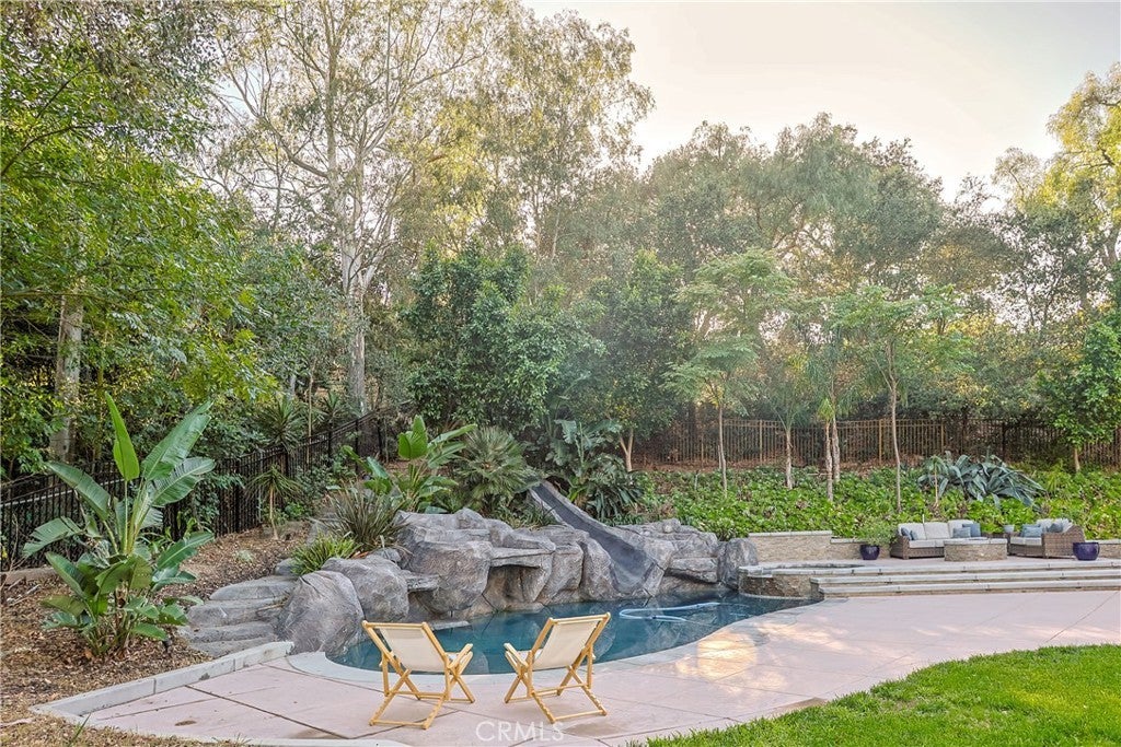 Tucked away in the peaceful hills of Chino Hills, this one-of-a-kind custom home offers space, flexibility, and a truly special setting on nearly one acre of land. From the moment you enter, you’re welcomed by a grand living and dining room anchored by a beautiful brick wood burning fireplace—creating a warm and inviting space for both everyday living and entertaining. Just a few steps down, an expansive family room offers incredible versatility, ideal as a media room, game room, or easily adaptable for additional bedrooms or multi-generational living. The kitchen has been thoughtfully upgraded with custom white cabinetry, quartzite countertops, and high-end Bosch appliances. A large center island with seating invites gathering, while the farmhouse sink sits beneath a charming bay window overlooking the lush backyard. The lower level features two generously sized bedrooms connected by an upgraded Jack and Jill bathroom, with one offering a spacious walk-in closet. Upstairs, the private primary suite is a true retreat—complete with a sitting area, cozy stone fireplace, and an impressively large bathroom featuring dual vanities, a soaking tub, separate shower, private water closet, and an expansive dressing-room-style closet. Step outside to a backyard designed for both relaxation and entertaining. A covered patio overlooks the beautifully landscaped grounds and newly added pool, complete with a water slide and waterfall. A built-in gas fire pit adds to the ambiance, creating the perfect setting for evenings at home. The property continues to impress with a grassy front yard with a playground, a garden area with raised beds and growing vegetables, and a long gated driveway leading to a finished three-car garage with epoxy flooring; ideal for car enthusiasts or additional flex space. Beyond the main areas, the expansive lot offers endless possibilities, including space for animals, a playhouse, or additional storage; allowing you to truly make the property your own. With peaceful mountain and city light views, and just a short drive to nearby golf and local parks, this home offers a rare blend of privacy, functionality, and lifestyle. A truly unique opportunity in the hills--this is a home you won’t want to miss.