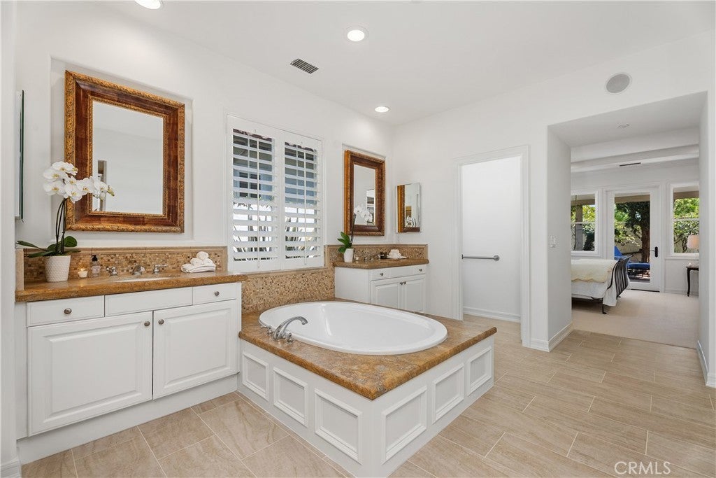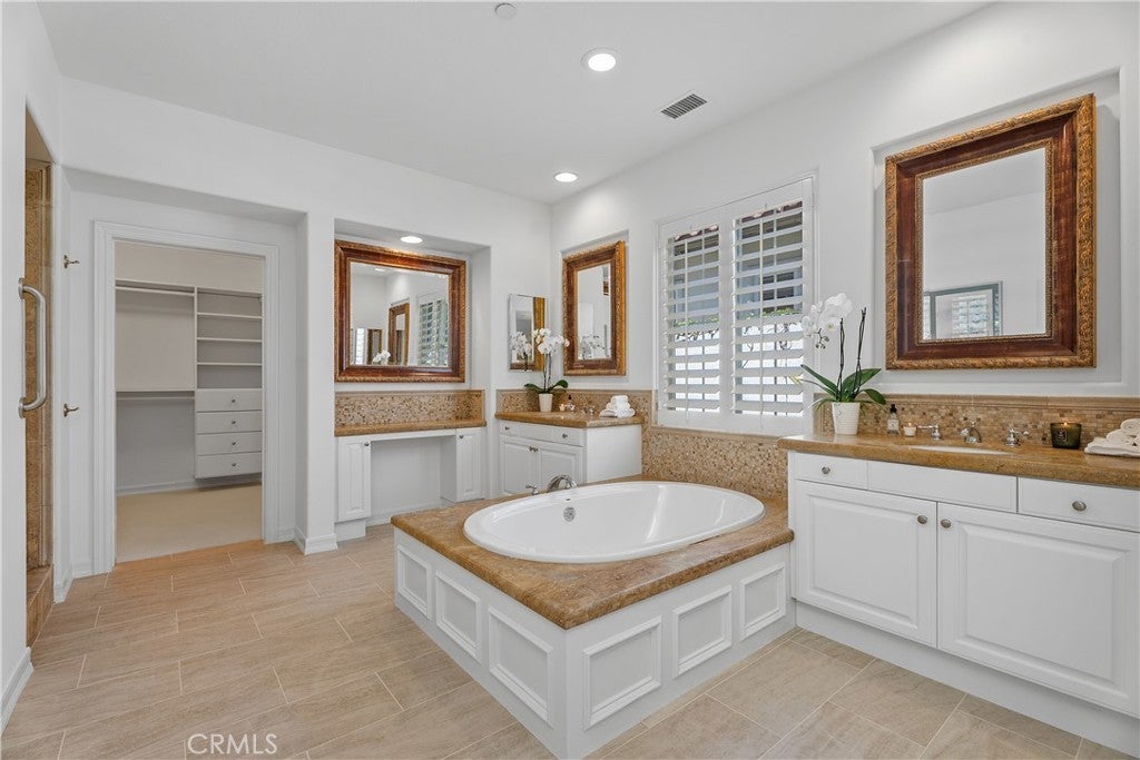 Welcome to 1 Corte Sevilla, an artist-inspired Tuscan beach villa in The Gallery, South Orange County’s premier 55+ gated community. This single-level home carries a meaningful creative legacy. Its longtime owners — a gifted local artist and her husband, who supported & promoted artists within the Laguna Beach arts community — infused the home with a spirit of beauty and authenticity. Her original paintings still adorn the walls, offering a glimpse into her creative world. Their son later transformed the exterior into one of the most striking landscapes to ever distinguish The Gallery. Mediterranean-inspired grounds feature mature Tuscan cypress Tiny Towers, sculpted greenery, vibrant plantings, & full-bloom roses that create the ambiance of an Italian villa. Inside, the home blends warmth & sophistication. A grand 20-foot entryway sets the tone, complemented by fresh paint, molding throughout, recessed lighting, & oversized windows that fill the home with natural light. Saltillo tile floors enrich the main living areas, while the bedrooms feature brand-new carpet. A cozy retreat room with a fireplace offers an inviting space for conversation or enjoying your favorite beverage. The remodeled kitchen offers white cabinetry, a generous quartz island with bar seating, a clean white backsplash, stainless steel appliances, a new cooktop, a new dishwasher, & abundant storage. The spacious primary suite includes a large walk-in closet & an inviting ensuite bath with new tile flooring, a separate oversized soaking tub, & a walk-in shower — a serene, spa-like retreat. The second bedroom is ideal for guests, while the third — currently used as an office — is perfect for work, hobbies, or a creative studio. French doors off the kitchen open to a tranquil back patio surrounded by layered greenery, blooming roses, and thoughtful hardscape, creating exceptional privacy. The primary suite also offers direct patio access, perfect for morning coffee or enjoying the coastal breeze. Just steps away is The Gallery’s vibrant Community Center, featuring a pool and spa, a nine-hole putting green, bocce ball, a fitness center, recreation and meeting rooms, & a billiards room — offering endless opportunities for activity and connection. Features include AC, indoor laundry, and direct access two-car garage. Minutes from beaches, shopping, dining, and downtown San Clemente, this artistic Tuscan villa offers coastal living wrapped in creativity, care, and exceptional design.