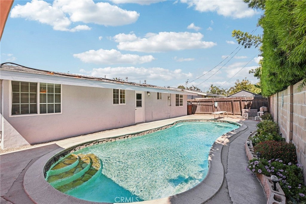 Welcome to your dream POOL home in the heart of Anaheim! This home is updated for peace of mind and efficiency, featuring a NEW ROOF (2026), fresh Cool Life EXTERIOR PAINT (2026), and a NEWER WATER HEATER (installed 11/2025). This inviting single-family residence boasts 4 bedrooms and 2 bathrooms, thoughtfully designed with an open floor plan and impressive vaulted ceilings. One of the bedrooms has its own en suite bathroom, perfect for guests or multigenerational living or as a Primary Bedroom. Step into the bright, airy kitchen, seamlessly connected to the dining and living areas—ideal for both daily living and entertaining. A convenient slider door from the living room opens directly to a side patio, creating the perfect flow for indoor-outdoor gatherings. Enjoy sunny California days in your own sparkling pool, set within a generous 6,100 square foot lot that provides plenty of room for fun and relaxation. The oversized driveway offers ample parking, complementing the attached two-car garage for all your vehicles and storage needs. Nestled in a prime location, you’re just minutes from Disneyland, shopping centers, renowned dining, and convenient freeway access—making commutes and weekend adventures a breeze. Whether you’re hosting friends by the pool, relaxing on the patio, or exploring all Anaheim has to offer, this home perfectly blends comfort, style, and convenience. Don’t miss the opportunity to make this beautiful residence your own!