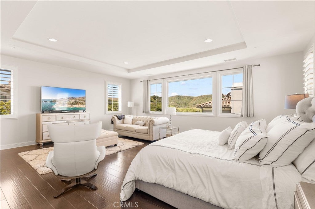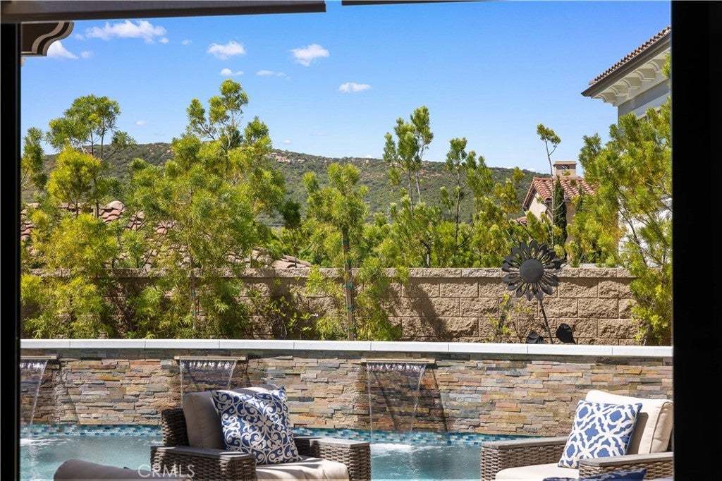 Perched on a premium oversized lot within the prestigious 24-hour guard-gated enclave of Hidden Canyon, this exceptional five-bedroom, six-bath estate offers breathtaking hillside views, enhanced privacy, and a long private driveway that creates a grand sense of arrival. A dramatic foyer with dual sweeping staircases sets the tone, leading into an expansive open-concept floor plan filled with natural light. Thoughtfully designed for both elegant entertaining and comfortable daily living, the main level features a spacious formal living room and a welcoming family room, seamlessly connected to the dining area and great room. The chef’s kitchen is a true centerpiece, showcasing premium appliances, custom cabinetry, a striking waterfall island, a walk-in pantry, and a separate prep kitchen—designed for both functionality and elevated style. Expansive sliding pocket doors open wide to create a seamless indoor-outdoor experience. The first floor also includes a private guest suite and a dedicated office, offering flexibility for multi-generational living or remote work. Upstairs, three generously sized en-suite bedrooms are complemented by a spacious loft and a conveniently located laundry room. The primary suite is a serene retreat, featuring large picture windows that frame picturesque hillside views, along with a spa-inspired bathroom designed for ultimate relaxation. The luxurious primary bath showcases dual vanities with rich cabinetry, a soaking tub set in elegant stone surrounds, separate glass-enclosed showers, and an expansive walk-in closet—creating a refined, spa-like environment. The outdoor space is designed for resort-style living and entertaining, complete with a pool accented by water features, a spa, covered patio, outdoor kitchen with built-in BBQ and bar seating, a putting green, and multiple lounging areas perfect for gatherings. Enhancing both sustainability and modern convenience, the home is equipped with owned solar panels and a dedicated EV charger, offering energy efficiency and future-ready living. Dual garages provide parking for up to four vehicles. Residents enjoy access to the exclusive amenities of Hidden Canyon, including a clubhouse, resort-style pool and spa, outdoor gathering areas, and parks—culminating in a true luxury living experience where elegance, privacy, and resort-inspired comfort define every moment at home.
