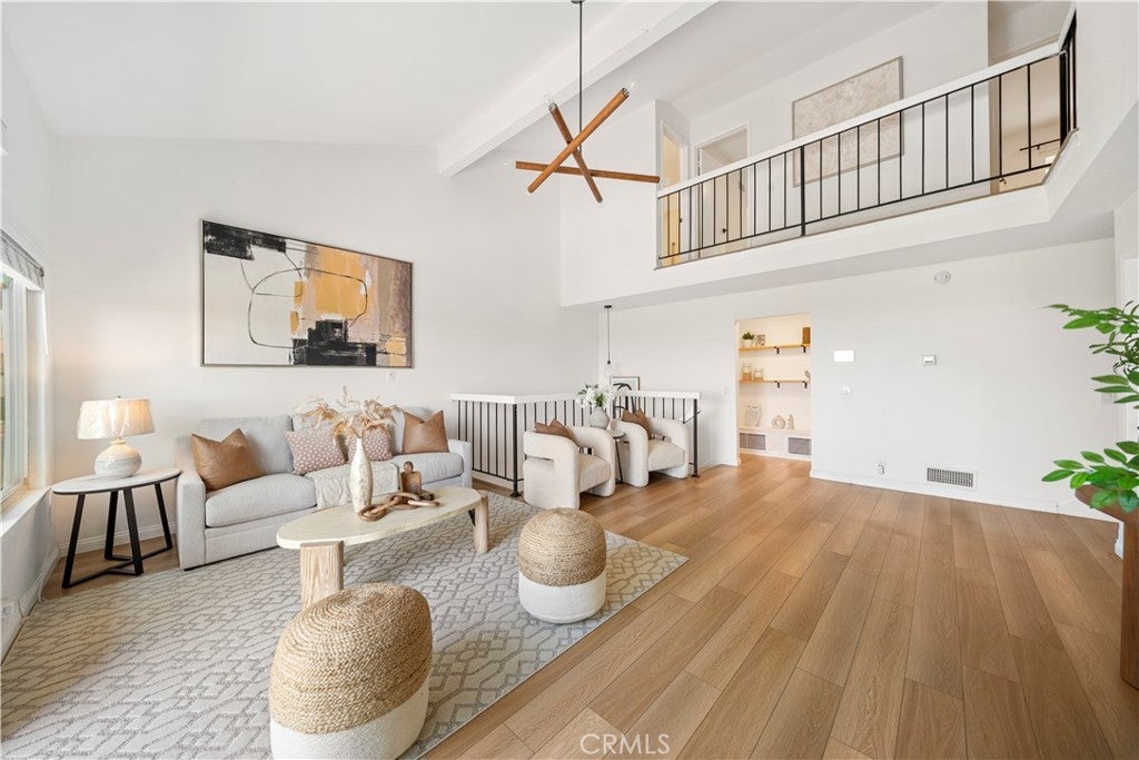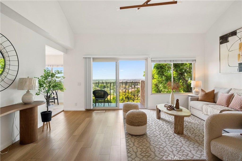 A Rare Offering with Truly Unparalleled Panoramic Views Across Los Angeles. This is one of the few homes in the community with sweeping, unobstructed views from Downtown Los Angeles to the Palos Verdes Peninsula. The scenery changes throughout the day, with especially beautiful sunsets. On the Fourth of July, you can even enjoy fireworks across the city right from home. Fully renovated in 2022, this move-in-ready home offers updated vinyl flooring and tile, a newer water heater, and a clean, contemporary aesthetic throughout. The main living area is bright and open, with high ceilings and plenty of natural light. The layout connects the living room, dining area, and kitchen, making it comfortable for both daily living and entertaining. A private balcony offers a great place to relax and enjoy the views. The primary bedroom is on the main level and includes its own quiet patio, perfect for relaxing or having a morning coffee. Upstairs, there are two additional bedrooms, a full bathroom, and extra storage space, offering flexibility for guests, family, or a home office. The community’s HOA amenities include a pool and spa. Located close to shopping, dining, and major commute routes (Highway 605 and 60), this home offers a great combination of views, comfort, and convenience. One of the best view homes in the community, a rare opportunity you don’t want to miss!