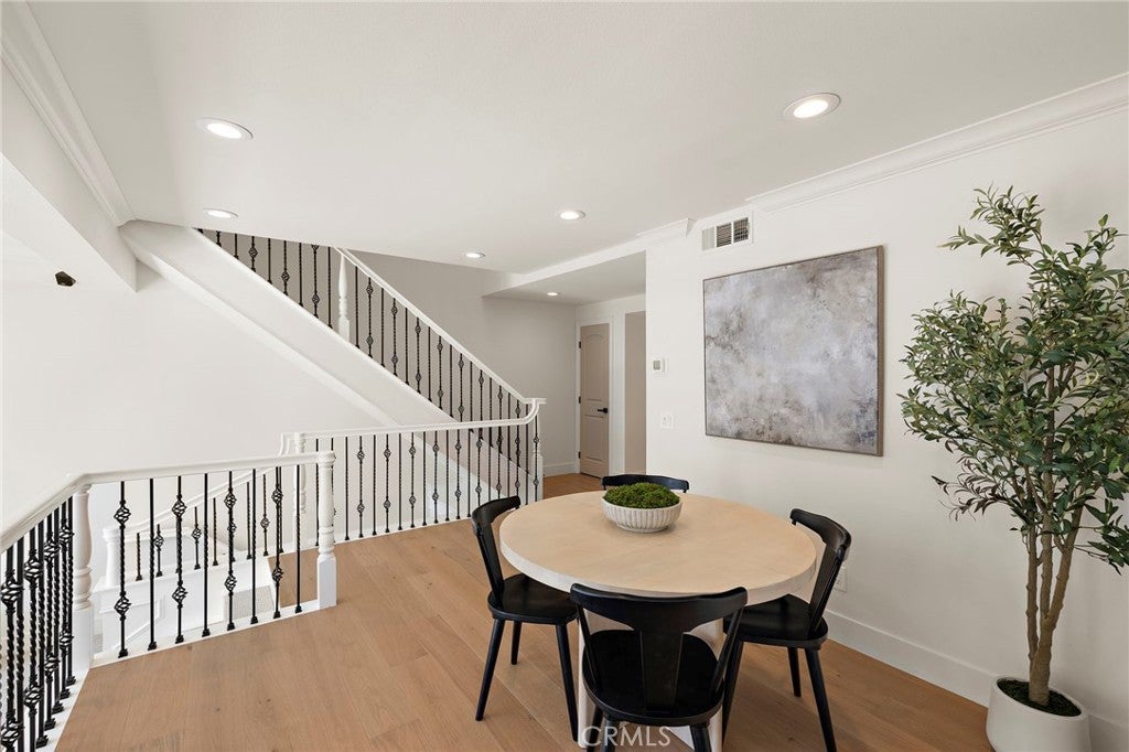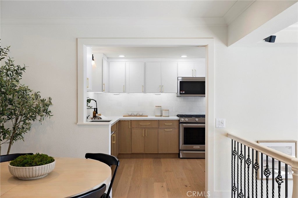 Timeless coastal charm nestled in the highly coveted Newport Crest community of Newport Beach. Boasting ocean views from the master balcony, 4 Odyssey is one of the finest remodels recently offered in the Newport Crest neighborhood. Transformed in 2026 by Pearl 39, this converted 4 bedroom and 3 bath home is move-in ready. Guests will immediately recognize the engineered white oak wood flooring leading into a fully remodeled kitchen featuring carefully curated materials. The designer included ample bar seating, and quartz countertops. Beautiful stair railing takes you to the sunken living area with access to a large balcony and famous Newport ocean breezes. The elevated Primary bedroom includes a vaulted ceiling, custom wainscoting, enhanced storage and balcony ocean views. The large Primary bathroom includes dual vanity and expanded master shower. The home includes an oversized 2 car garage with washer and dryer hookups. The Newport Crest association maintains luxury amenities including 2 lighted tennis courts, a large swimming pool, and an outdoor spa. This family home is walking distance to widely popular Sunset Ridge Park overlooking the nearby ocean and balboa peninsula. Newport Crest is located only 10 miles from John Wayne Airport, moments from world class shopping and convenient nearby access to PCH, 55 and 405 freeways, the location provides accessible routes to whatever is your destination. What an opportunity!
