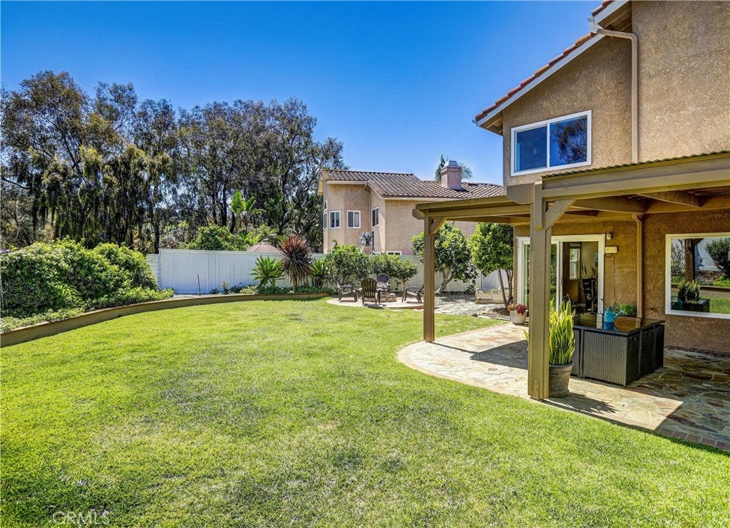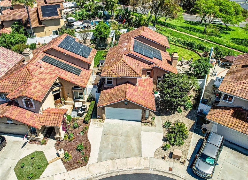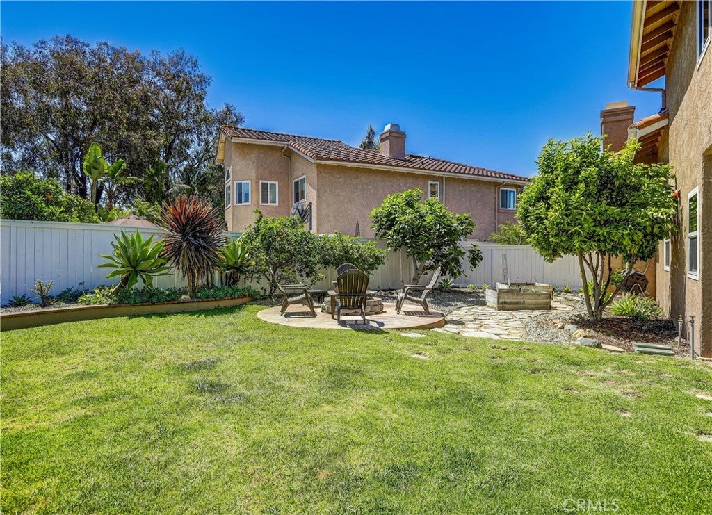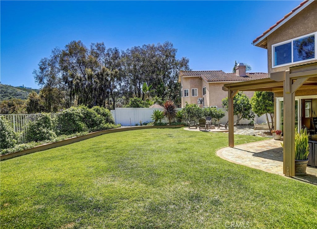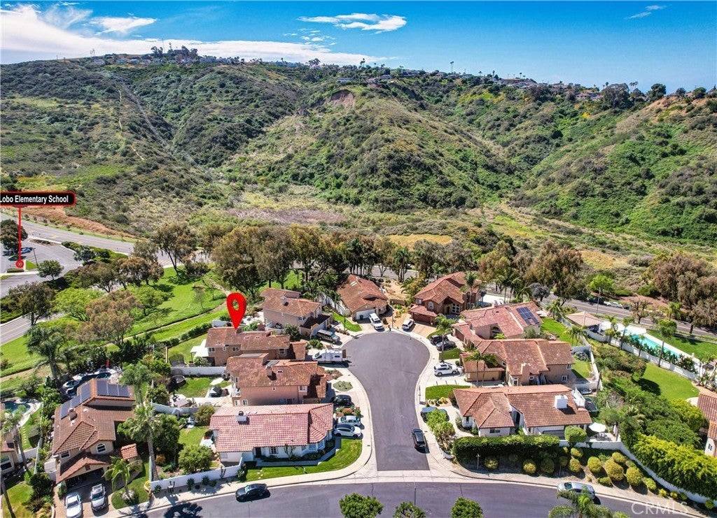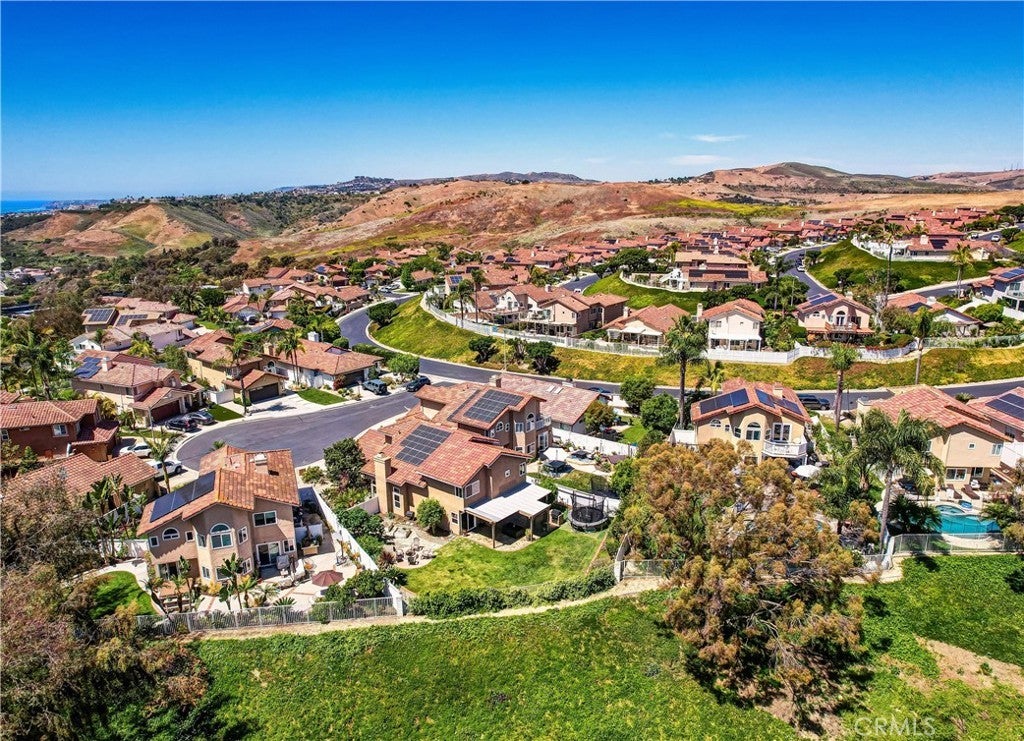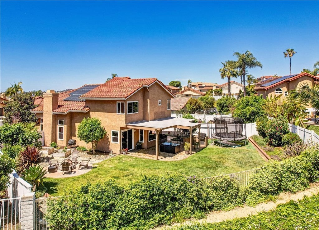 Prepare to fall in love with this spacious home, superbly located on a family-friendly cul-de-sac, with a prime lot featuring soothing Canyon and Hillside Views and backing up to a greenbelt, no one behind, in the desirable Montego community nestled among picturesque rolling hills. Spanish influenced architecture and manicured water conscious front yard landscaping creates a welcoming first impression. Step inside and soak in the soaring two story vaulted ceilings and the light filled interior with wood-look tile flooring, recessed lighting, and a well-designed floorplan providing a perfect living environment. The formal living room is a wonderful space for gatherings around the striking fireplace. The impressive remodeled and redesigned kitchen features gorgeous warm cabinetry, Granite countertops, full glass tile backsplash, Stainless Steel appliances, a sunny breakfast nook with large picture window and window seat overlooking the backyard, and a prized kitchen island with breakfast bar, and an abundance of storage, all open to the light and bright dining area with sliding doors opening to the backyard and patio creating an ideal indoor-outdoor living space ideal for entertaining. The main level includes a full bathroom and a desirable main level bedroom, also perfect for an executive home office. The upstairs primary bedroom suite is a peaceful retreat with vaulted ceilings, walk-in closet, and a handsome primary bathroom with dual vanities, gorgeous cabinetry, framed vanity mirrors, upgraded lighting, step-in shower with frameless glass enclosure, and a decadent soaking tub. The redesigned upper level also includes 3 secondary bedrooms and a handsome guest bathroom. The expansive, pool size, backyard is a tranquil oasis taking full advantage of the cool ocean breezes and features a large, covered patio, built-in BBQ and bar, sunny lawn, seating area with fire pit, planter boxes for home garden, and fragrant fruit trees including Orange, Lemon, Lime, Fig, and Avocado! Home includes water filtration/softener, and a cost saving OWNED Solar System with net zero electric bills and EV car charger. Repiped with PEX. Low HOA dues and No Mello Roos! Within walking distance to Lobo Elementary and Rancho San Clemente Park, easy access to numerous hiking and biking trails along Rancho San Clemente Trail, and close to shopping, dining, outlets, San Clemente High, easy 5 Frwy access, and just minutes from iconic downtown San Clemente world famous beaches!