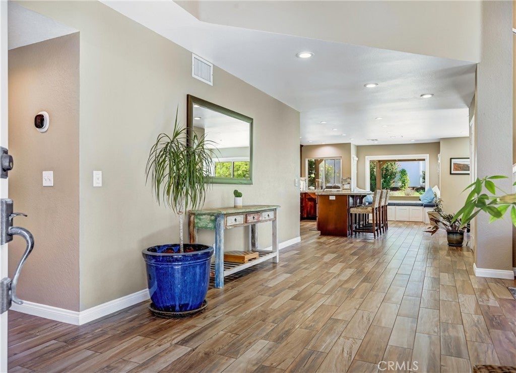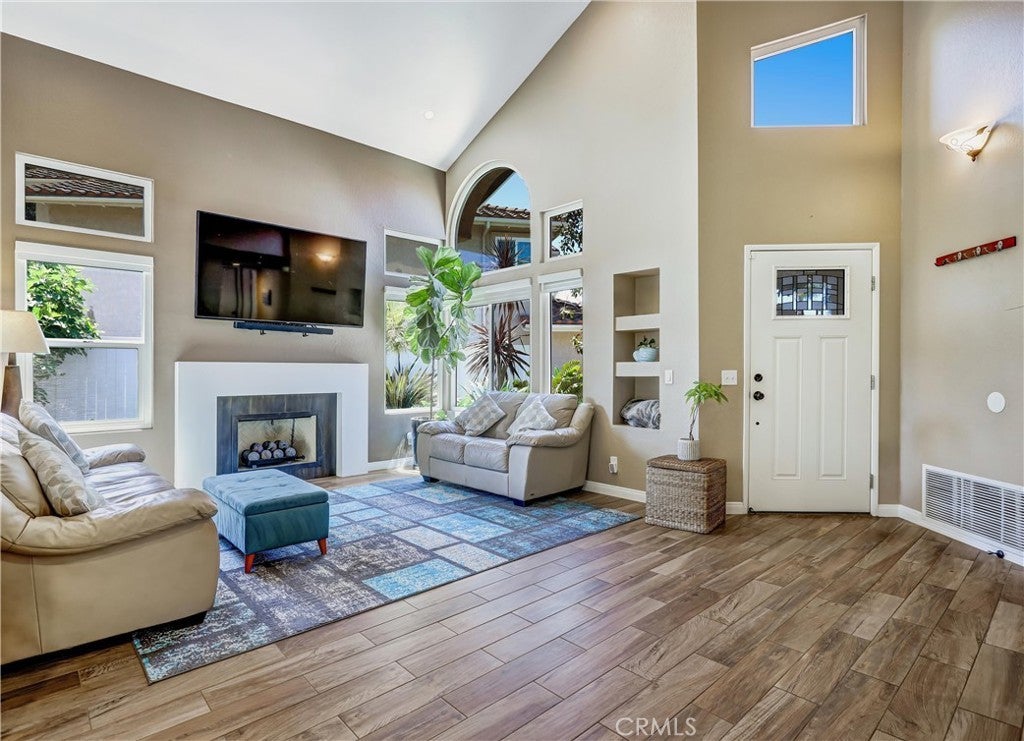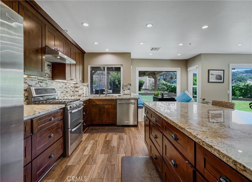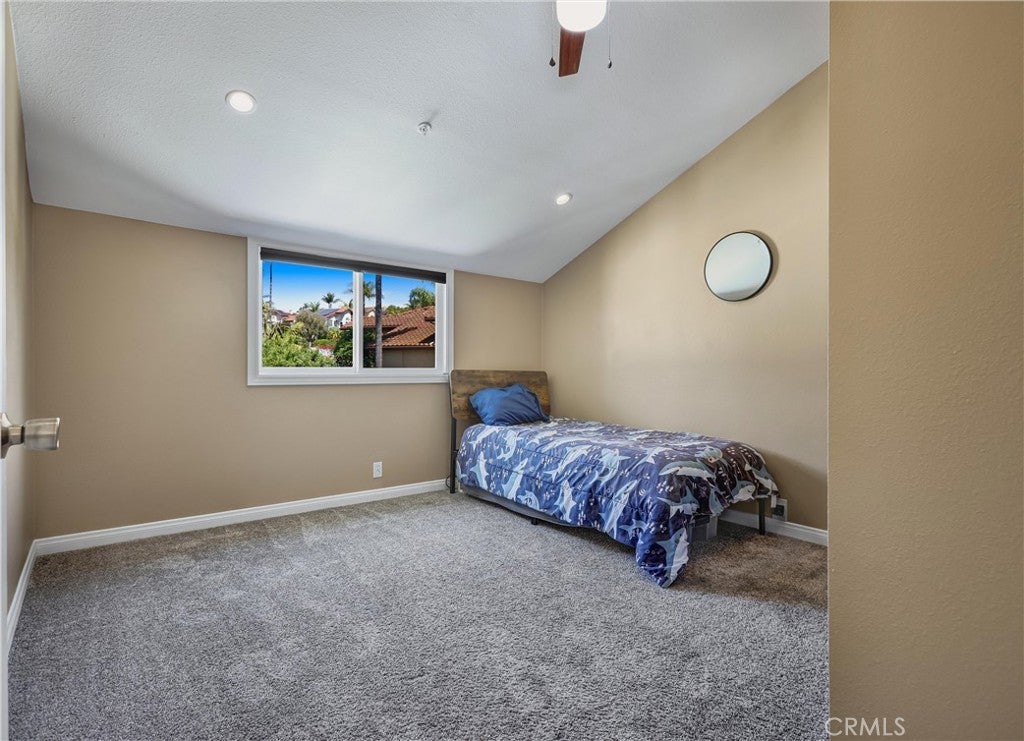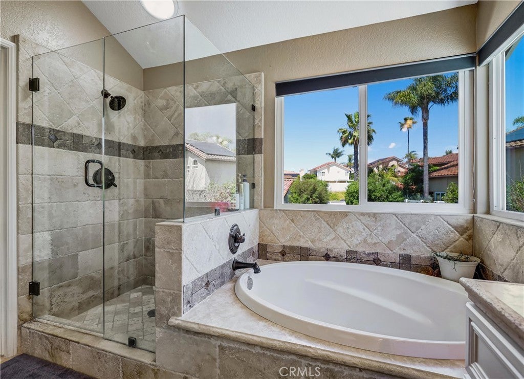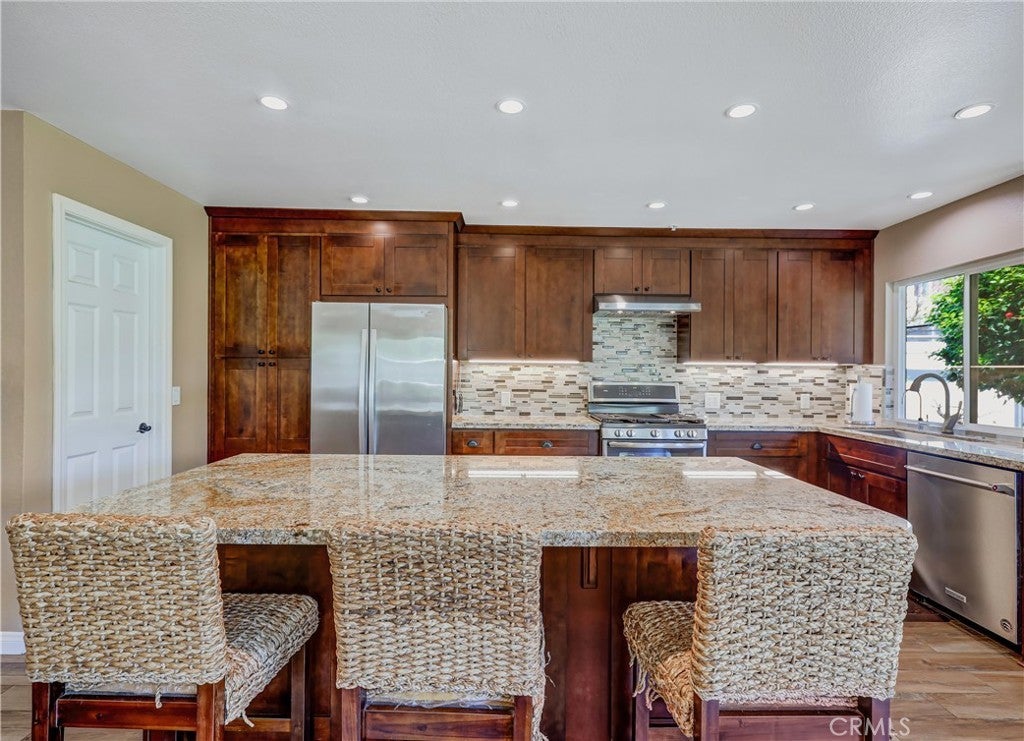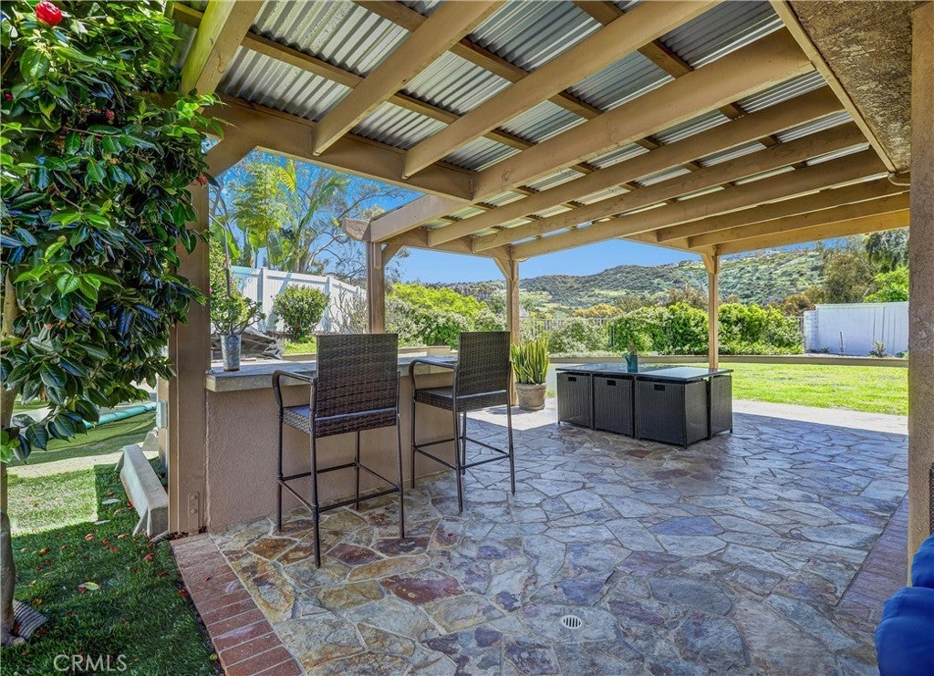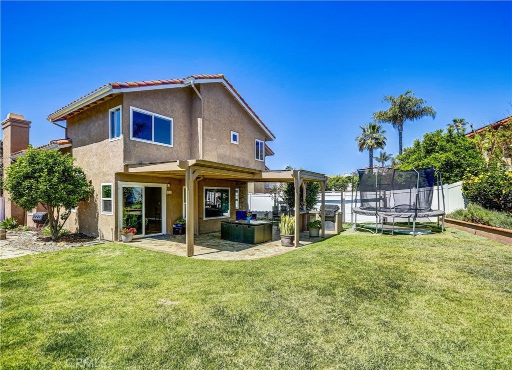 Prepare to fall in love with this spacious home, superbly located on a family-friendly cul-de-sac, with a prime lot featuring soothing Canyon and Hillside Views and backing up to a greenbelt, no one behind, in the desirable Montego community nestled among picturesque rolling hills. Spanish influenced architecture and manicured water conscious front yard landscaping creates a welcoming first impression. Step inside and soak in the soaring two story vaulted ceilings and the light filled interior with wood-look tile flooring, recessed lighting, and a well-designed floorplan providing a perfect living environment. The formal living room is a wonderful space for gatherings around the striking fireplace. The impressive remodeled and redesigned kitchen features gorgeous warm cabinetry, Granite countertops, full glass tile backsplash, Stainless Steel appliances, a sunny breakfast nook with large picture window and window seat overlooking the backyard, and a prized kitchen island with breakfast bar, and an abundance of storage, all open to the light and bright dining area with sliding doors opening to the backyard and patio creating an ideal indoor-outdoor living space ideal for entertaining. The main level includes a full bathroom and a desirable main level bedroom, also perfect for an executive home office. The upstairs primary bedroom suite is a peaceful retreat with vaulted ceilings, walk-in closet, and a handsome primary bathroom with dual vanities, gorgeous cabinetry, framed vanity mirrors, upgraded lighting, step-in shower with frameless glass enclosure, and a decadent soaking tub. The redesigned upper level also includes 3 secondary bedrooms and a handsome guest bathroom. The expansive, pool size, backyard is a tranquil oasis taking full advantage of the cool ocean breezes and features a large, covered patio, built-in BBQ and bar, sunny lawn, seating area with fire pit, planter boxes for home garden, and fragrant fruit trees including Orange, Lemon, Lime, Fig, and Avocado! Home includes water filtration/softener, and a cost saving OWNED Solar System with net zero electric bills and EV car charger. Repiped with PEX. Low HOA dues and No Mello Roos! Within walking distance to Lobo Elementary and Rancho San Clemente Park, easy access to numerous hiking and biking trails along Rancho San Clemente Trail, and close to shopping, dining, outlets, San Clemente High, easy 5 Frwy access, and just minutes from iconic downtown San Clemente world famous beaches!