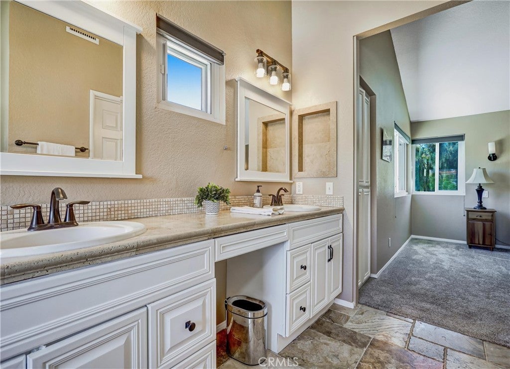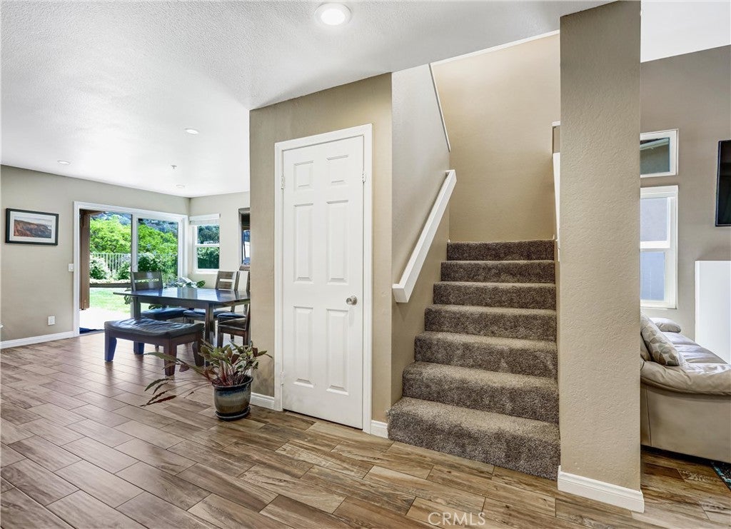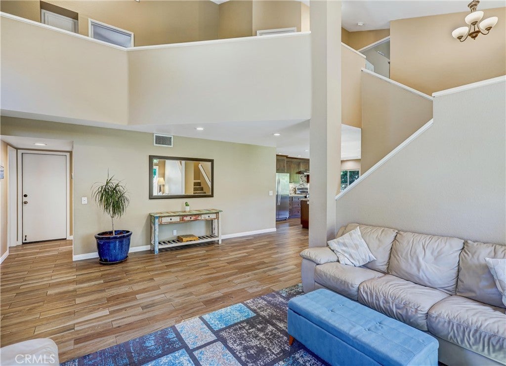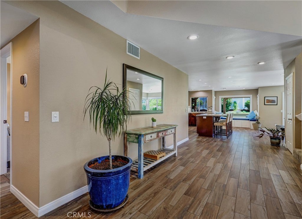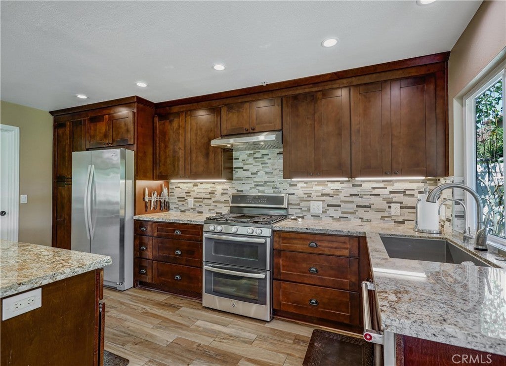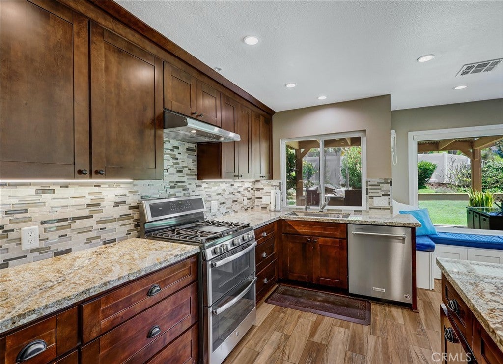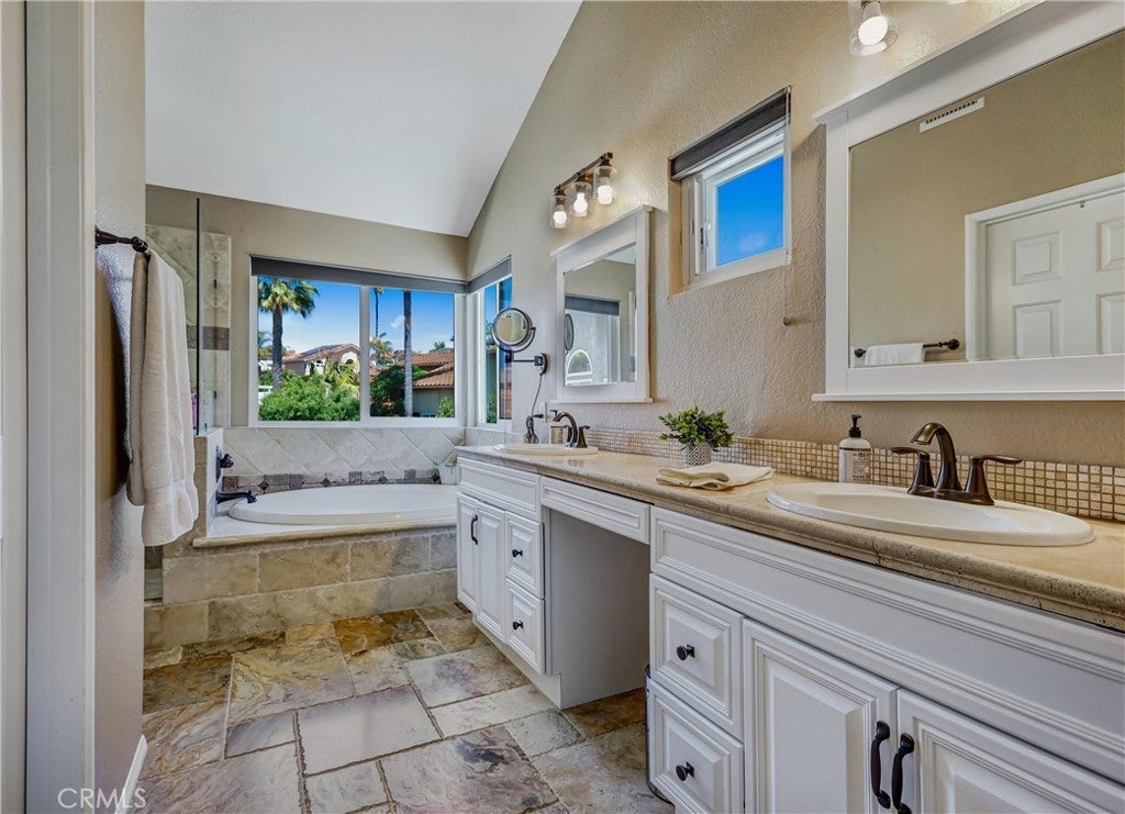 Prepare to fall in love with this spacious home, superbly located on a family-friendly cul-de-sac, with a prime lot featuring soothing Canyon and Hillside Views and backing up to a greenbelt, no one behind, in the desirable Montego community nestled among picturesque rolling hills. Spanish influenced architecture and manicured water conscious front yard landscaping creates a welcoming first impression. Step inside and soak in the soaring two story vaulted ceilings and the light filled interior with wood-look tile flooring, recessed lighting, and a well-designed floorplan providing a perfect living environment. The formal living room is a wonderful space for gatherings around the striking fireplace. The impressive remodeled and redesigned kitchen features gorgeous warm cabinetry, Granite countertops, full glass tile backsplash, Stainless Steel appliances, a sunny breakfast nook with large picture window and window seat overlooking the backyard, and a prized kitchen island with breakfast bar, and an abundance of storage, all open to the light and bright dining area with sliding doors opening to the backyard and patio creating an ideal indoor-outdoor living space ideal for entertaining. The main level includes a full bathroom and a desirable main level bedroom, also perfect for an executive home office. The upstairs primary bedroom suite is a peaceful retreat with vaulted ceilings, walk-in closet, and a handsome primary bathroom with dual vanities, gorgeous cabinetry, framed vanity mirrors, upgraded lighting, step-in shower with frameless glass enclosure, and a decadent soaking tub. The redesigned upper level also includes 3 secondary bedrooms and a handsome guest bathroom. The expansive, pool size, backyard is a tranquil oasis taking full advantage of the cool ocean breezes and features a large, covered patio, built-in BBQ and bar, sunny lawn, seating area with fire pit, planter boxes for home garden, and fragrant fruit trees including Orange, Lemon, Lime, Fig, and Avocado! Home includes water filtration/softener, and a cost saving OWNED Solar System with net zero electric bills and EV car charger. Repiped with PEX. Low HOA dues and No Mello Roos! Within walking distance to Lobo Elementary and Rancho San Clemente Park, easy access to numerous hiking and biking trails along Rancho San Clemente Trail, and close to shopping, dining, outlets, San Clemente High, easy 5 Frwy access, and just minutes from iconic downtown San Clemente world famous beaches!