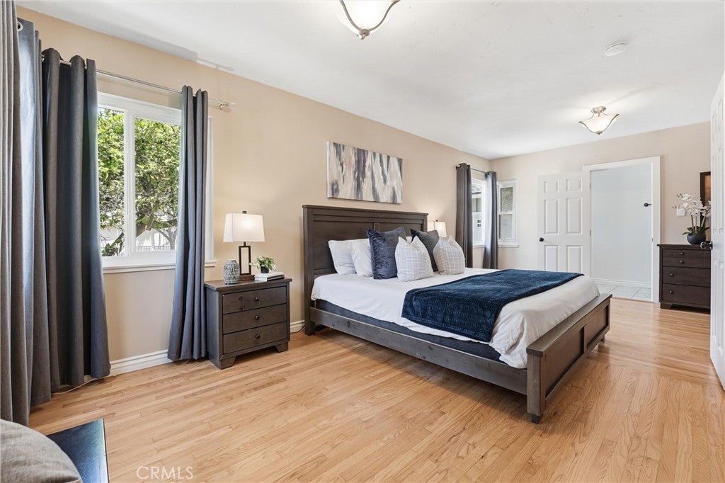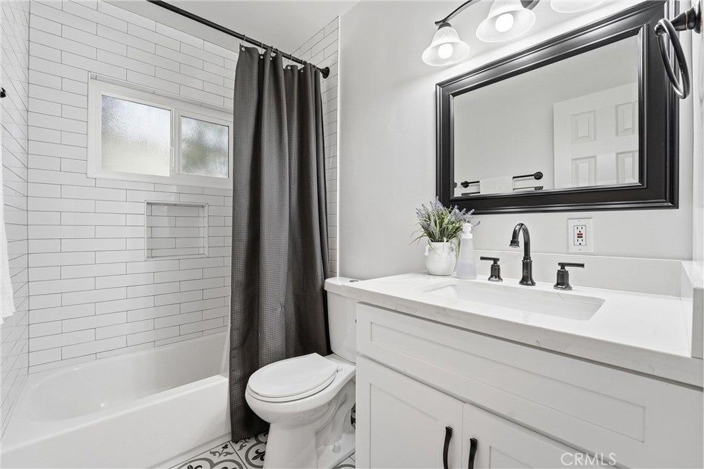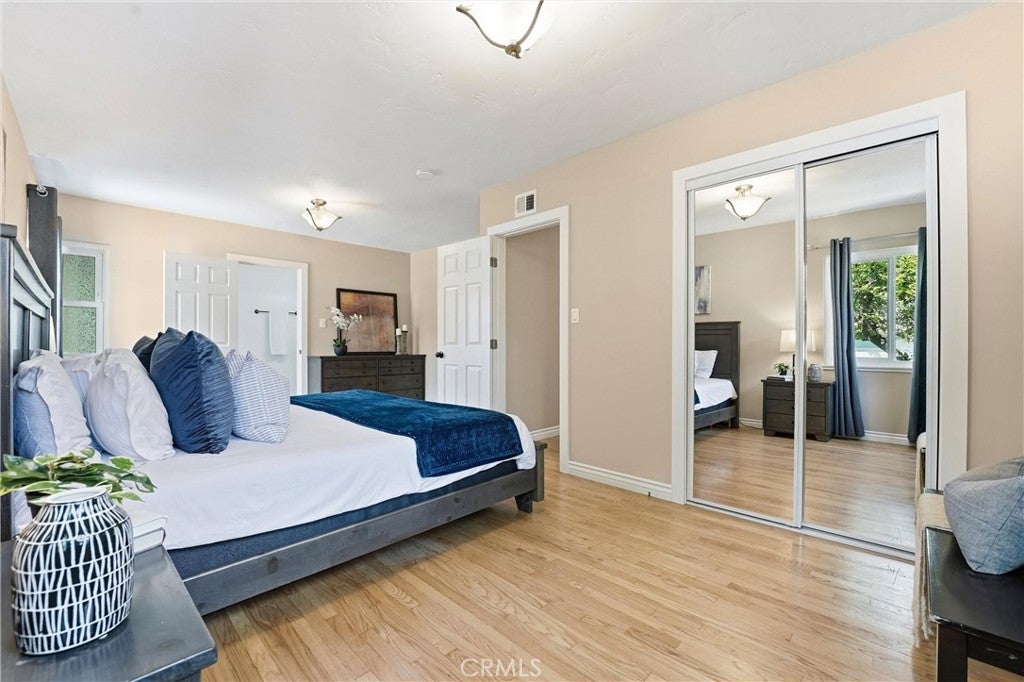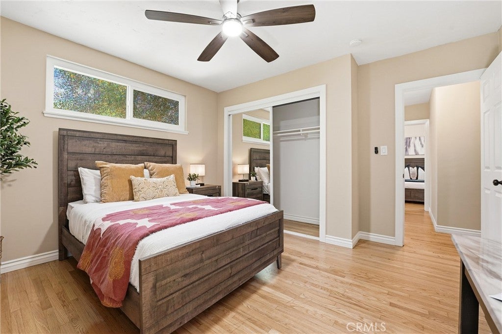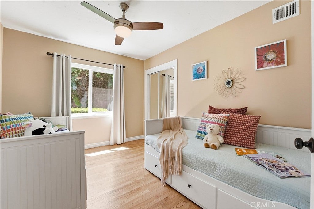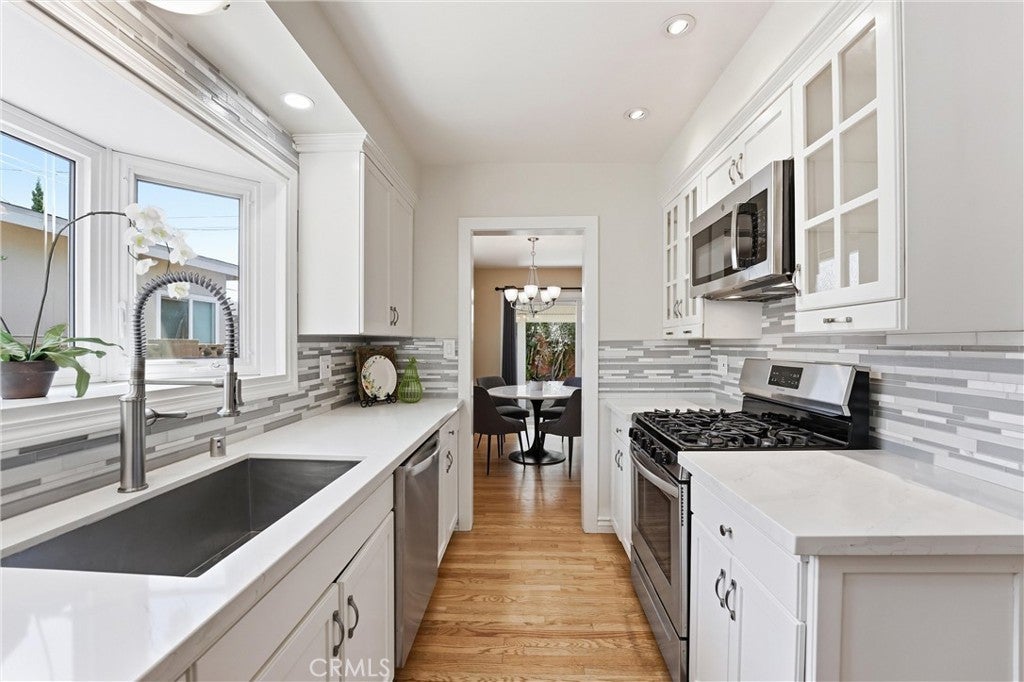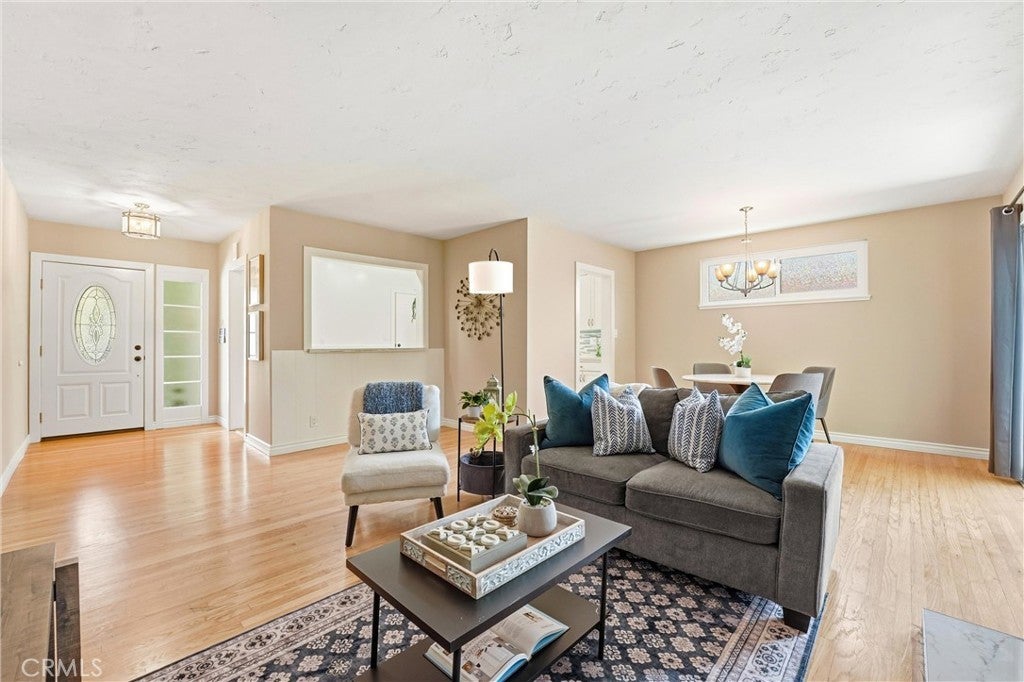 Beautifully upgraded single-story home located on a charming tree-lined street in Fullerton. This turnkey property offers excellent curb appeal with exterior paint, lush landscaping, and mature fruit trees.The bright open-concept layout features hardwood flooring throughout, 5-inch baseboards, vinyl windows and sliding doors, recessed lighting, contemporary fixtures, ceiling fans, and central air conditioning. The stunning kitchen showcases white cabinetry, quartz countertops, a glass tile backsplash, and stainless steel appliances—perfect for both everyday living and entertaining. The spacious living and dining areas are filled with natural light, highlighted by a beautiful quartz-surround fireplace that serves as the focal point of the home. All three bedrooms are generously sized with mirrored closet doors, including an expansive primary suite (approx. 20’ x 12’) with dual closets and a private retreat area. Both bathrooms have been tastefully upgraded with custom tile, frameless glass shower enclosures, and modern vanities and finishes.Enjoy the California indoor-outdoor lifestyle in the private backyard featuring a covered patio, custom flagstone hardscape. Located within the highly regarded Fullerton Joint Union High School District, with convenient access to the 91 and 5 freeways and just minutes from Downtown Fullerton’s shopping, dining, and transportation.