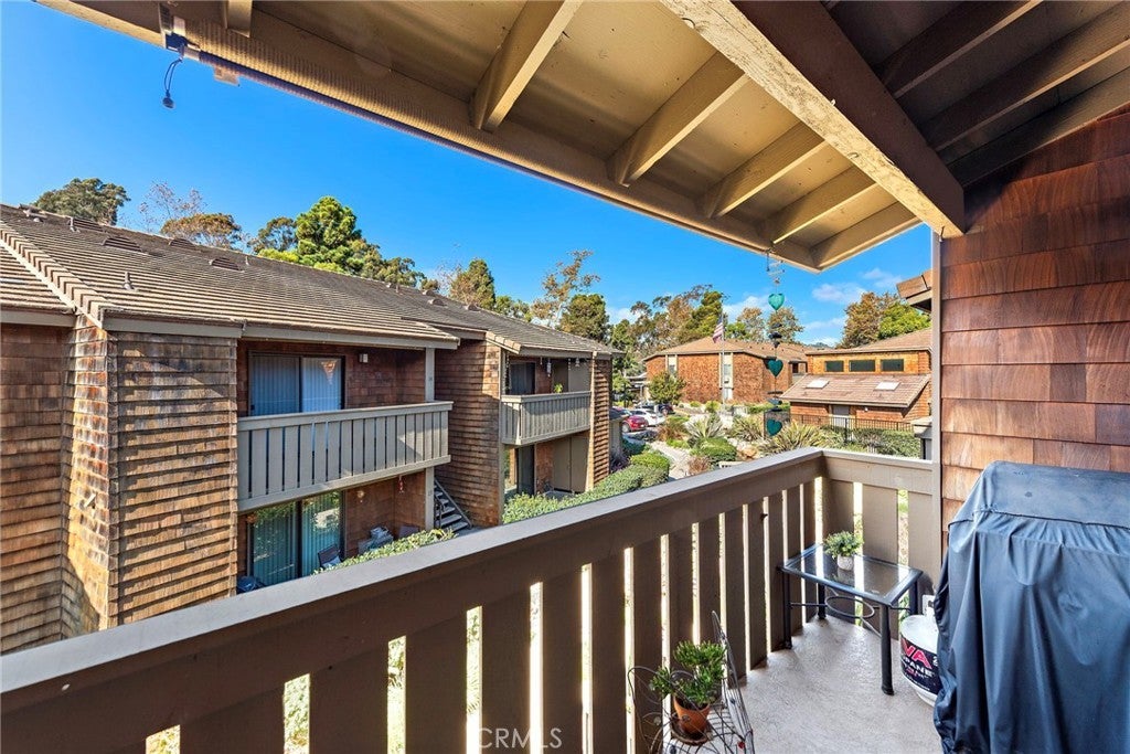 Welcome to this beautifully maintained furnished 1-bedroom, 1-bath upstairs end-unit in the desirable Del Obispo community. Ideally situated with no one above, this home offers added privacy along with exceptional natural light and refreshing ocean breezes rarely found in the community. The interior features wood-style flooring throughout, an updated kitchen with quartz countertops, white cabinetry, and stainless steel appliances, and a functional dining area that opens to the living space. The spacious bedroom includes ample storage, while the bathroom is tastefully updated with a clean, modern feel. Enjoy the convenience of an in-unit washer and dryer located on the private balcony, along with peaceful surrounding greenery and mature landscaping. Offered fully furnished, this home is perfect for those seeking a move-in ready coastal lifestyle in a prime location just minutes from beaches, dining, and shopping.