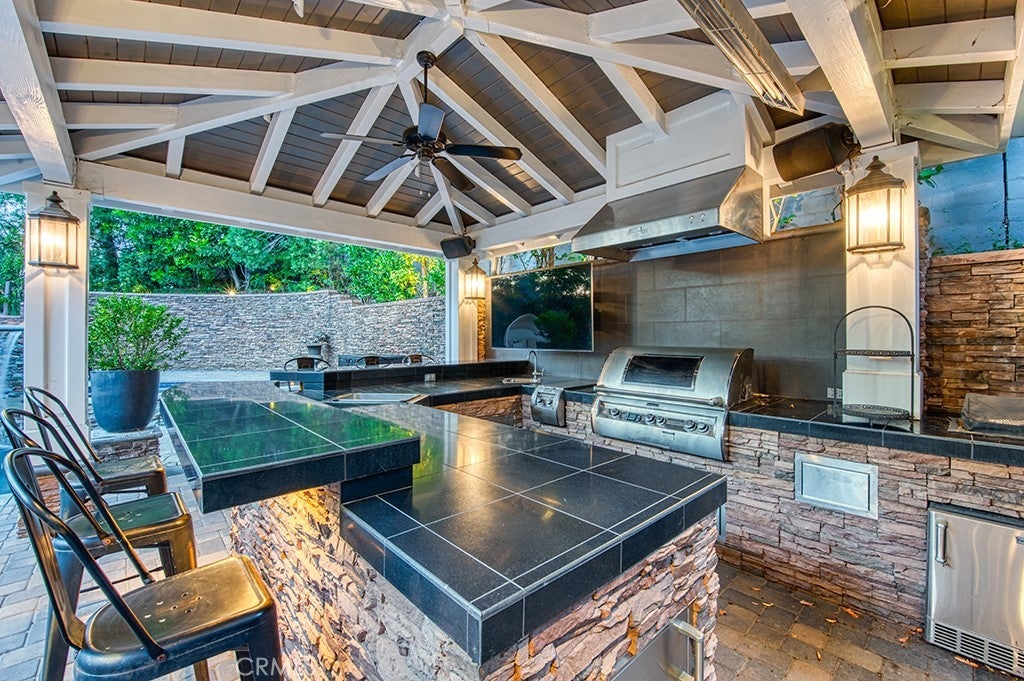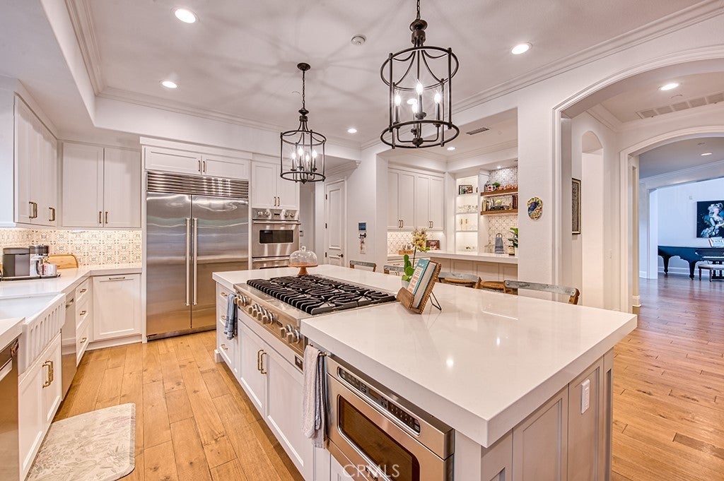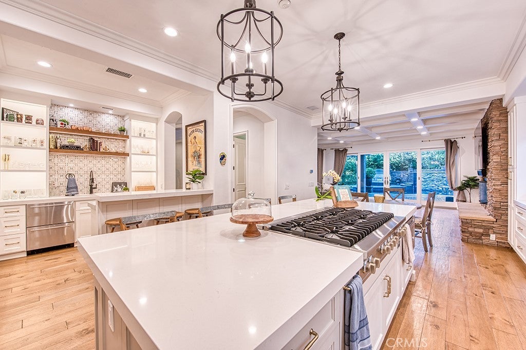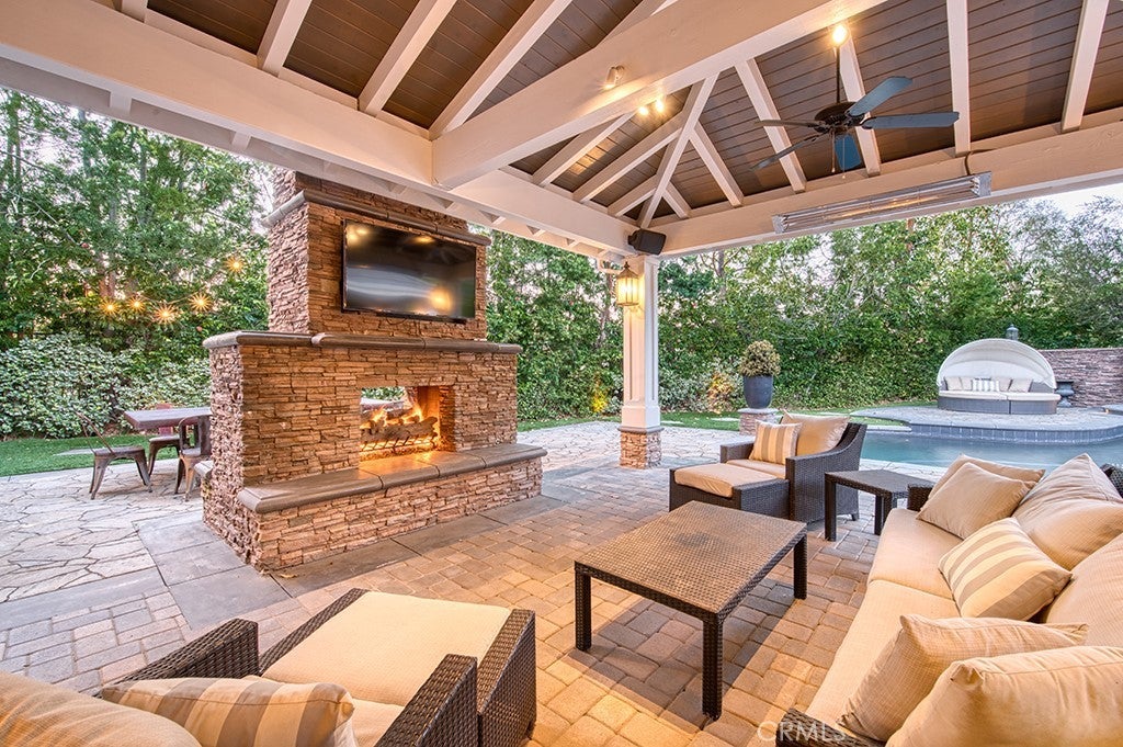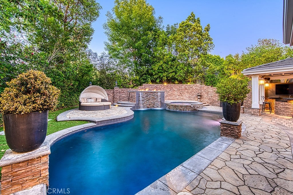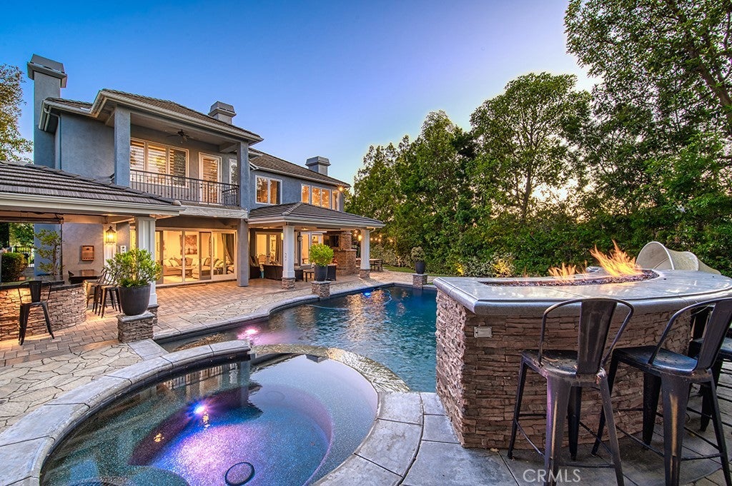 Welcome to 22 Hawthorne, an exceptional and rarely offered corner-lot residence tucked within the coveted Private Collection of South Coto de Caza—where elevated living meets everyday comfort on a premier 12,000 + sq. ft. lot. Showcasing a seamless blend of modern upgrades, expansive living spaces, and resort-inspired amenities, this home delivers a truly distinctive lifestyle in one of the community’s most desirable enclaves. This expansive residence offers 6 bedrooms, a dedicated office, a spacious bonus room, and 6.5 bathrooms, including a detached private casita with a kitchenette and en-suite—perfect for guests, multigenerational living, or a private retreat. A main-level bedroom with its own full bath and separate front access adds flexibility and convenience. A dramatic entry sets the tone with soaring ceilings and two-story windows that flood the formal living room with natural light. Coffered ceilings and a beautiful fireplace define the private downstairs office, while the formal dining room sits ideally near the heart of the home. The remodeled gourmet kitchen is a true showpiece, featuring high-end stainless steel appliances, a large center island, walk-in pantry, and a custom bar area complete with a wine refrigerator—designed for both everyday living and effortless entertaining. The kitchen opens seamlessly to the inviting family room, highlighted by coffered ceilings, a fireplace, and views of the beautiful backyard. Step outside to your own private oasis—surrounded by mature landscaping for ultimate privacy. The resort-style yard features a sparkling pool and spa, dramatic fire feature, and two outdoor living spaces that include a BBQ center and fireplace, creating the perfect indoor-outdoor lifestyle year-round. Upstairs, the luxurious primary suite offers a tranquil retreat with its own fireplace, a spa-inspired bathroom, expansive walk-in closet, and a versatile adjoining flex room overlooking the living space below—ideal for a gym, nursery, or lounge. Additional upstairs highlights include a generous bonus room, two secondary bedrooms with en-suite baths and walk-in closets, plus another bedroom with a nearby full bath. Additional upgrades include owned solar, four Powerwalls, whole house speaker system, and a newer HVAC system. Experience the best of Coto de Caza, where premier living meets award-winning schools, a world-class Golf & Racquet Club, scenic sports parks, and easy access to hiking, biking, and equestrian trails.