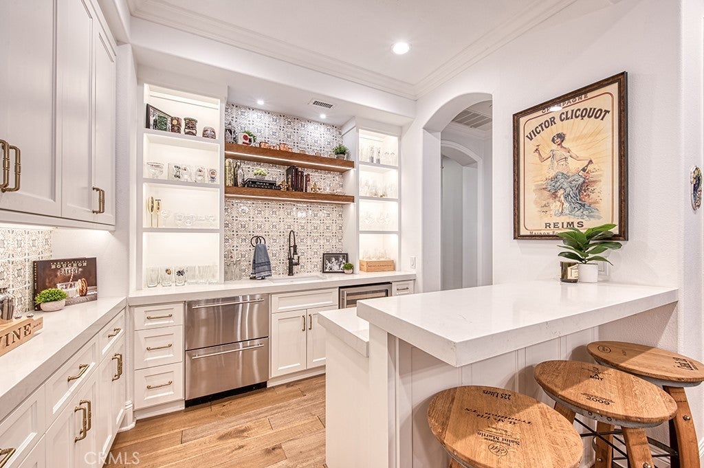 - Interior FeaturesWet Bar, Breakfast Bar, Ceiling Fan(s), Crown Molding, Separate/Formal Dining Room, High Ceilings, In-Law Floorplan, Open Floorplan, Pantry, Quartz Counters, Recessed Lighting, Two Story Ceilings, Bar, Bedroom on Main Level, Entrance Foyer, Primary Suite, Walk-In Pantry, Walk-In Closet(s), Coffered Ceiling(s)