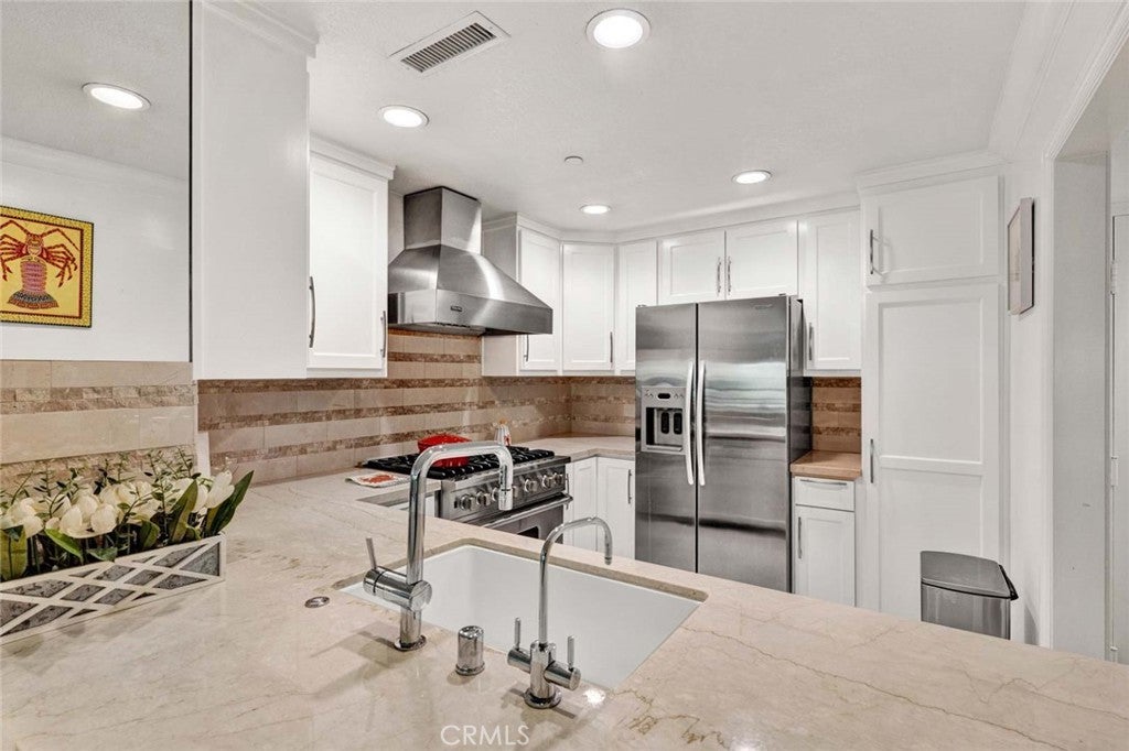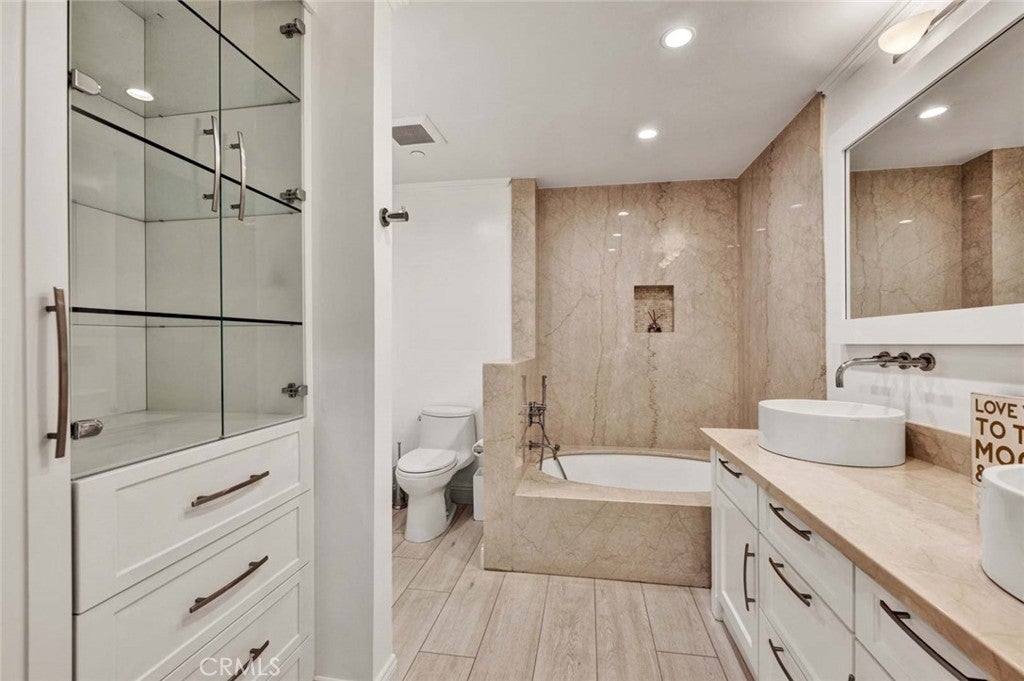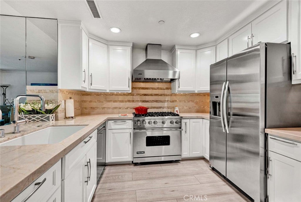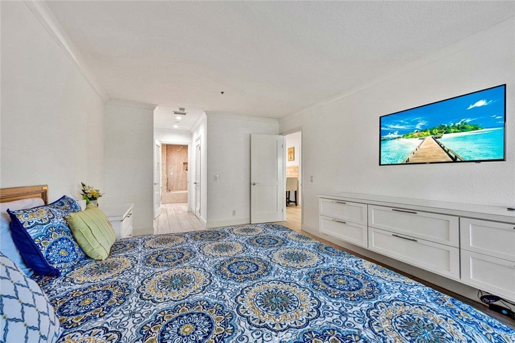 Welcome to your sophisticated coastal retreat in the heart of Newport Beach, located within the exclusive 24-hour guard-gated enclave of Villa Balboa. This gorgeous 1,320-square-foot, 2-bedroom, 2-bathroom home has been fully remodeled for the discriminating buyer, featuring a gourmet kitchen with custom shaker cabinetry, pull-out drawers, a dedicated spice rack, and elegant honed natural stone countertops. Professional-grade stainless steel appliances, including a Wolf range, refrigerator, and dishwasher, complete the space. Throughout the home, luxury vinyl flooring provides a modern, low-maintenance aesthetic that flows toward the outdoors through Milgard dual-pane windows and three sliding glass doors. Both generously sized bedrooms serve as private sanctuaries, outfitted with sleek built-in floating dressers and nightstands, while wardrobe closets by California Closets offer an exceptional amount of storage. The primary suite is perfectly designed with a walk-in closet and custom built-in cabinetry positioned between the bedroom and the ensuite bath. The primary bathroom features a relaxing bathtub, a beautiful glass-front display cabinet with glass shelving, and additional lower drawer storage. The second bedroom is equally impressive with plentiful wardrobe space and direct access to the second bathroom, which features a shower and a hallway entrance for guest convenience. A private balcony spans the length of the living room and both bedrooms, offering a seamless indoor-outdoor flow to enjoy the coastal breeze. The Villa Balboa lifestyle includes unparalleled amenities such as two sparkling pools and spas, three pickleball courts, a tennis court, a fitness center, and a clubhouse with a separate conference room and barbecue area. This residence includes one secure underground parking space and a private storage cabinet. Located just minutes from world-class beaches, Lido Marina Village, fine dining, and the vibrant Balboa Peninsula, this home offers the ultimate Newport Beach dream. Please note that this is a probate sale with full authority and no court confirmation required. While the property is in excellent condition, it is being sold in its current "as-is" state, with no repairs or credits to be provided.