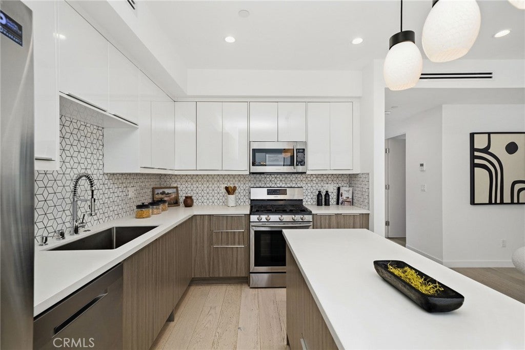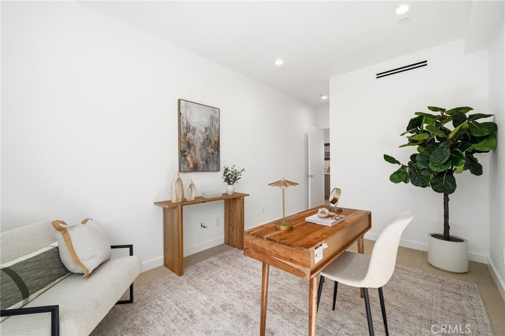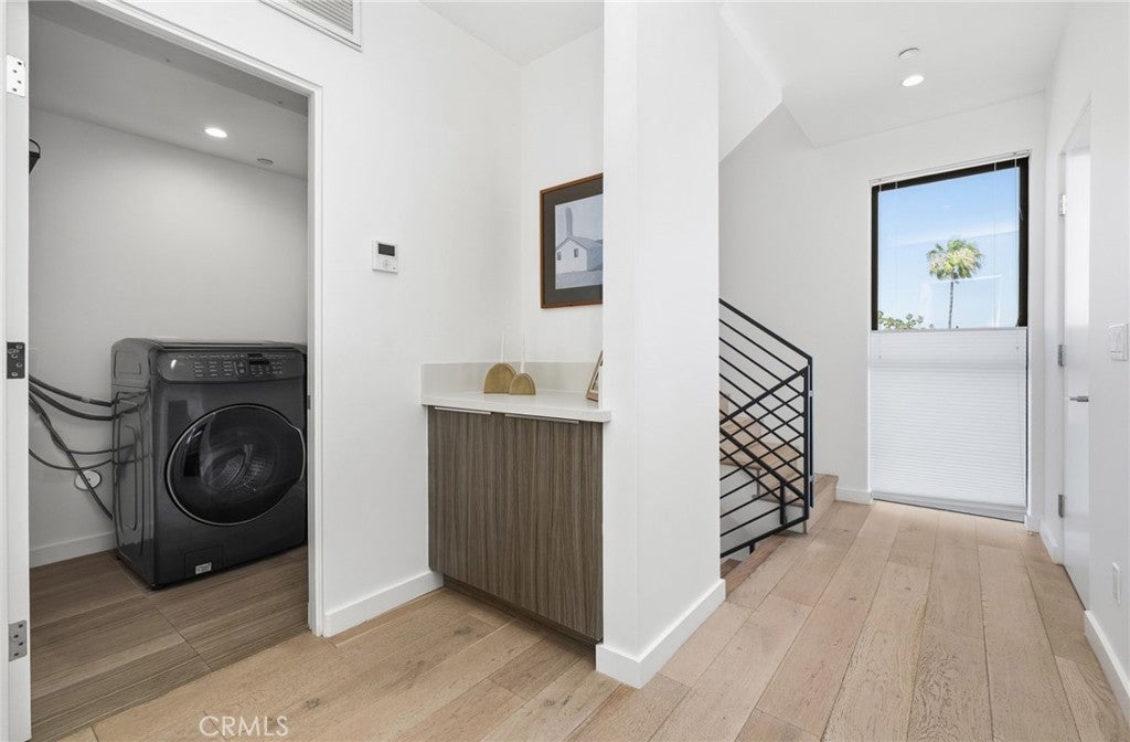 Located in the heart of Mid-City, this newer single family home (built in 2019 with no common walls) offers a modern, easy layout with great light and multiple levels that allow for both a great sense of space and separation. The main entertainment level you'll find that the living, dining, and kitchen all flow together with large south facing windows that bring in natural light throughout the day. The private outdoor patio on this level makes indoor–outdoor living a must. Upstairs are two bedrooms with generous-sized closets, a full bath, and a spacious laundry room with extra storage. The top level is dedicated to the primary suite, giving it a more private feel with its own outdoor space, two walk-in closets, and a well-designed bathroom with dual sinks and a walk-in shower. A two-car attached garage with direct access and EV-ready setup adds convenience, along with multi-zone heating and cooling for comfort throughout. Centrally located with easy access to Culver City, West Adams, and the best of LA’s dining!