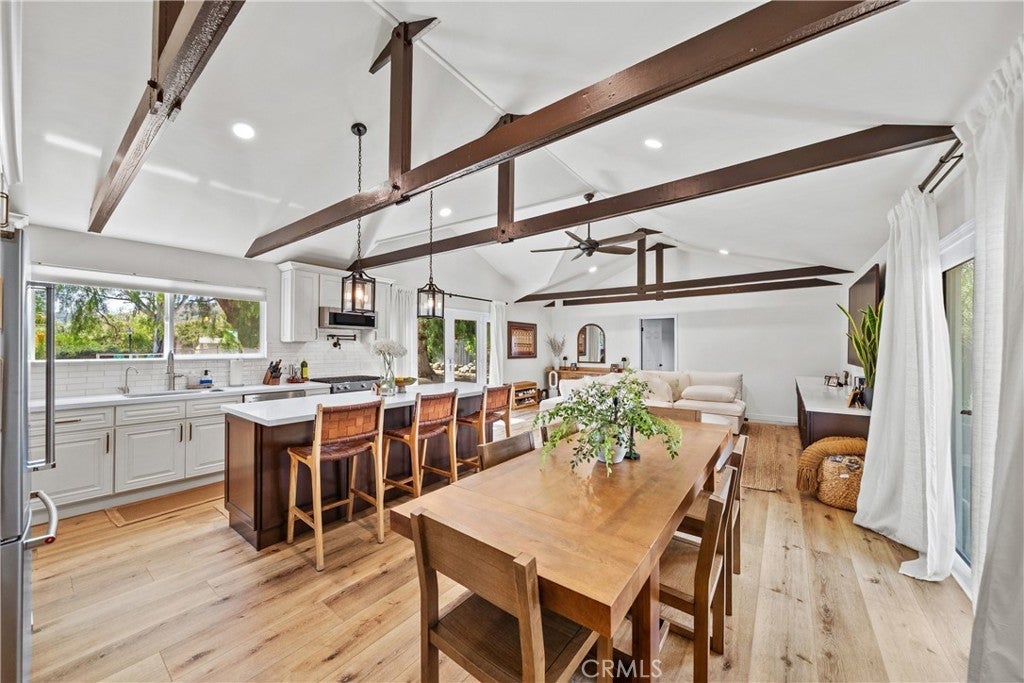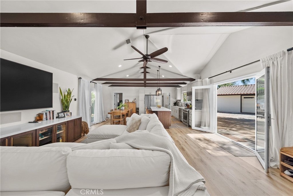 - Interior FeaturesBeamed Ceilings, Ceiling Fan(s), High Ceilings, Recessed Lighting, Bedroom on Main Level, Main Level Primary, Primary Suite, Walk-In Closet(s)