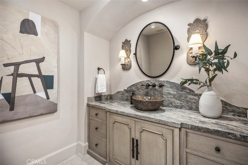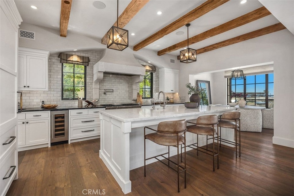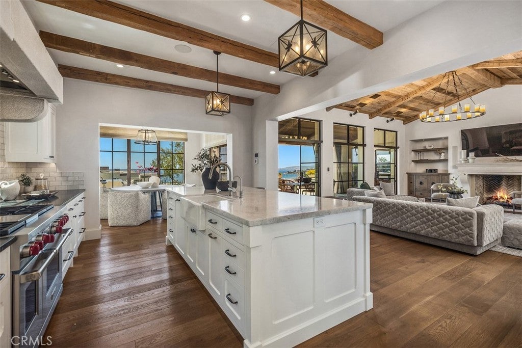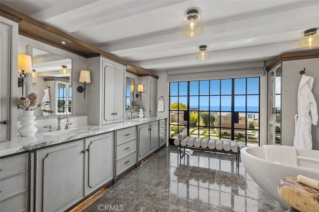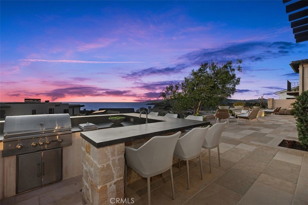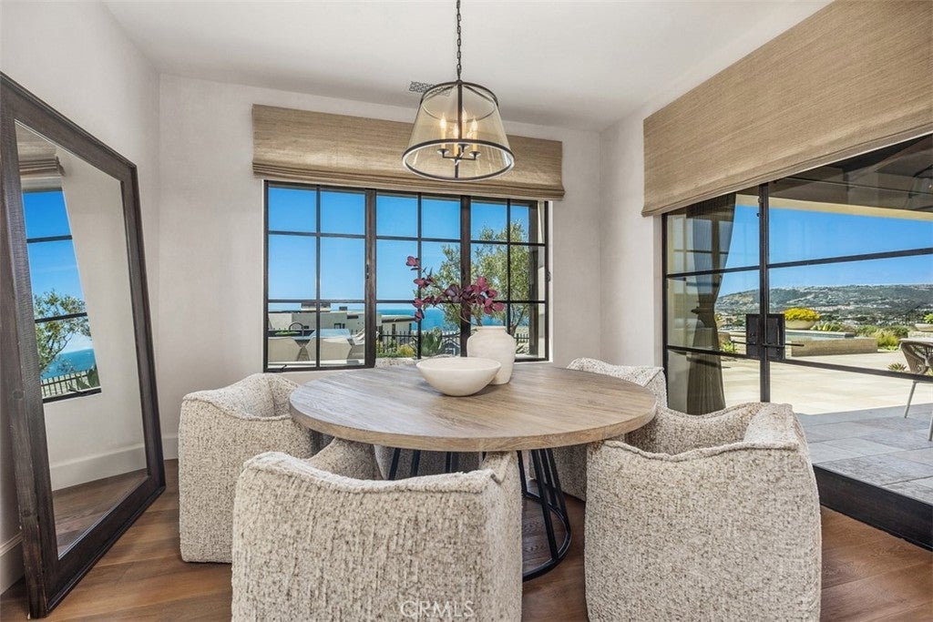 Private, custom and undeniably luxurious, this expansive Dana Point estate enchants with panoramic ocean, whitewater, Catalina and sunset views from its hilltop setting in the ultra-exclusive guard-gated community of The Strand at Headlands. Neighboring preserved natural space on the iconic oceanfront bluff, the bespoke residence welcomes vistas that stretch along the coast northward beyond evening lights to the Palos Verdes Peninsula, and south to San Clemente and Oceanside. At home, the exquisite European-inspired villa offers enviable privacy on an elevated site of nearly 14,680 square feet. A central courtyard creates a resort ambiance complete with an outdoor fireplace and dramatic hardscaping. Sounds of the surf and views of the beach below provide an incomparable backdrop on the rear terrace, where an infinity-edge spa, loggia, outdoor kitchen and open-air fireplace are on display. Of course, with grounds this exceptional, it stands to reason that indoor spaces are of equal grandeur. Built by Corbin Reeves Construction, with architectural design by Bob White and interiors by Wendy Young Design, the estate was crafted in 2017 to exacting standards. Approximately 6,272 square feet, it presents four ensuite bedrooms and five- and one-half baths, ensuring comfort for residents and guests. Enjoy a stunning foyer, a great room with access to both the courtyard and ocean-view loggia, and a formal dining room with built-ins and a wall of accordion-style glass doors leading to the courtyard. The kitchen offers ocean views from its breakfast room and reveals everything today’s sophisticated buyers desire. Discover a secondary catering kitchen, quartz countertops, white cabinetry, an island, and appliances from Sub-Zero and Wolf. A barrel ceiling crowns the main-level primary suite, where luxury knows no bounds and highlights are led by an ocean-view patio, sitting room, walk-in closet and freestanding tub. Accessed via the courtyard and a second-level bridge, the two-story guest house includes two bedrooms–one on each level–that can be combined into a single two-bedroom suite. A large ocean-view retreat with balcony provides a calm and relaxing setting, and an oversized media room hosts a walk-in wet bar and 110" screen with 4k projector. Moments from Laguna Beach, Dana Point Harbor and top schools, The Strand is renowned for its private waterfront club on Strand Beach, miles of scenic trails and 70 acres of open space.