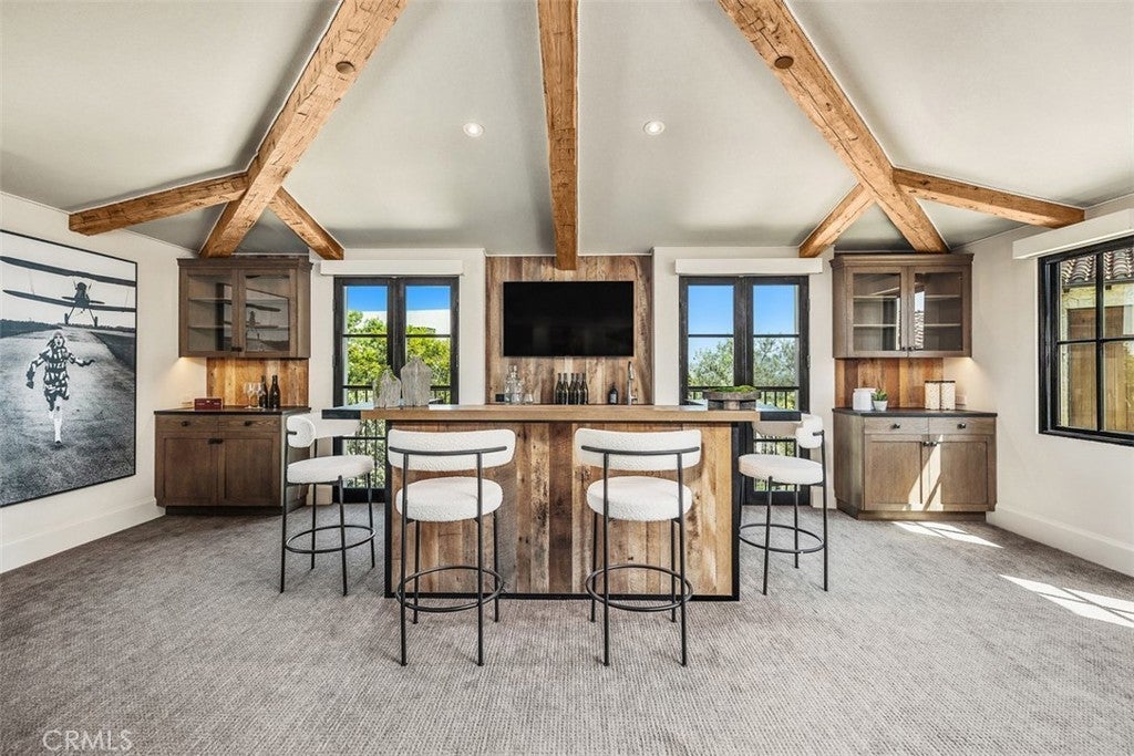 - Interior FeaturesBreakfast Bar, Built-in Features, Cathedral Ceiling(s), Separate/Formal Dining Room, Open Floorplan, Recessed Lighting, Bar, Bedroom on Main Level, Walk-In Pantry, Walk-In Closet(s), Beamed Ceilings, Breakfast Area, Main Level Primary, Pantry, Stone Counters