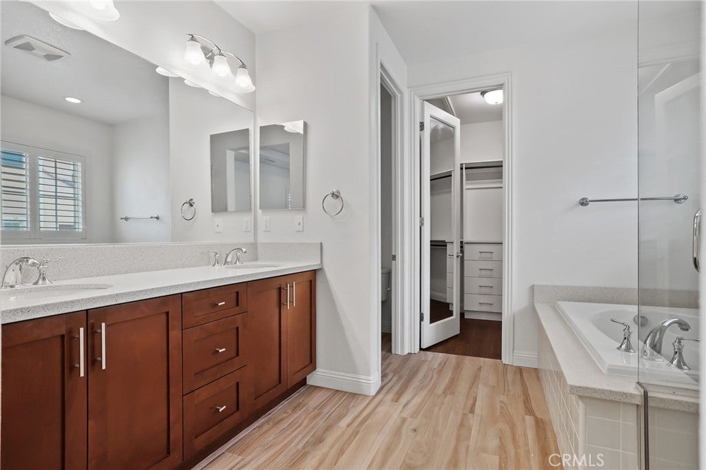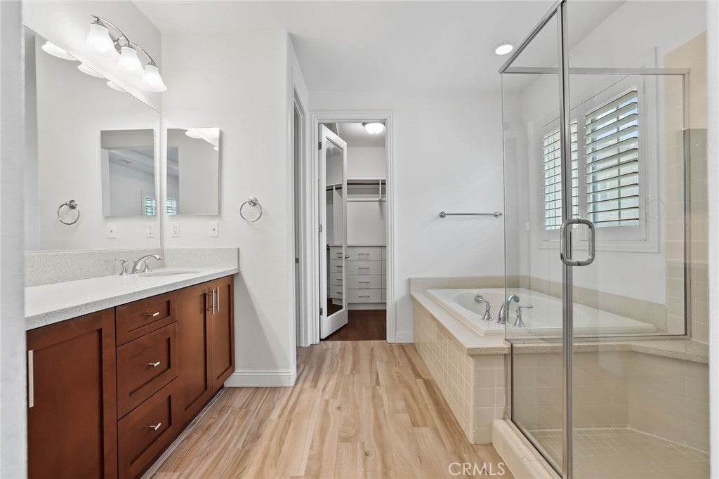 Beautifully Upgraded, Open Concept, Fantastic Floor Plan! Welcome to 35 Lantana in Baker Ranch! Featuring Four Bedrooms, Three Bathrooms, Multi-Purpose Upstairs Loft and Solar Panels, this home offers tremendous flexibility and functionality for any family. Enter the Expansive Great Room and immediately notice the Gorgeous Wood Look Tile Floors running throughout the Main Floor. Plantations Shutters, Designer Interior Paint and an abundance of Natural Light create the optimal space for the family. Continue into the Chefs Kitchen to indulge in the upgrades including Gorgeous Neutral Granite Counter Tops, Wood Cabinets, Walk-In Pantry, Upgraded Stainless Steel Appliances, Subway Tile Backsplash, Pendant Lighting and Center Island w/bar Seating. The dining area is just off the kitchen and opens to the California Room through massive Three Panel Doors creating the Indoor/Outdoor California Lifestyle we all love! The California room provides the perfect space to Entertain, dine outside or just relax. The highly desired Full Bathroom and Convenient Downstairs Bedroom round out the first floor. The family friendly floor plan continues upstairs as you immediately notice the Multi-Purpose Loft and Convenient Second Floor Laundry. The Spacious Primary Bedroom Suite has been fully upgraded to include Plantation Shutters, Trey Ceiling, Designer Interior Paint, and Stunning Chandelier. The Primary Bathroom does not disappoint featuring upgraded Tile Flooring, Relaxing Soaking Tub, Walk-in Shower, Dual Vanities, Quartz Counter Tops, Neutral Tile flooring and Walk-In Closet with custom built ins. Additional Features Include Dual Zone AC, Tankless Water Heater...Baker Ranch offers top-of-the-line amenities including 3 Swimming Pools, 8 Parks, Hiking and Biking Trails, Tennis Courts, Beach Volleyball, Basketball Courts, Dog Park, Clubhouse, and More. Do not wait on this one!