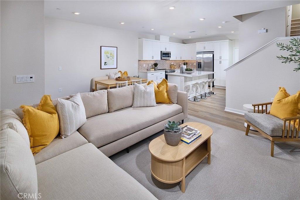 TWO STORY, NEW CONSTRUCTION in the heart of Eastvale. Townhome with 3 Beds/2.5 Baths, a Loft, 2 car side x side garage and a yard. Designer interior finishes include LVP/carpet/tile floors, Quartz counters, white cabinetry enhanced. Great location and additional guest parking opportunities also a bonus, as are included washer/dryer/fridge for a truly turnkey home. Take advantage of seller incentives and more availability ahead of our upcoming March Grand Opening and visit our Sales Gallery and Models, open daily. First-class community facilities (The Junction),highlighted by a modern clubhouse, wellness center, pools, playground, greenspace, and so much more. Visit and experience the Eastvale Square lifestyle, surrounded by so many dining/shopping/entertainment options both current and upcoming (*Whole Foods) as well as proximity to 15/91/71 commuter routes and employment hubs. Builder concessions available. MOVE IN READY!