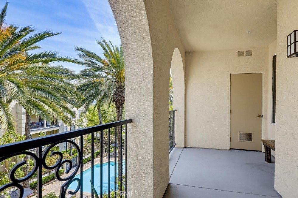 Top-floor opportunity in the highly sought-after Watermarke community in Irvine! Experience resort-style living ideally located near the airport, freeways, shopping, dining, and major business centers. This desirable 1-bedroom plus spacious den offers a versatile layout, perfect for a home office or flex space. The open floor plan provides seamless flow, with the kitchen opening to the dining and living areas, creating a bright and inviting living space. The bedroom features a walk-in closet, while the bathroom offers dual sinks for added comfort and functionality. You’ll also find in-unit laundry conveniently located in a closet. Enjoy a spacious private balcony with beautiful courtyard and pool views, perfect for relaxing or entertaining. Located within a gated community, this unit includes two parking spaces—a rare and valuable feature. HOA dues cover water and trash. Residents enjoy an array of resort-style amenities including a clubhouse, pools, spas, fitness centers, BBQ areas, tennis courts, and a basketball court.