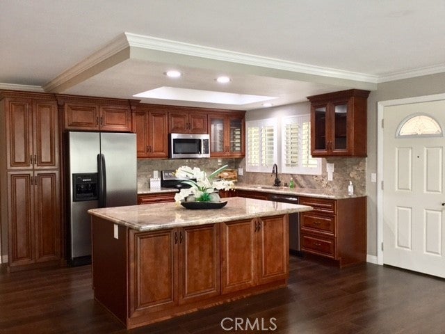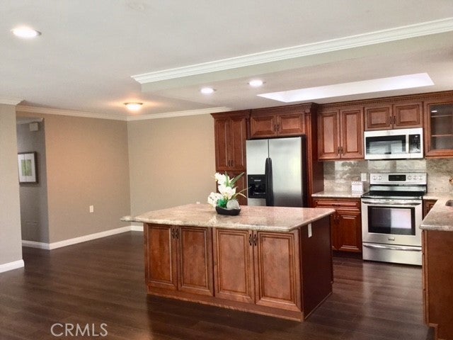 Welcome to this beautifully remodeled, single-level Casa Linda home offering comfort, convenience, and easy living. This thoughtfully designed 2-bedroom, 2-bath condo features no interior steps, making it ideal for a relaxed, low-maintenance lifestyle. The bright, open kitchen is both stylish and practical, with granite countertops, stainless steel appliances, custom cabinetry with easy-glide drawers, a spacious pantry, and a convenient lazy Susan for effortless organization. The kitchen flows seamlessly into the living area, creating a comfortable space for everyday living and entertaining. Throughout the home, you’ll find attractive laminate flooring, smooth ceilings, crown molding, and energy-efficient vinyl windows with custom blinds. The enclosed patio adds valuable extra living space—perfect for enjoying morning coffee, reading, or hosting guests in a light-filled, peaceful setting. The spacious primary bedroom easily accommodates a king-size bed and includes a large closet and a wall unit for personalized comfort. The en-suite bathroom features a walk-in shower and upgraded finishes for ease and accessibility. A second bedroom and full guest bath with a tub/shower combination provide flexibility for visitors or hobbies. Enjoy the convenience of ground-level entry with no stairs, nearby carport parking, and ample guest parking. Located within the welcoming community of Laguna Woods Village, residents have access to an exceptional array of amenities, including a 27-hole golf course, tennis and pickleball courts, swimming pools, fitness centers, an equestrian center, clubhouses, and hundreds of social clubs—offering endless opportunities to stay active, social, and engaged. Experience comfortable, carefree living in a vibrant 55+ community designed for your lifestyle.