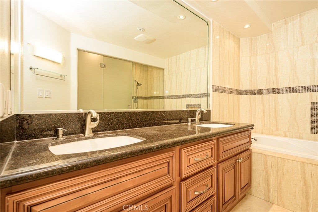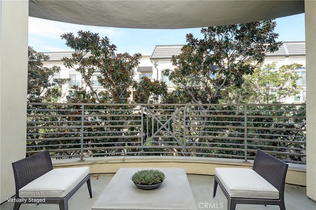 Resort style living at The Metropolitan. HIGHLY UPGRADED very large one bedroom plus den that can be used as an office or second bedroom. Beautiful newer carpeting in living room. Newer recessed lighting throughout and a marble cased gas fireplace . Office/den/second bedroom features recessed lighting with dimmer, beautiful stone flooring, and custom window shades. Kitchen features newer granite countertops, beautiful custom cabinetry throughout, reconfigured pantry and washer/dryer room, stainless steel electric oven and range, dishwasher, washer, dryer and refrigerator all included in sale. 9-foot ceilings throughout. Bathroom features dual vanity with stone countertops and custom cabinets with lots of storage, private toilet & walk in shower with custom glass doors adjacent to large stone cased soaking bathtub. Bedroom has spacious walk-in closet, recessed lighting, custom draperies and newer carpeting. Patio is very large with lush tropical landscape views. This unit has 2 side by side parking spaces #190 & 191 which is rare for this model. Brand new HVAC system. Close to South Coast Plaza & Fashion Island/ Newport Beach, all the best Orange County has to offer is at your doorstep. Within a few minutes of JW Airport & 3 major freeways this ideal location is for the most cosmopolitan of residents. Features pool, spa, gym & guarded gate. Water, hot water trash, and gas are all included in HOA dues. Great opportunity here! Hurry!