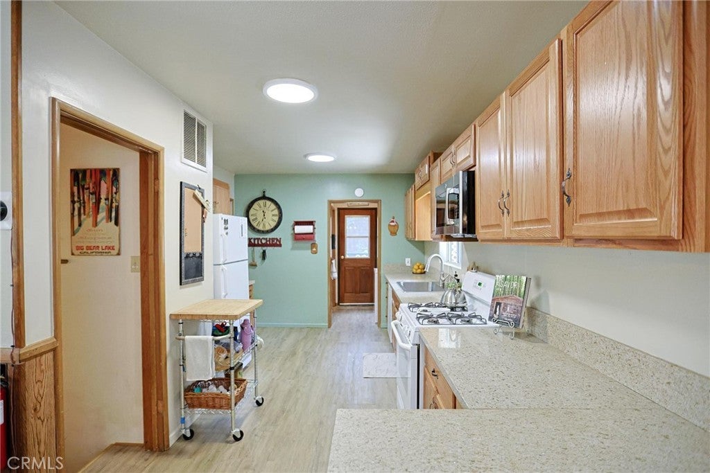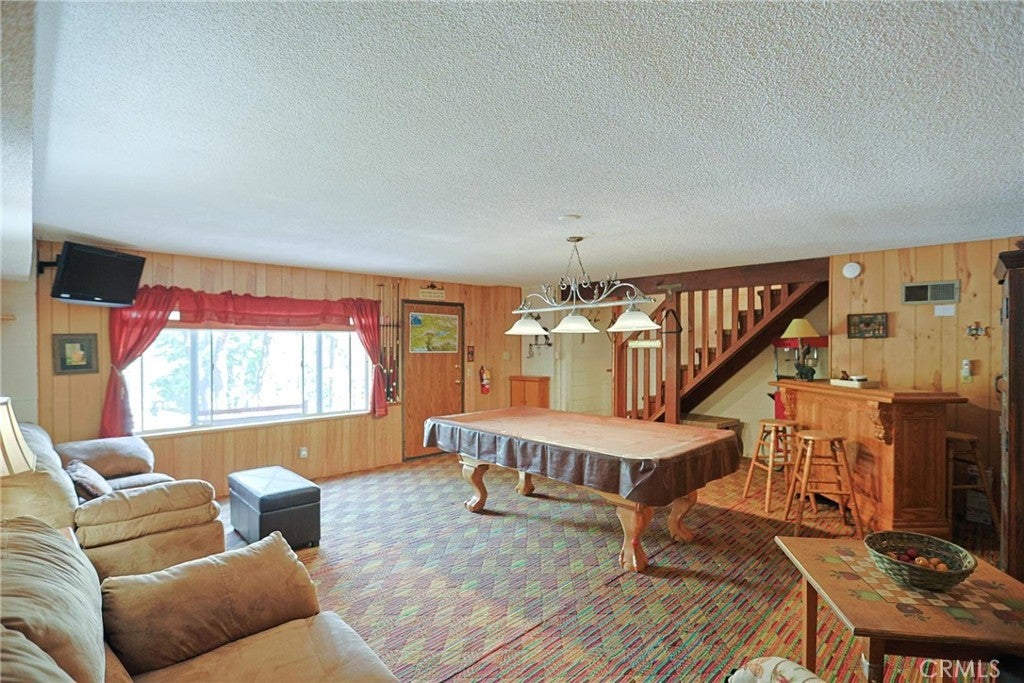 Welcome to your perfect mountain retreat in Big Bear! Nestled on a quiet cul-de-sac in the heart of Moonridge at 43535 Shasta Place, this inviting 3-bedroom, 2-bath home blends comfort, charm, and functionality—ideal as a full-time residence, weekend escape, or vacation rental. Step inside to a warm and welcoming living space, perfect for cozy nights by the fire or unwinding after a day of outdoor adventure. Large windows bring in natural light and frame the peaceful mountain setting, while the spacious layout offers plenty of room for family and guests. The kitchen flows seamlessly into the main living area, making it easy to gather, entertain, and create lasting memories. Downstairs, you’ll find a dedicated game room complete with a pool table—perfect for hosting friends or enjoying relaxed evenings in. Each bedroom provides comfort and privacy, making the home well-suited for both everyday living and guest accommodations. Step outside to your own private retreat and soak in the hot tub under the stars, surrounded by fresh alpine air and serene forest vibes. It’s the perfect way to end a day spent exploring everything Big Bear has to offer. Ideally located just minutes from Big Bear Lake, Snow Summit, Bear Mountain, Big Bear Alpine Zoo, The Village shopping and dining, and more. This home offers convenient access to hiking/biking trails, ski slopes, and year-round recreation while still feeling tucked away and peaceful. With its inviting cabin feel, entertainment-ready layout, and prime location, this mountain getaway is ready to be enjoyed in every season.
