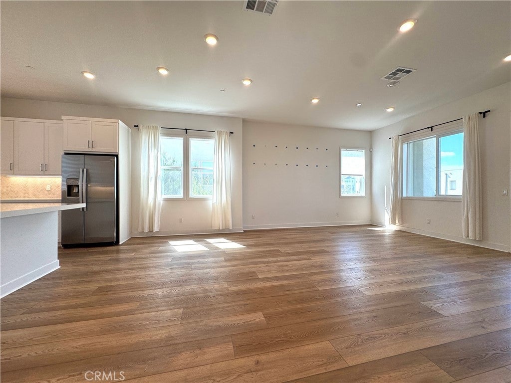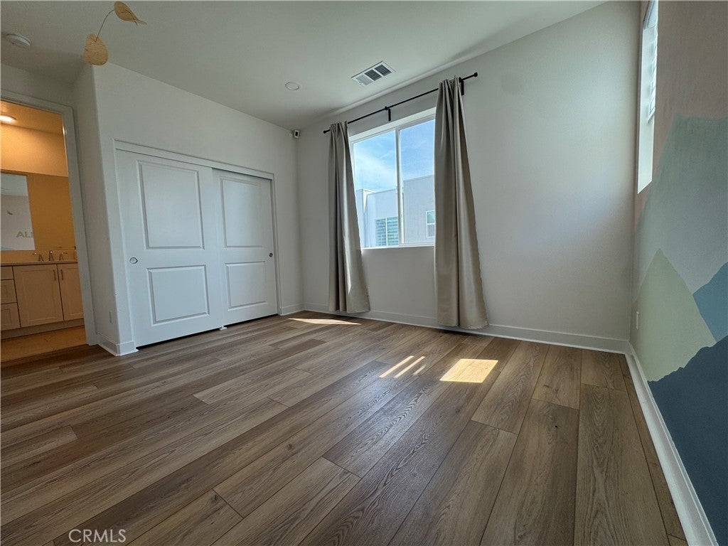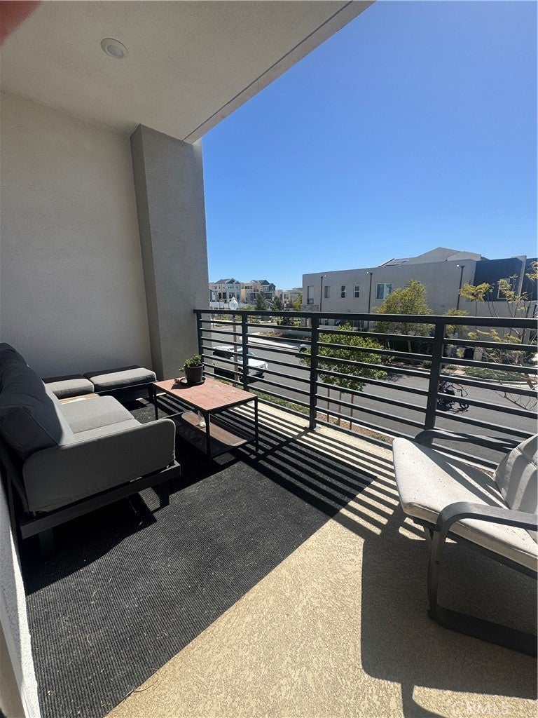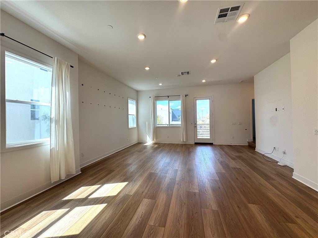 Welcome to this exceptional corner residence in the highly sought-after Solis Park neighborhood of Irvine’s Orange County Great Park. This beautifully designed home by Lennar offers approximately 1,900 sq. ft. of living space, featuring 2 bedrooms, 2.5 bathrooms, a versatile main-level flex space, and dual private balconies. As a desirable and private corner unit, the home enjoys an abundance of windows that fill the space with natural light, creating a bright, airy atmosphere while maintaining a quiet and comfortable living environment. The open-concept layout on second level provides a seamless flow between the kitchen, dining, and spacious great room — ideal for both everyday living and entertaining. At the heart of the home is the expansive chef’s kitchen, featuring quartz countertops, a full backsplash, abundant white shaker cabinetry, stainless steel appliances, and a large center island with seating, all opening to the light-filled living area. The third level offers primary and secondary bedrooms each with own bathroom, plus laundry. Meticulously maintained and owner-occupied, the home features wide luxury vinyl plank flooring throughout with no carpet, delivering a clean, modern aesthetic along with durability and easy maintenance. Additional highlights include LED recessed lighting, custom window treatments, and a full suite of stainless-steel appliances — all appliances are included. The property is also equipped with owned solar panels, providing energy efficiency and long-term savings. Enjoy resort-style amenities just steps away, including pools, parks, sports courts, and community spaces. Conveniently located within the award-winning Irvine Unified School District, including Portola High School, and just minutes from Woodbury Town Center, Irvine Spectrum, and major freeways.