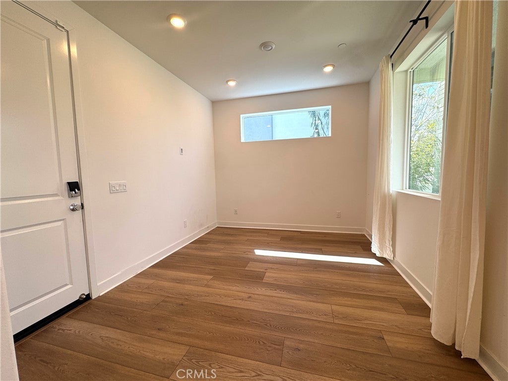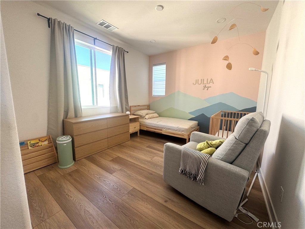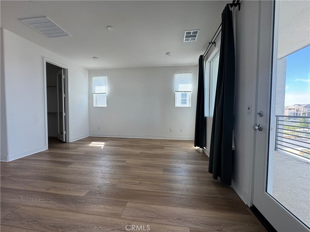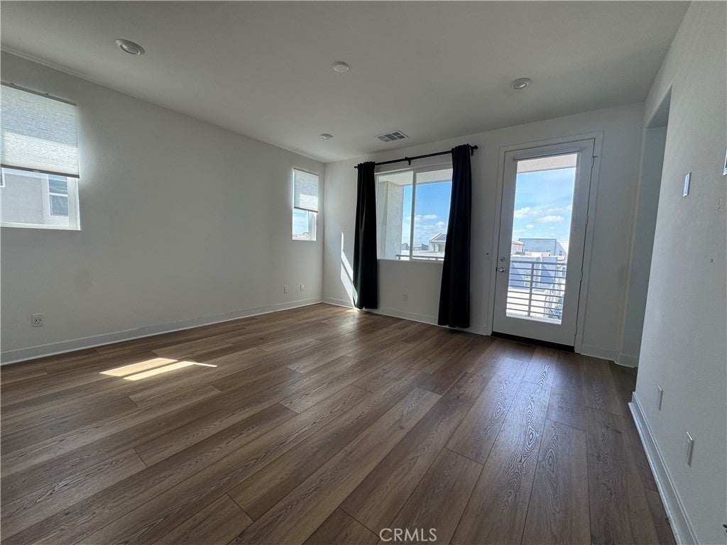 Welcome to this exceptional corner residence in the highly sought-after Solis Park neighborhood of Irvine’s Orange County Great Park. This beautifully designed home by Lennar offers approximately 1,900 sq. ft. of living space, featuring 2 bedrooms, 2.5 bathrooms, a versatile main-level flex space, and dual private balconies. As a desirable and private corner unit, the home enjoys an abundance of windows that fill the space with natural light, creating a bright, airy atmosphere while maintaining a quiet and comfortable living environment. The open-concept layout on second level provides a seamless flow between the kitchen, dining, and spacious great room — ideal for both everyday living and entertaining. At the heart of the home is the expansive chef’s kitchen, featuring quartz countertops, a full backsplash, abundant white shaker cabinetry, stainless steel appliances, and a large center island with seating, all opening to the light-filled living area. The third level offers primary and secondary bedrooms each with own bathroom, plus laundry. Meticulously maintained and owner-occupied, the home features wide luxury vinyl plank flooring throughout with no carpet, delivering a clean, modern aesthetic along with durability and easy maintenance. Additional highlights include LED recessed lighting, custom window treatments, and a full suite of stainless-steel appliances — all appliances are included. The property is also equipped with owned solar panels, providing energy efficiency and long-term savings. Enjoy resort-style amenities just steps away, including pools, parks, sports courts, and community spaces. Conveniently located within the award-winning Irvine Unified School District, including Portola High School, and just minutes from Woodbury Town Center, Irvine Spectrum, and major freeways.
