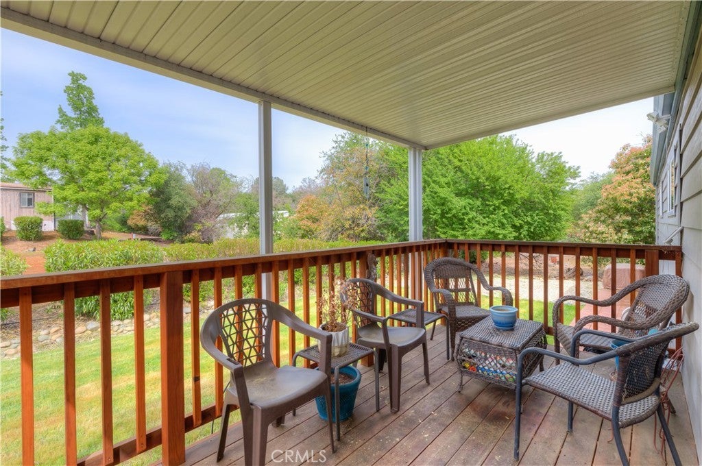 Now Active again. Most of furniture has been removed. Looking for privacy and a quiet location? 3 bedrooms here !!! Homes in this Sr. Park are on large, forested lots offering wide streets and underground utilitiies. Gates are locked at dusk. Shopping is just around the corner. Lake Oroville is nearby. Trips into town take 15 minutes where shops line the historic river town streets. Or, take the bus to town from from your home. And.... shopping is easy. No parking meters !! This particular mobile home is ready for move in with a long list of improvements including heating and air conditioning, dual pane windows, new kitchen counters, paint in and out, upgraded bathrooms and kitchen, landscaping and window coverings. A spacious deck was added for outdoor living. The carport is right next to the back door for ease of access. Water, sewer, garbage are included in the space rent. Living in the Oaks is an easy lifestyle.