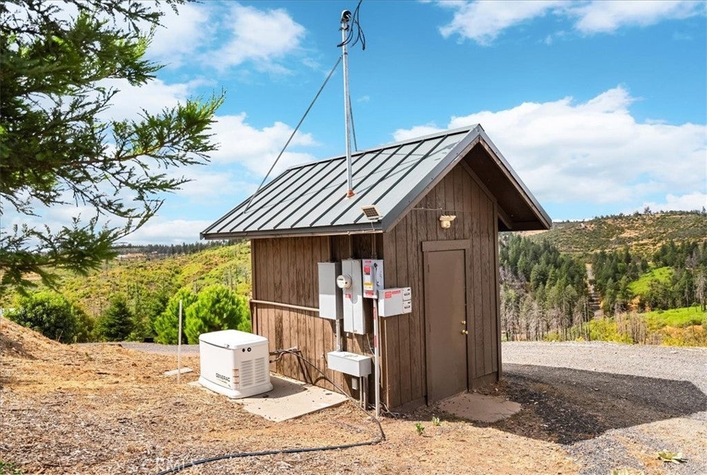 Looking for space, privacy, and rustic elegance? This custom 3-bedroom, 2-bathroom home offers 4.85 acres of peaceful living with sweeping canyon views, multiple outbuildings, and an oversized garage with an ADU above. Built with a red iron main structure roof system and designed for both comfort and durability, this home is truly one of a kind. Step inside and you’ll be welcomed by tons of natural light, huge vaulted ceilings, rustic wood finishes, and engineered hickory floors. The chef’s kitchen features a peninsula island with a breakfast counter, high-end Café stainless steel appliances, a gas cooktop, a French door wall oven, and a convection microwave. Soft-close cabinetry, a farmhouse view over the sink, and custom touches throughout make this kitchen a true highlight. The spacious primary suite on the main floor offers French doors to the patio, a walk-in closet, and an incredible view. The spa-like bath includes a custom oversized concrete soaking tub set beneath a bay window, a live-edge vanity, and a walk-in shower for a true luxury retreat. Upstairs, two generously sized bedrooms share access to the upper deck and a full guest bath. Built with fire safety in mind, the home includes fire-treated siding, steel roof, slab foundation, full fire suppression system, sealed envelope construction, owned solar, and a Generac whole-home generator with a 5,000-gallon water storage tank. Outdoors, enjoy raised garden beds, a fully automated greenhouse, mature fruit trees, multiple chicken coops, a garden shed, stamped concrete patios, and a gated entry with keypad. The 24’ x 36’ garage includes an ADU with a stair chair lift, perfect for an extended family or rental income. Additional shop space, multiple outbuildings, and endless privacy make this property ideal for both homesteading and retreat living. Located just 2 miles from Lake Oroville, 5 miles from the Feather River, and 1.5 miles to Hwy 70 with no road noise, this home blends convenience, security, and serenity. Hurry before this incredible home is gone!