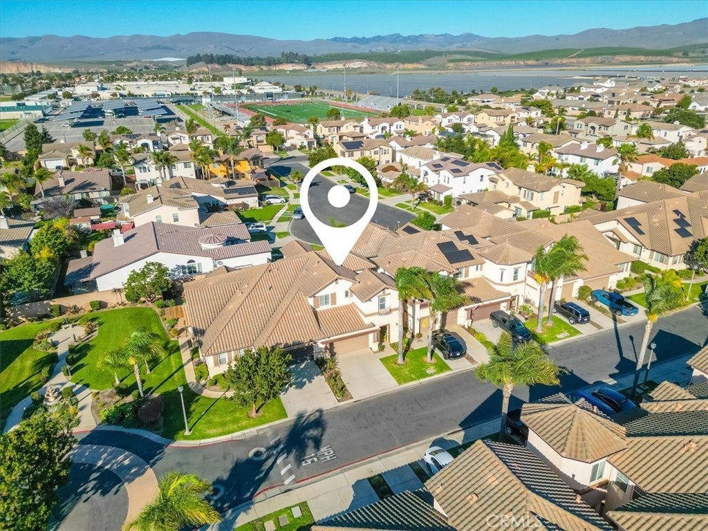 Experience the art of California living in La Ventana, one of Santa Maria’s most prestigious gated communities—where luxury, comfort, and lifestyle blend effortlessly. This exquisite two-story residence features the most desired floor plan with 3 spacious bedrooms, 2.5 baths, and 2,128 sq ft of elegant design on a beautifully landscaped 3,049 sq ft lot. Step inside and you’ll immediately feel the warmth and sophistication. Soaring cathedral ceilings, real hardwood floors, and walls of light create a grand yet inviting atmosphere. The primary suite is conveniently located on the main level, offering privacy and ease with a spa-inspired bathroom and walk-in closet. The chef’s kitchen is a showpiece—Spanish-style tile countertops and backsplash, stainless steel appliances, glass-top stove, true exhaust hood, and custom upgraded cabinetry that perfectly combines form and function. The open-concept dining and living areas are anchored by a tiled fireplace, ideal for cozy evenings or hosting friends. Upstairs, discover an expansive loft and a large office, offering endless possibilities—create a home theater, dual workspaces, art studio, or fitness room. Every inch of this home is filled with thoughtful touches, including custom paint, central vacuum system, security alarm, and garage door windows that bring in natural light. Step outside to your private backyard patio oasis with lush landscaping and an automatic sprinkler system, designed for tranquil mornings and relaxing evenings. Life in La Ventana feels like a resort. Enjoy the exclusive clubhouse, sparkling community pool, and beautifully manicured grounds—all just minutes from the Pacific Ocean, Guadalupe Dunes, and local wineries. Every detail of this home reflects luxury and intention. If you’ve been waiting for a home that truly has it all—this is the one.