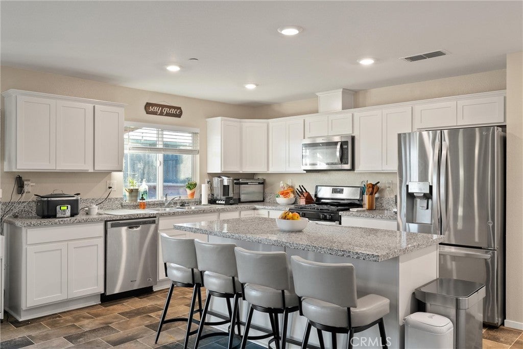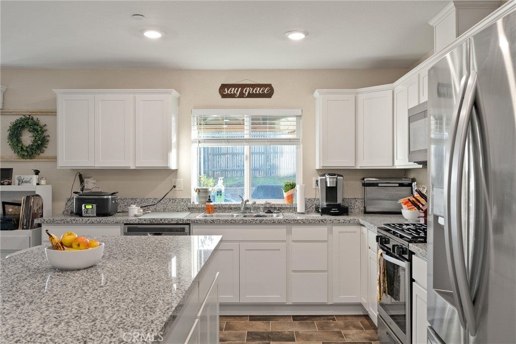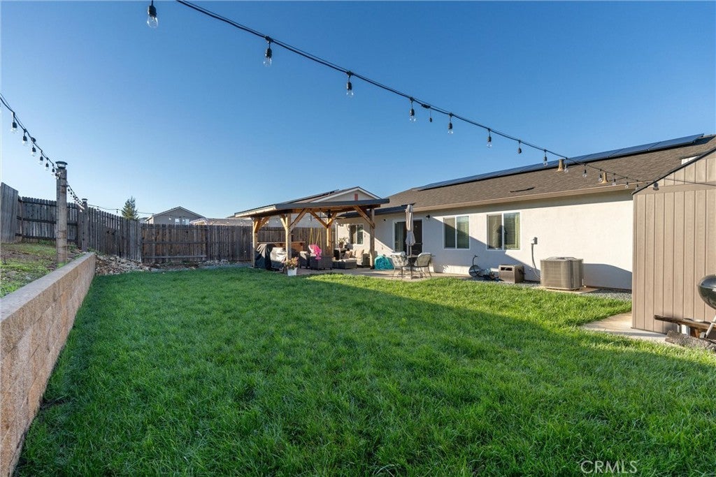 Beautiful turnkey home in one of Oroville’s most desirable neighborhoods! This spacious property offers 3 bedrooms, 2 bathrooms, 1,668 sq ft, plus an additional bonus room perfect for a home office, nursery, or gaming room. Step inside and you’ll immediately appreciate the open-concept layout, where the massive living room flows into the upgraded kitchen, which is ideal for entertaining or keeping an eye on the kids. The kitchen features custom cabinets, granite countertops, and a large island that brings everyone together. All bedrooms are largely sized, while the primary suite is exceptionally large, complete with a walk-in closet and a private bathroom. The master bath includes a walk-in shower and a dual-sink vanity, offering comfort and convenience. The backyard has been thoughtfully landscaped with a beautiful lawn, a large concrete patio, a covered awning, and string lighting, a perfect setting for evening BBQs and family gatherings. Additional features include central heating and air, solar for energy efficiency, and a spacious two car garage. This home is truly move-in ready and offers the space, upgrades, and location every buyer is looking for!