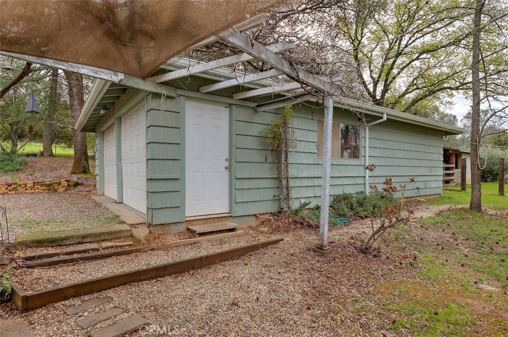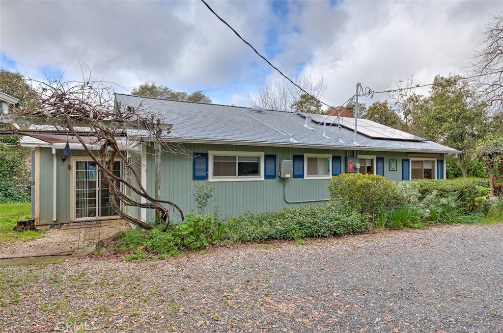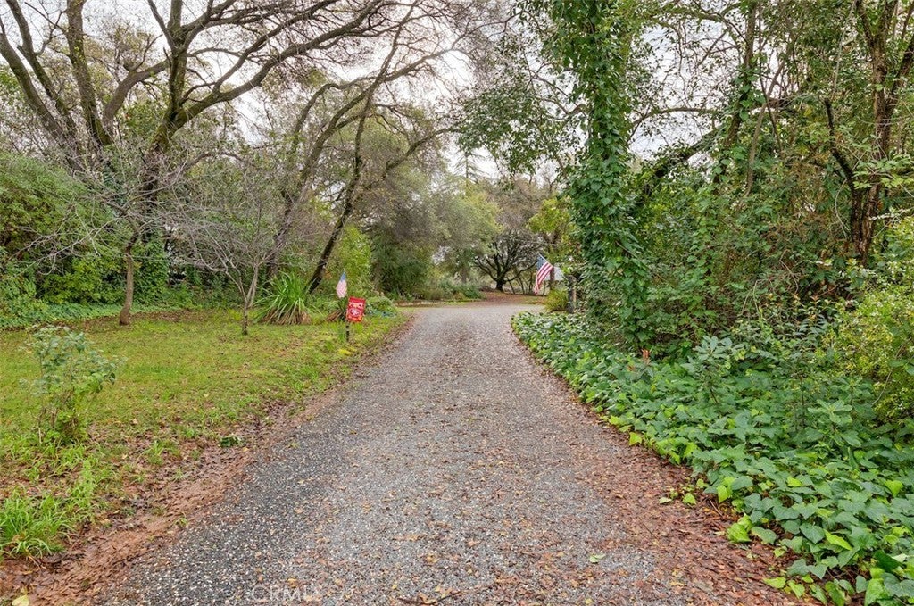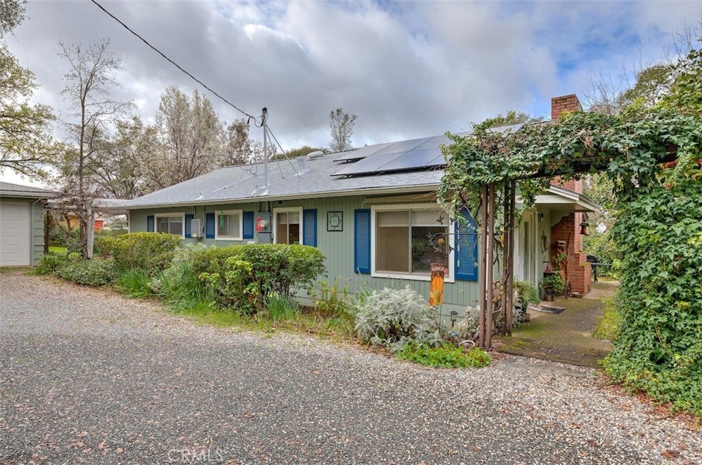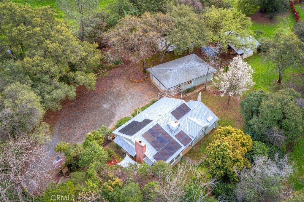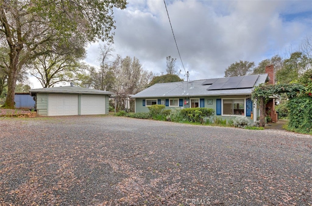 Charming country retreat offering privacy, gardens, and patios, in a lovely setting. The large garage/workshop contains the laundry and a separate room for projects. Plenty of space for RV parking. and a storage shed. The rear property once housed sheep, horses, goats and chickens in outbuildings. Lots of space for vegetable gardens. The area is known for its citrus farms and winery. The long driveway offers parking for several guests. When you discover this peaceul retreat, you will want to grab a book and curl up next to the fireplace. Arched doorways and crown moulding throughout create old world charm. New paint, ceiling fans, stove, flooring, screen doors and solar shades are recent additions. Lucious, established plants decorate the gardens. Ophir Elementary School is close by. Don't miss the custom tile work in the kitchen and bath. The primary suite offers a private desk area. Notice the new roof with a solar panel lease which can be assumed by the new owner. It's only a few miles to town. Located up a private driveway off the busy street makes it a great place for kids to play. This is truly a country jewel and one of a kind NEED A SEPARATE OFFICE SPACE OR ART STUDIO ????? Look no further than the 13' X 22" room in the back of the Large Garage !!! Plumbing and electrical are there. Door to the outside and window looking into the back yard. DRUM PRACTICE ??? YOGA???