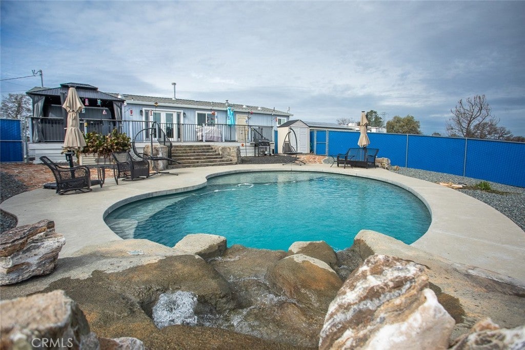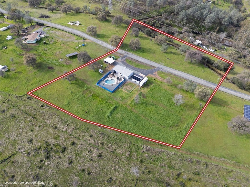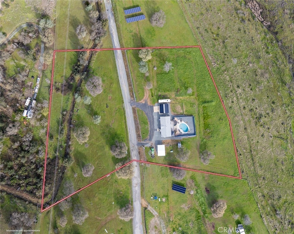 So many Extra's !!! This 3bdr 2ba home is situated on 5.01 acres and is Completely Fenced. Now lets talk about what was new in 2019.. Roof, Three skylights, OWNED SOLAR, Water Conditioner, Primary Bathroom Remodel, Wood Stove, Generac Generator, Rain gutters and French Drains, Water tank, Propane tank, Gorgeous Gunite POOL with Baha Deck and Waterfall feature !!!!, Carport, *EV CHARGING DOC !!!* , Murphy Bed. New in 2021...HVAC, Window Shutters, Electric Gate Opener. And finally New in 2025 is the Hot Tub and Gazebo. Check out the pictures and make an appointment to view today...and bring your ideas because the possibilities are endless with this one !....It really is a must see set up.