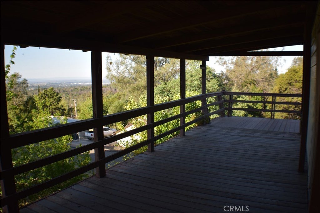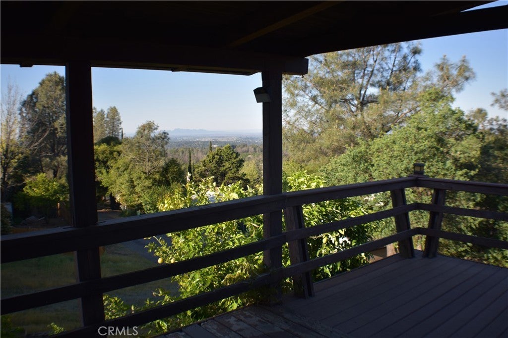 Located in the desirable Kelly Ridge community, this charming and move in ready 2-bedroom, 2-bathroom home offers beautiful valley views and a rare, back-alley access. The single-level interior features a spacious layout with a living room, built-in cabinetry, and a family room. The kitchen includes a side-by-side refrigerator, wall oven, dishwasher, and a seated breakfast counter for casual dining. Two sliding glass doors open to a large wrap-around deck, perfect for relaxing while enjoying sunsets and sweeping views of the valley and Sutter Buttes. The primary suite is generously sized and includes an en suite bathroom with double sinks, a soaking tub, and a separate shower. Additional highlights include a new roof installed in 2024, electric HVAC, swamp cooler, solar WiFi security cameras, and a Rain Bird sprinkler system. The two-car garage below the home offers a shop space, a sink, water access, and ample storage. The property features two driveways off Oak Hill, including a tall carport and a pull-through driveway to the back alley—ideal for boats, RVs, and extra vehicles. Enjoy mature landscaping with pomegranate, persimmon, apple, grapefruit, lemon, grape vines, roses, rosemary and bird of paradise. Conveniently located minutes from downtown Oroville and close to outdoor recreation at Lake Oroville.