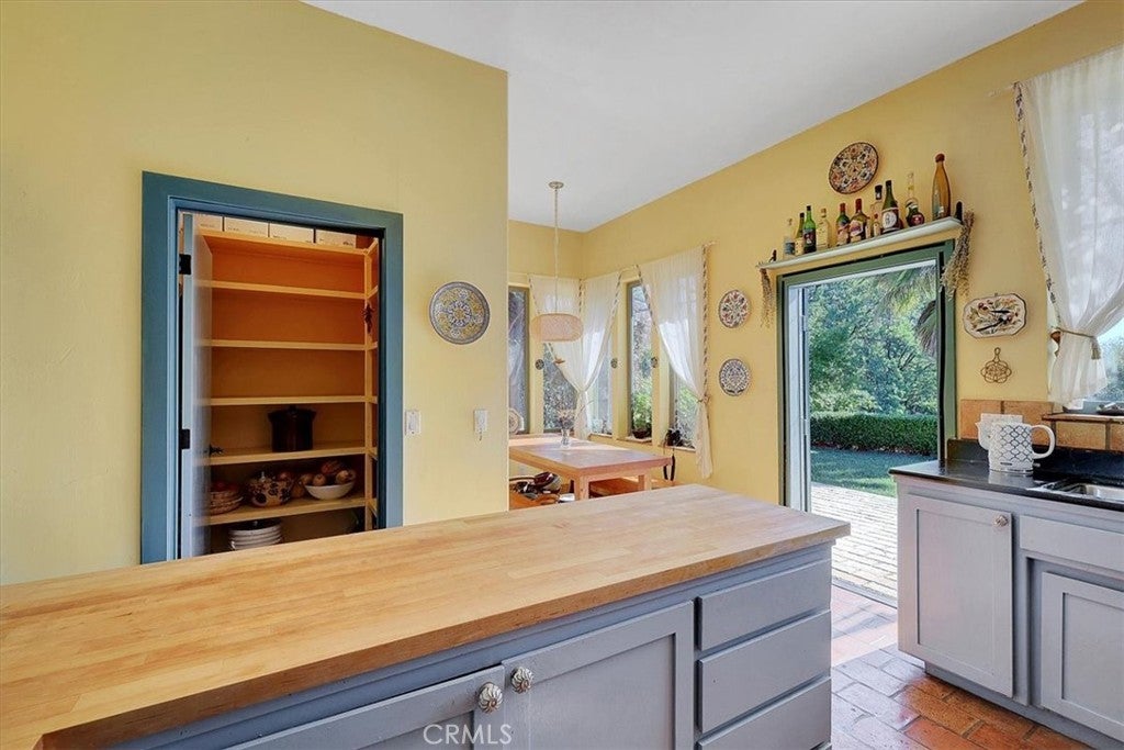 • Interior FeaturesBuilt-in Features, Breakfast Area, Eat-in Kitchen, High Ceilings, In-Law Floorplan, Country Kitchen, Pantry, Stone Counters, Recessed Lighting, Storage, Bedroom on Main Level, Multiple Primary Suites, Utility Room, Walk-In Pantry, Wine Cellar, Walk-In Closet(s), Workshop, Laminate Counters