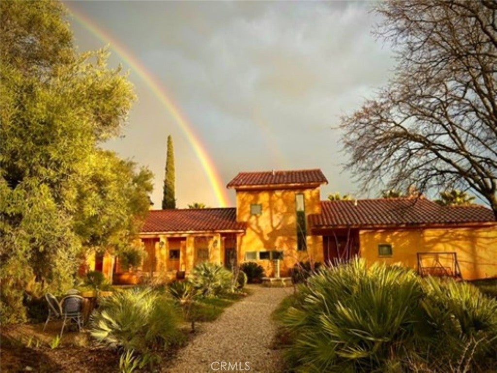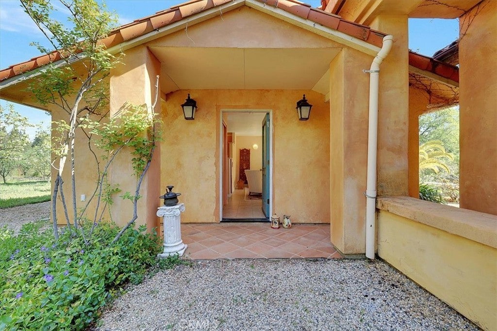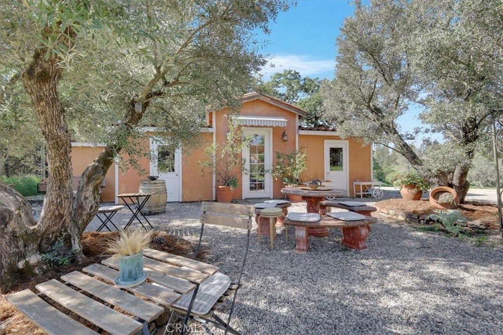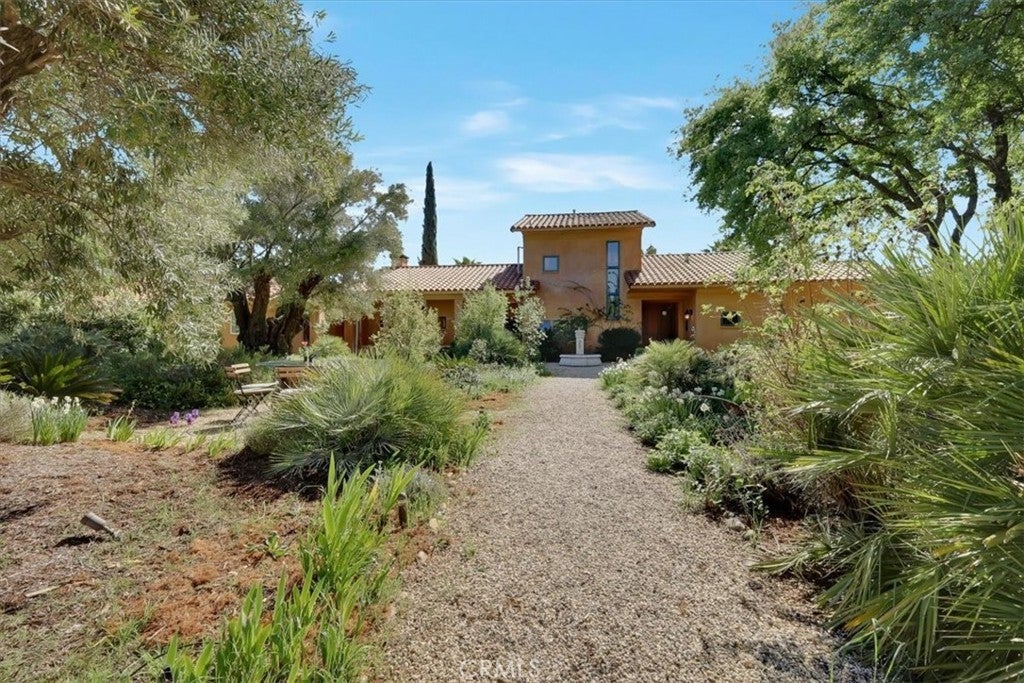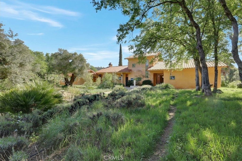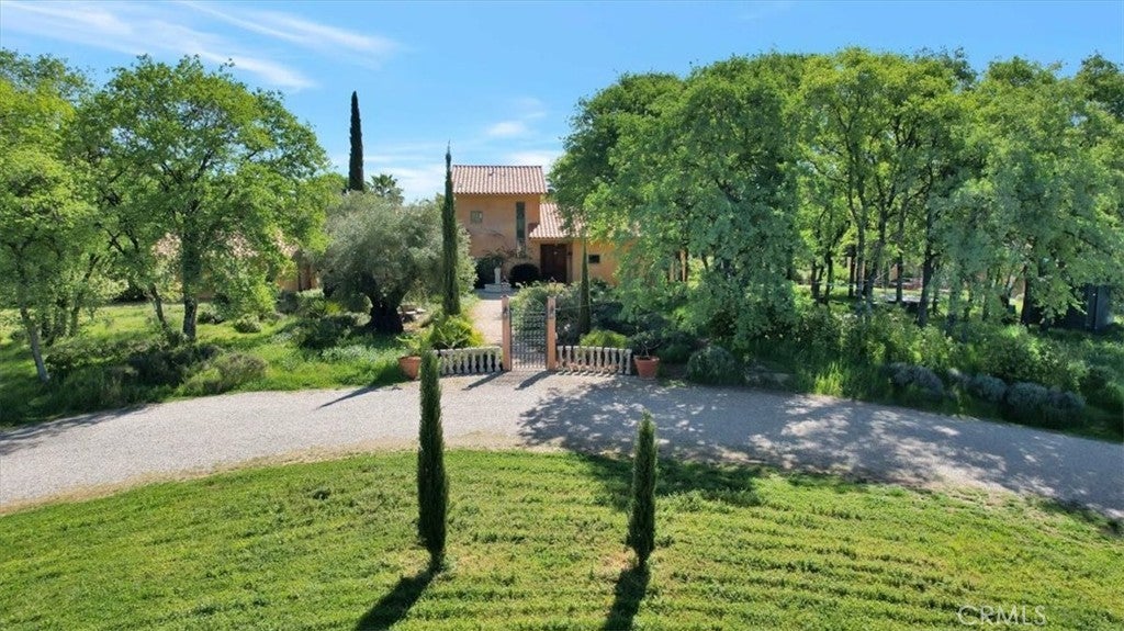 Traces of Tuscany! ~Villa Lavinia~ evokes images of classical elegance infused with Mediterranean flair. Reminiscent of lush Italian estates combining natural beauty and artistic refinement, the expansive 5.00 acres features a lavender field, a small producing vineyard and a vibrant olive grove with century old trees. The mature, irrigated landscape is highlighted by roses, geraniums, bergamot and cypress trees and much more. The fenced and gated rural homestead features a sophisticated and spacious stucco manor house with a clay tile roof as well as a separate guest cottage and an ample free-standing commercial grade kitchen with a wood fired oven. The professional agritourism facility is licensed for fundraising events and catering and allows for the continuation of an established and profitable bakery operation. Special touches in the main residence include antique, French made tile floors, hand carved limestone fireplaces, a carved oak entry door and murals by a renowned international painter. There is also an owned solar system with high capacity storage and a solar water pump and storage tank. Additional amenities are an underground wine cellar, travertine tile terrace with a custom metal pergola, a front French limestone drinking fountain and a rear cast iron garden fountain from Scotland circa 1890. The owners purchased the property in 2011 and embarked on a quest to create a serene sanctuary encompassing all essential elements for an organic, self-sustaining environment. The result is the successful blending of a gracious lifestyle with continental accents coupled with engaging home-based business opportunities. Horses and livestock are permitted. Located in a private but easily accessible setting on a paved street in a certified Firewise neighborhood, Villa Lavinia is literally down the road from shopping, services, schools and several lakes. Discover a distinctive architectural gem with exceptional design qualities that radiate with timeless appeal and character plus the energy and ambiance of a captivating country retreat.