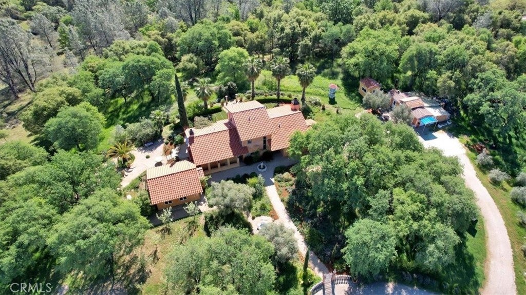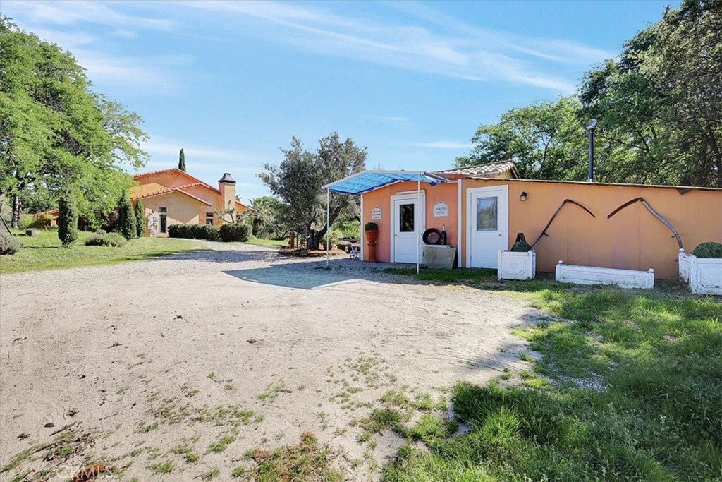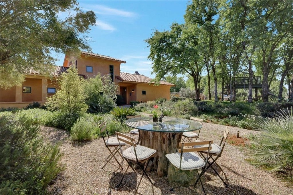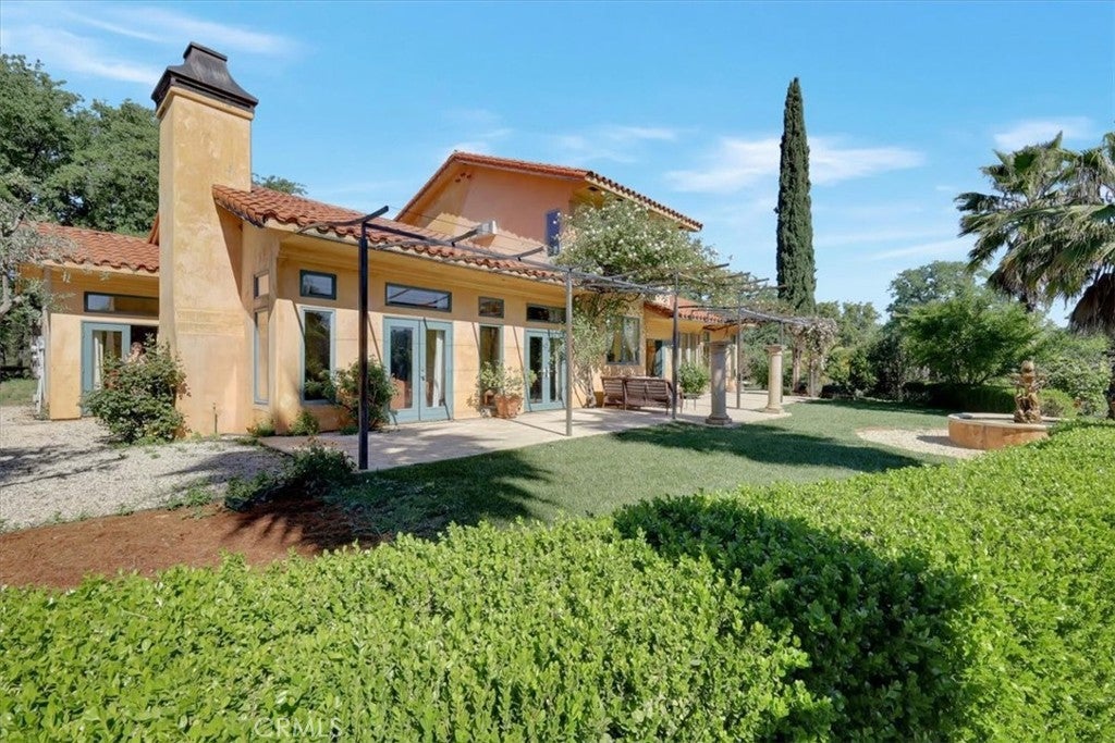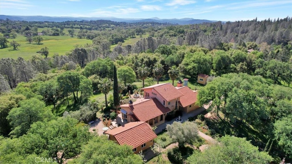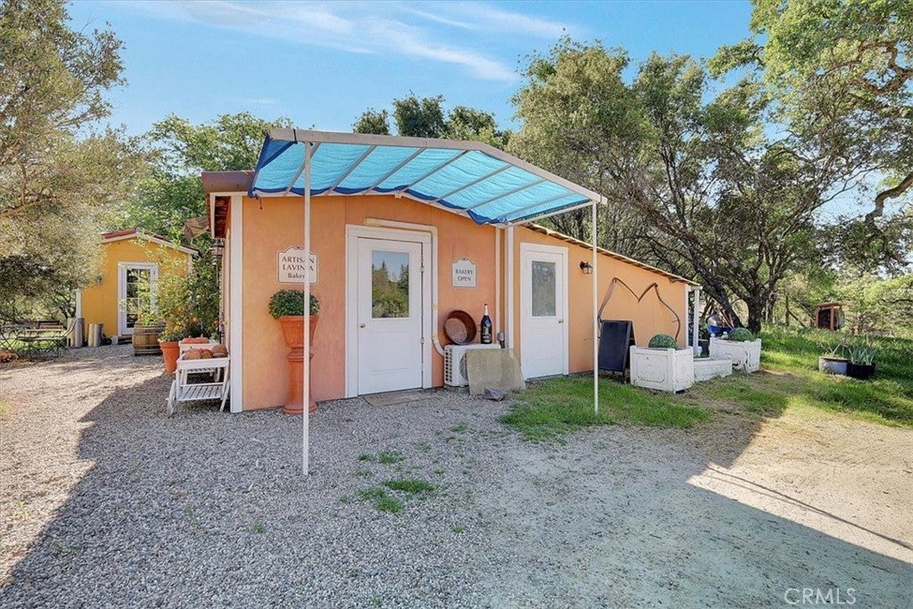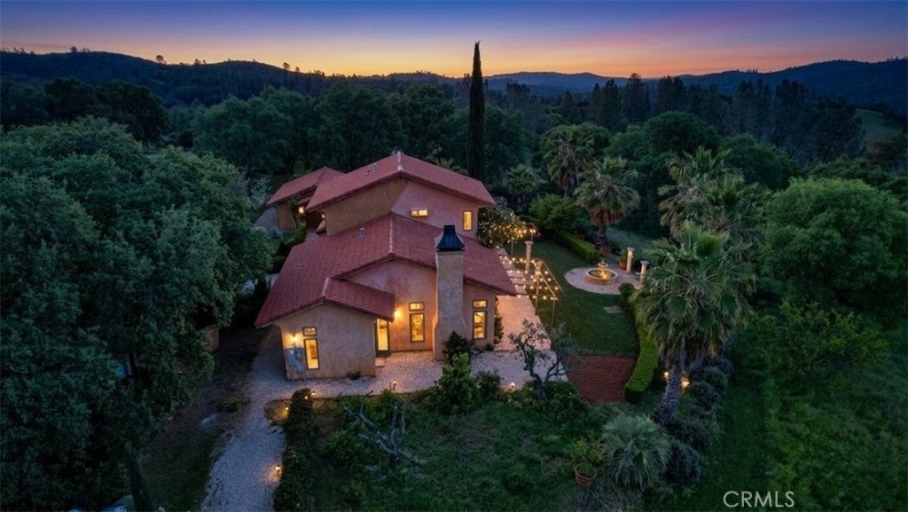 Traces of Tuscany! ~Villa Lavinia~ evokes images of classical elegance infused with Mediterranean flair. Reminiscent of lush Italian estates combining natural beauty and artistic refinement, the expansive 5.00 acres features a lavender field, a small producing vineyard and a vibrant olive grove with century old trees. The mature, irrigated landscape is highlighted by roses, geraniums, bergamot and cypress trees and much more. The fenced and gated rural homestead features a sophisticated and spacious stucco manor house with a clay tile roof as well as a separate guest cottage and an ample free-standing commercial grade kitchen with a wood fired oven. The professional agritourism facility is licensed for fundraising events and catering and allows for the continuation of an established and profitable bakery operation. Special touches in the main residence include antique, French made tile floors, hand carved limestone fireplaces, a carved oak entry door and murals by a renowned international painter. There is also an owned solar system with high capacity storage and a solar water pump and storage tank. Additional amenities are an underground wine cellar, travertine tile terrace with a custom metal pergola, a front French limestone drinking fountain and a rear cast iron garden fountain from Scotland circa 1890. The owners purchased the property in 2011 and embarked on a quest to create a serene sanctuary encompassing all essential elements for an organic, self-sustaining environment. The result is the successful blending of a gracious lifestyle with continental accents coupled with engaging home-based business opportunities. Horses and livestock are permitted. Located in a private but easily accessible setting on a paved street in a certified Firewise neighborhood, Villa Lavinia is literally down the road from shopping, services, schools and several lakes. Discover a distinctive architectural gem with exceptional design qualities that radiate with timeless appeal and character plus the energy and ambiance of a captivating country retreat.