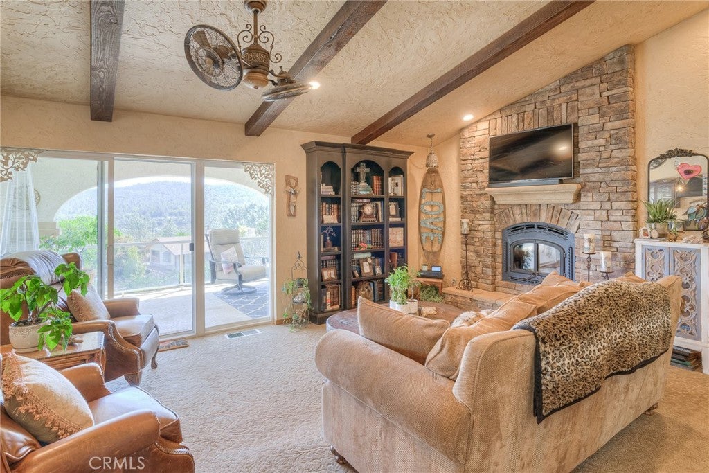 • Interior FeaturesBeamed Ceilings, Wet Bar, Built-in Features, Balcony, Ceiling Fan(s), Cathedral Ceiling(s), Separate/Formal Dining Room, Living Room Deck Attached, Open Floorplan, Pantry, Quartz Counters, Stone Counters, Recessed Lighting, Storage, Primary Suite, Walk-In Closet(s)