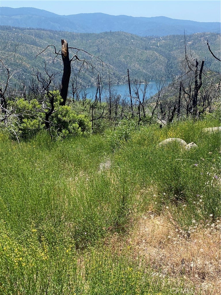 Gorgeous Lake view. It's been a couple of years since the fire. Spring is here. Tree, Flowers and green grass is growing. Southern slope exposer with great views of a full lake and surrounding mountains. There are 2 Slabs that the county has tested and approved. They are both structurally sound. You could rebuild on them. One is 1400 sqft was the house slab and one is 500 sqft shop slab. New PGE is right at the gate. Well and septic on property 8 x 20 Cargo container stays with property. Gate at driveway. Great get away. peaceful living.