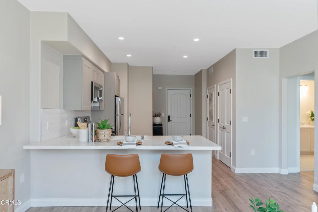 Discover Catalonia, where modern living meets timeless elegance, nestled in the heart of Pasadena's Playhouse Village. Designed for seekers of a refined and inspiring living experience. Catalonia offers lush courtyards, stunning views of parks and mountains, and architecturally significant residences in a culture-rich neighborhood. A state-of-the-art gym is centrally located on the main courtyard, equipped with Precor treadmills, an elliptical, a functional training system, free weights and a Peloton. The pool sits atop the fourth floor at Catalonia, with views of Pasadena's iconic City Hall to the West, the mountains to the North. Enjoy lounging by the pool or on the grass under the rooftop trees. The interiors of Catalonia are tastefully appointed with solid wood doors, quartz countertops, tiled bathrooms and luxury vinyl plank floors. Each unit flows outdoors to a balcony, terrace or side yard.