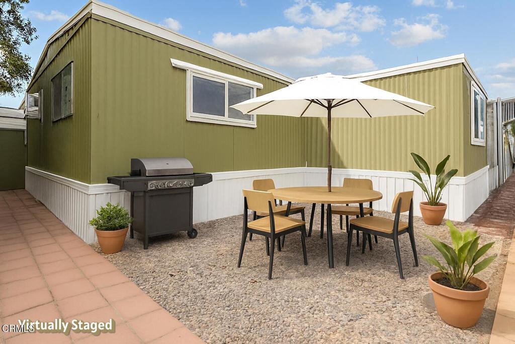 Welcome to 21001 Plummer St #114 - where modern elegance meets serene mountain sunsets in Chatsworth's desirable Sunburst Mobile Home Estates, a welcoming 55+ community. This beautifully reimagined double-wide home offers 1,344 sq ft of open-concept living, designed for comfort, style, and ease.The heart of the home is the chef's kitchen, showcasing quartz countertops, a striking Indonesian stone tile backsplash, all-new cabinetry with self-closing hardware, and a generous 9-foot quartz island with abundant storage--perfect for cooking, dining, and entertaining. Modern appliances and elegant pendant lighting complete the space.New French doors lead from the dining room to the front porch, the perfect spot to relax and watch the sun set over the mountains. With low-maintenance landscaping, a spacious outdoor patio for barbecues and entertaining, and a large storage shed, this home offers both beauty and functionality.Both bathrooms have been transformed into spa-like retreats with large porcelain tile showers, new vanities, tile flooring, toilets, and fixtures. The primary bedroom ensuite also includes a walk-in closet, adding convenience and comfort to your private retreat. Comfort is assured with three Wi-Fi-enabled mini-split systems, new copper plumbing and ABS drain line, and updated electrical breakers and outlets. Additional highlights include luxury vinyl plank flooring throughout, fresh paint inside and out, all-new drywall, and a new roof coating.This move-in-ready home blends modern upgrades, peaceful living, and gentle mountain sunset views--ready for you to make it your own.